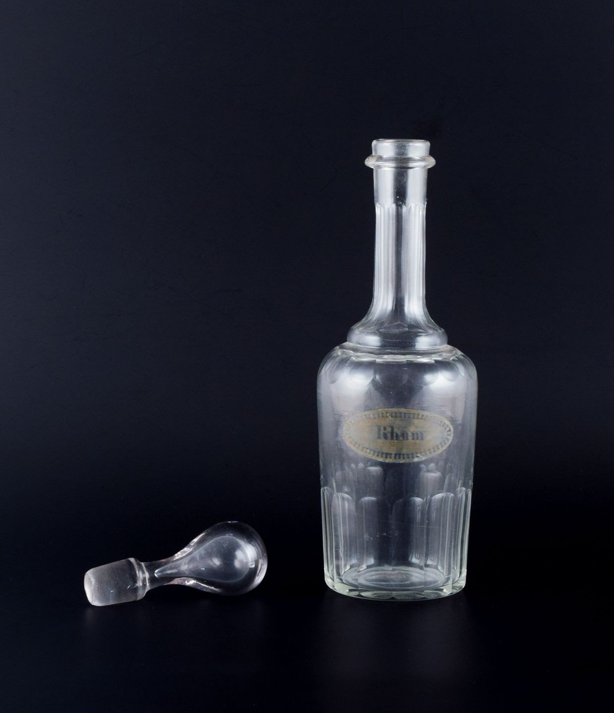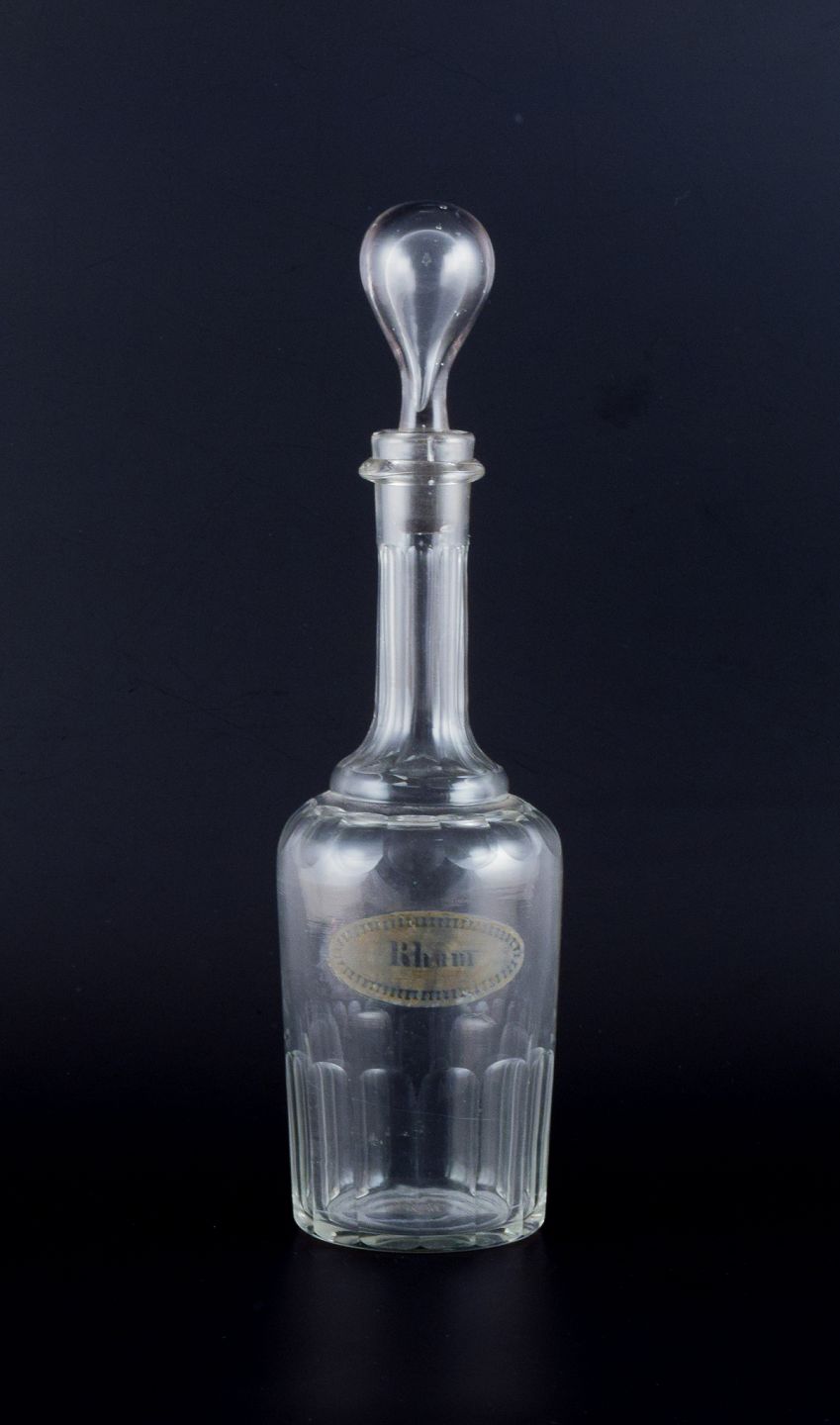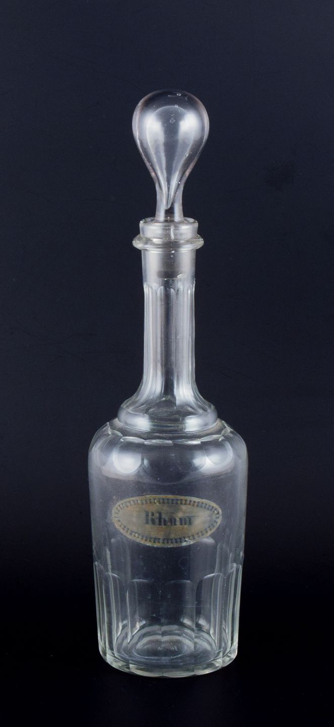Dansk glasværk, karaffel til rom i klart mundblæst facetslebet glas.
