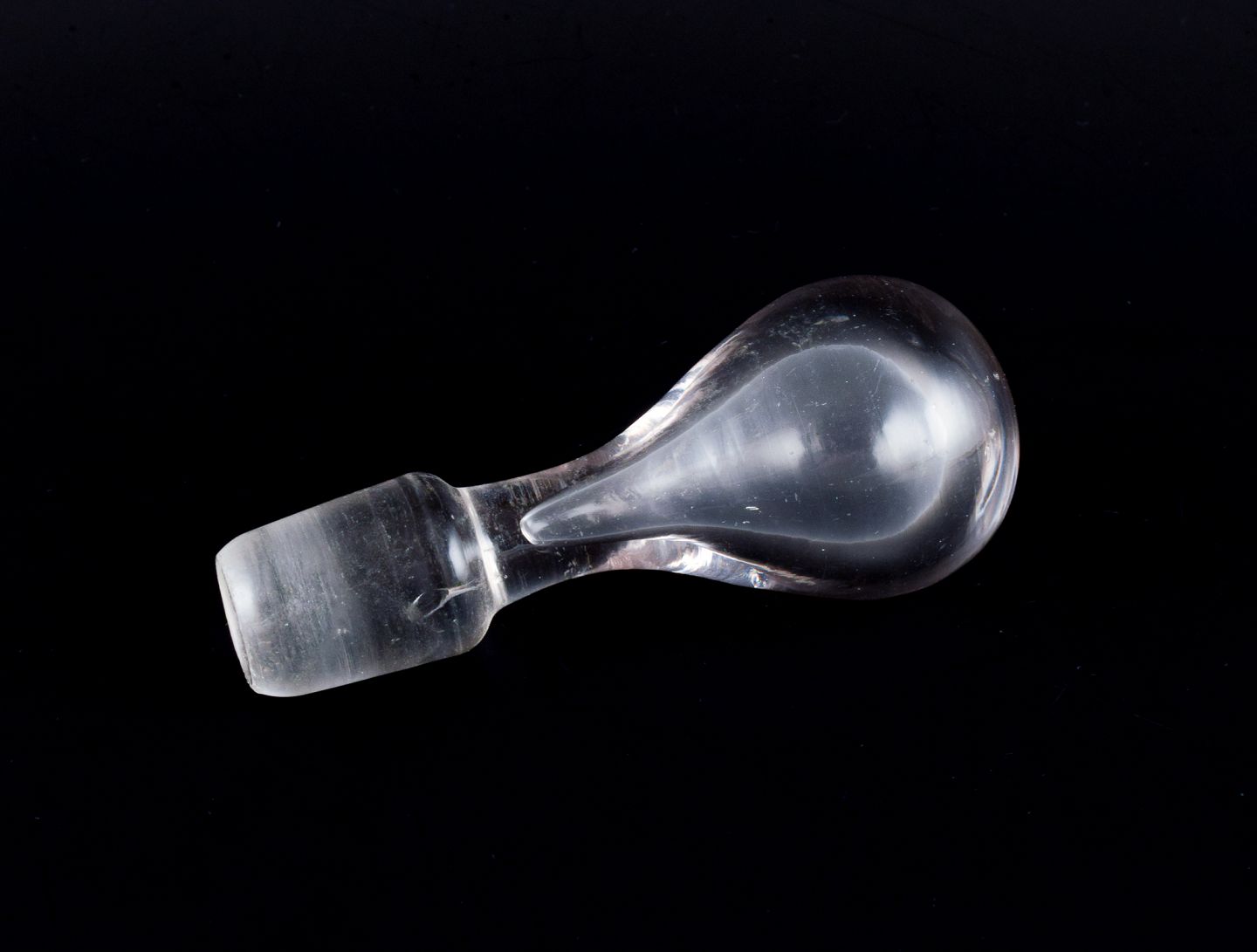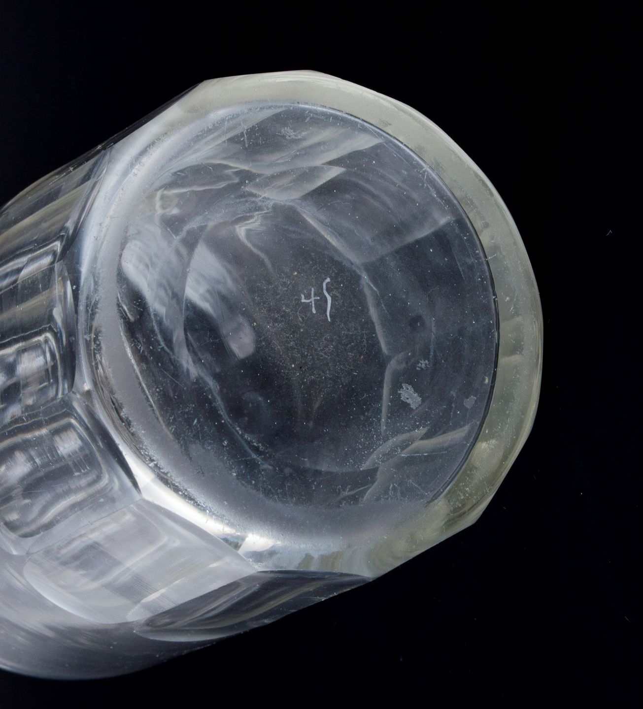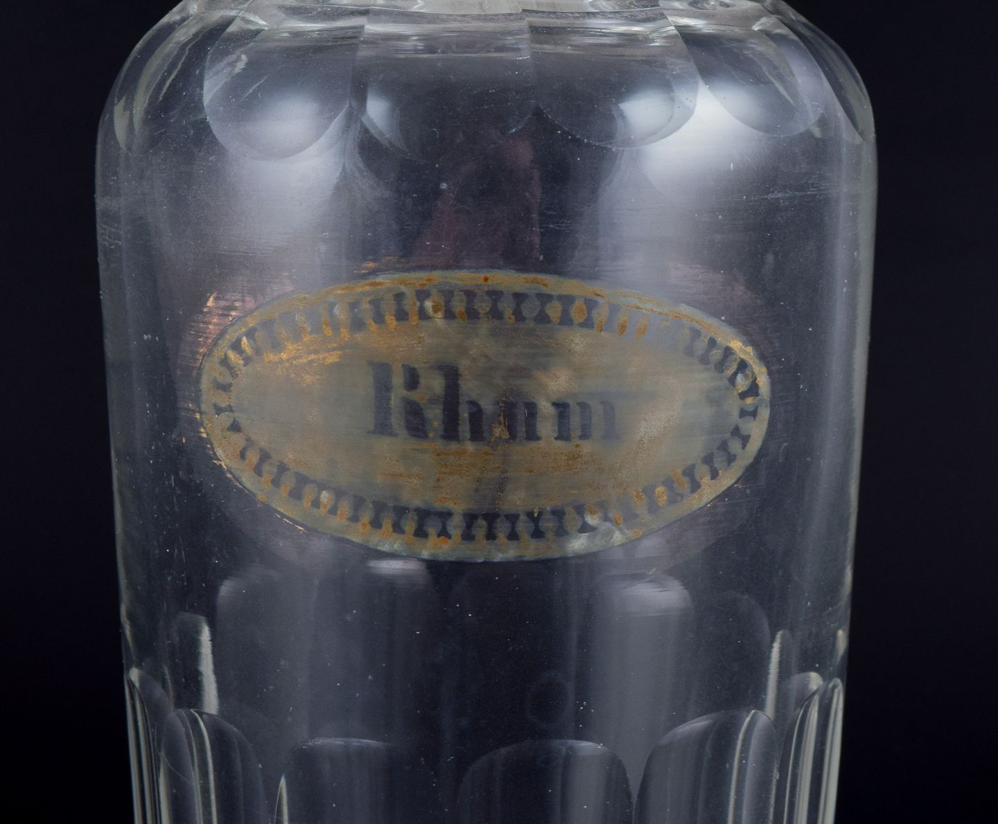 Dansk glasværk, karaffel til rom i klart mundblæst facetslebet glas.
