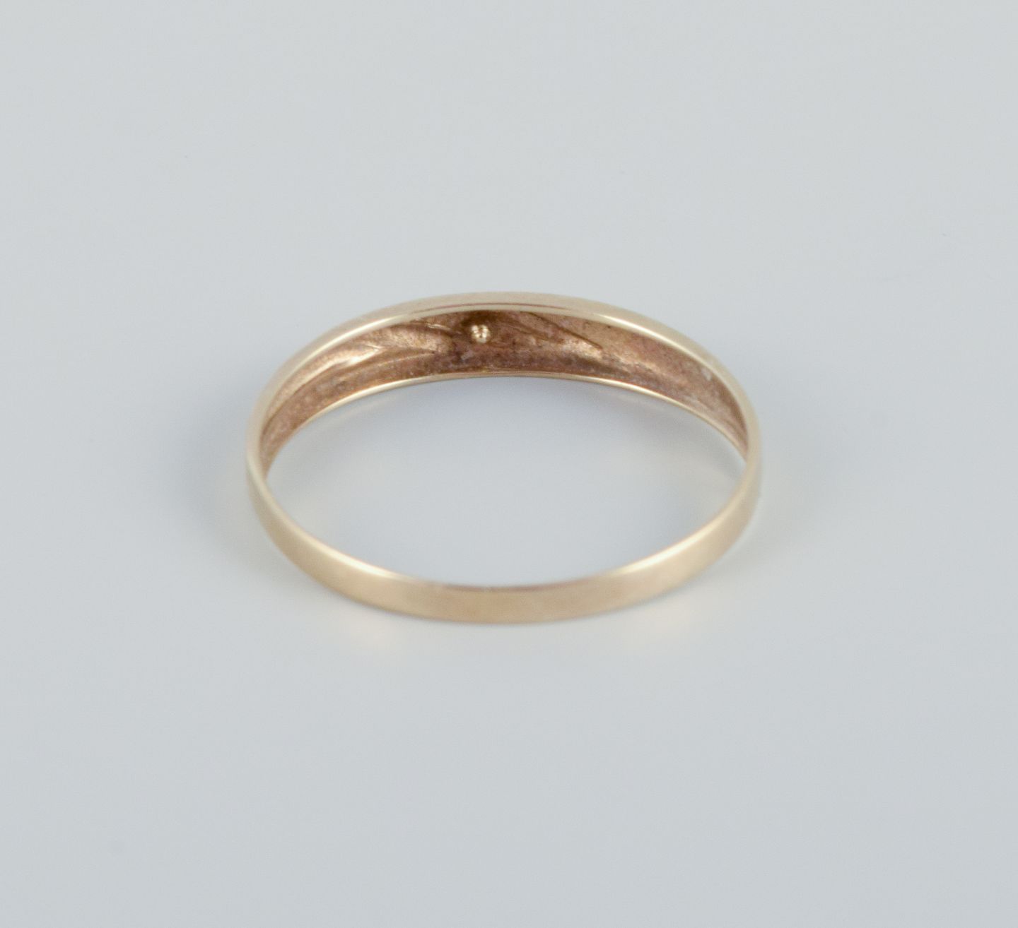 8 karat guldring prydet med små brillianter. Modernistisk design.