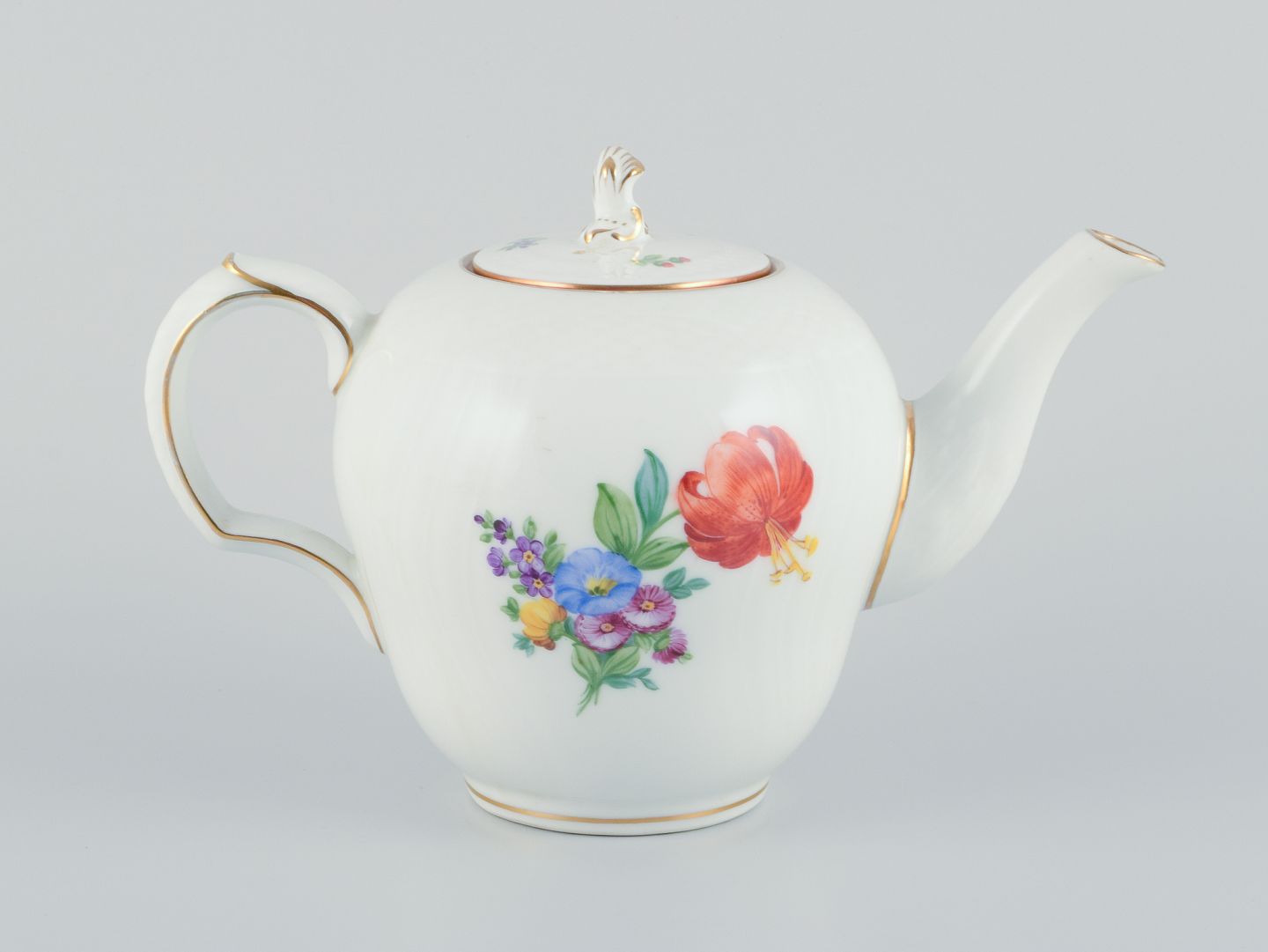Royal Copenhagen, Saksisk Blomst, tekande hånddekoreret med polykrome blomster og guld.