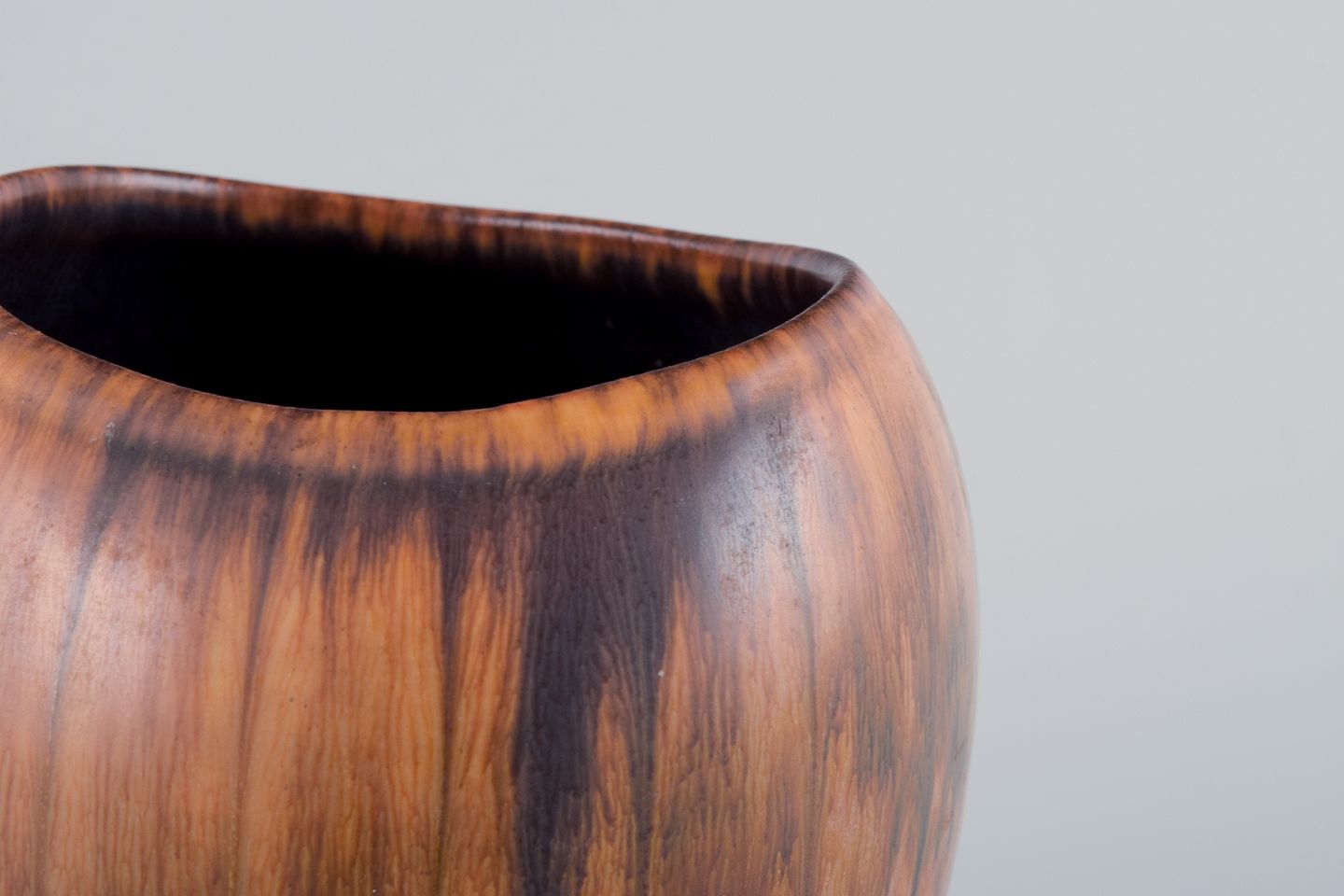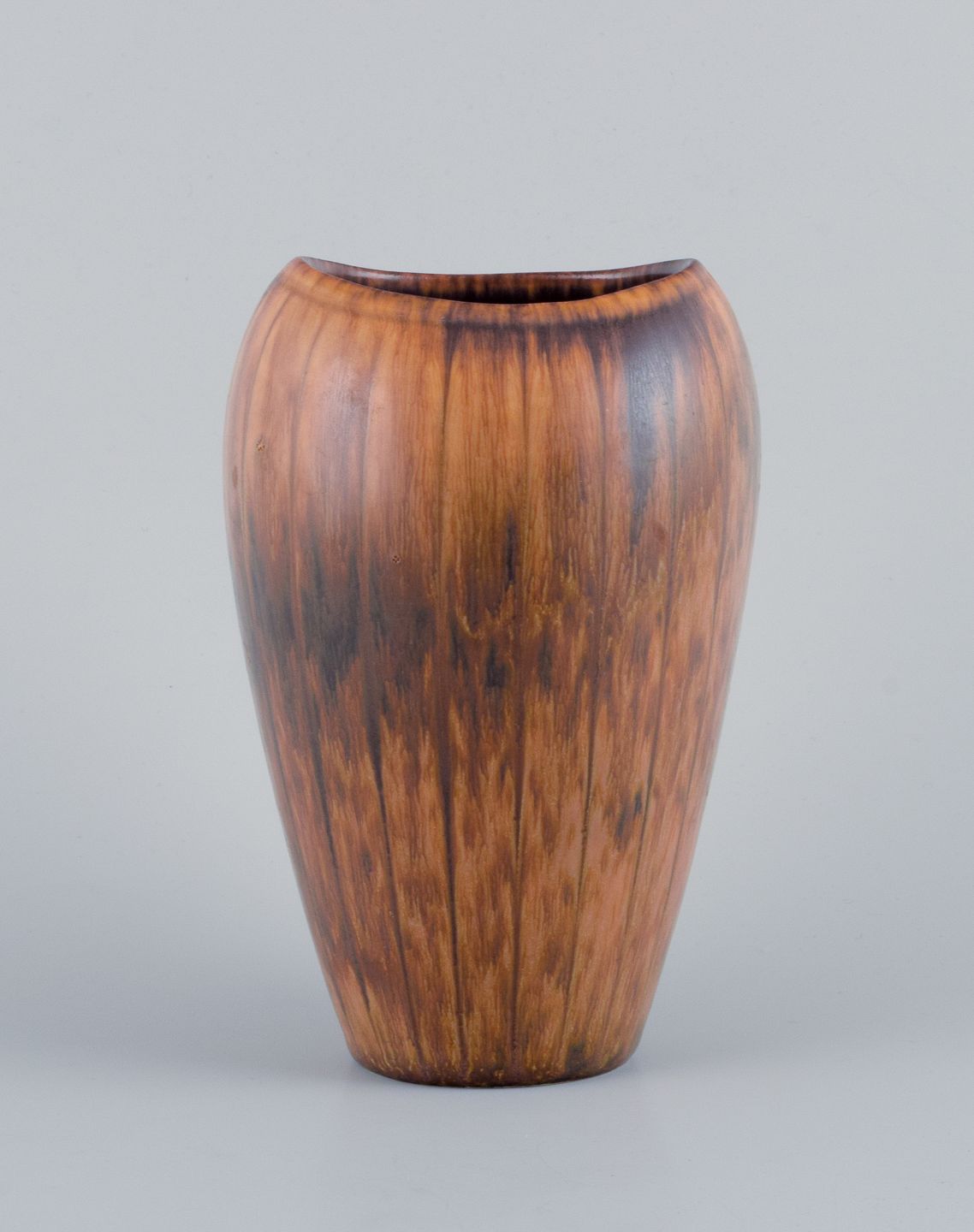Gunnar Nylund for Rörstrand, keramikvase i brunlig glasur. Ca. 1960'erne. Stemplet. I flot stand. Anden sortering. Mål: H 15,0 cm. x D 10,0 cm.