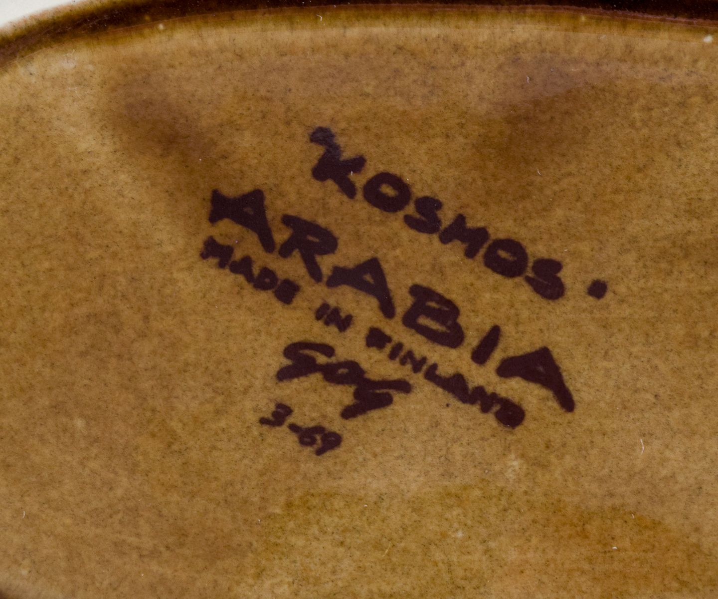 Gunvor Olin-Grönqvist for Arabia. Sjælden ”Cosmos” smørkrukke i grønbrune toner. Stentøj i retrostil. 1970’erne. Stemplet. Perfekt stand. Første sortering. Mål: L 17,5 cm. x D 12,5 cm. x H 6,5 cm.