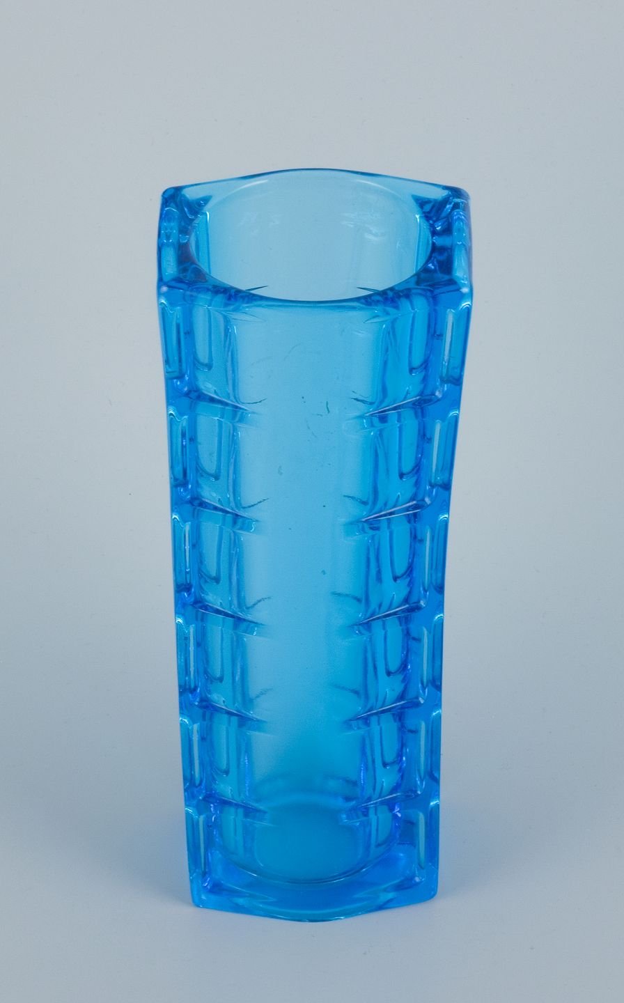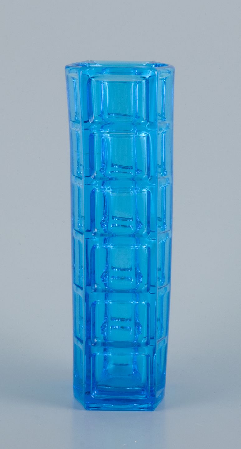 Gullaskruf, Sverige, kunstglasvase i blåt glas. Modernistisk design. Sent 1900-tallet. Perfekt stand. Mål: H 20,0 cm. x D 6,8 cm.