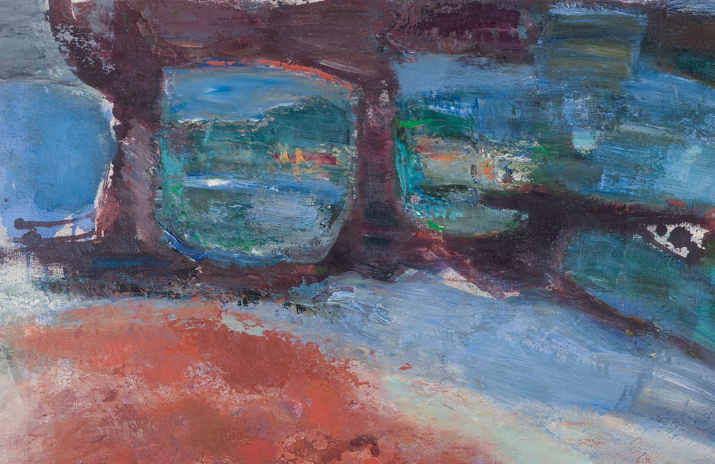 Inga Larsson (1927-2005), svensk kunstner, olie på lærred. Modernistisk parkmotiv.