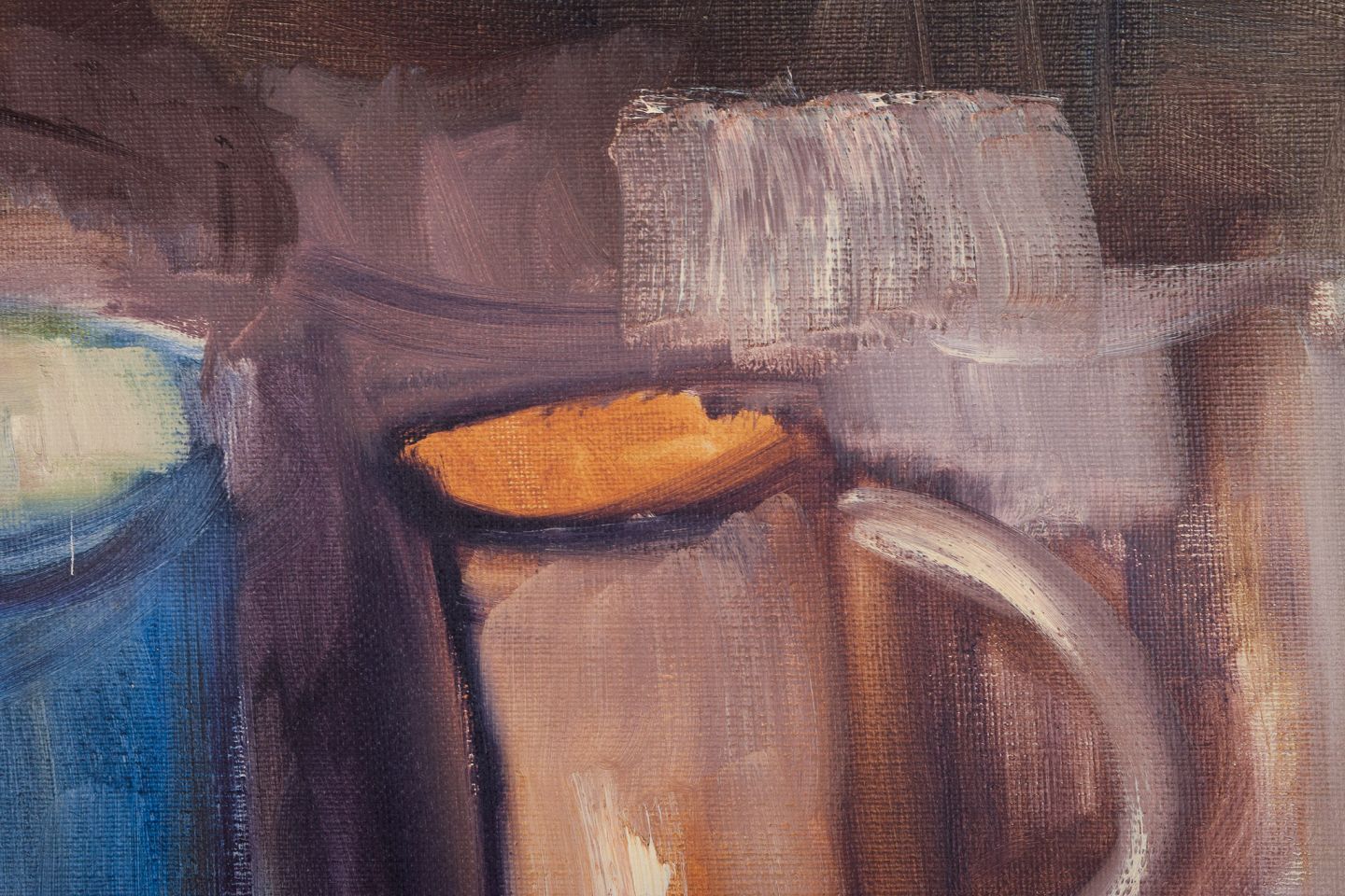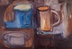 Peder Rosenstand, dansk maler. Olie på lærred. Modernistisk stilleben med kande.