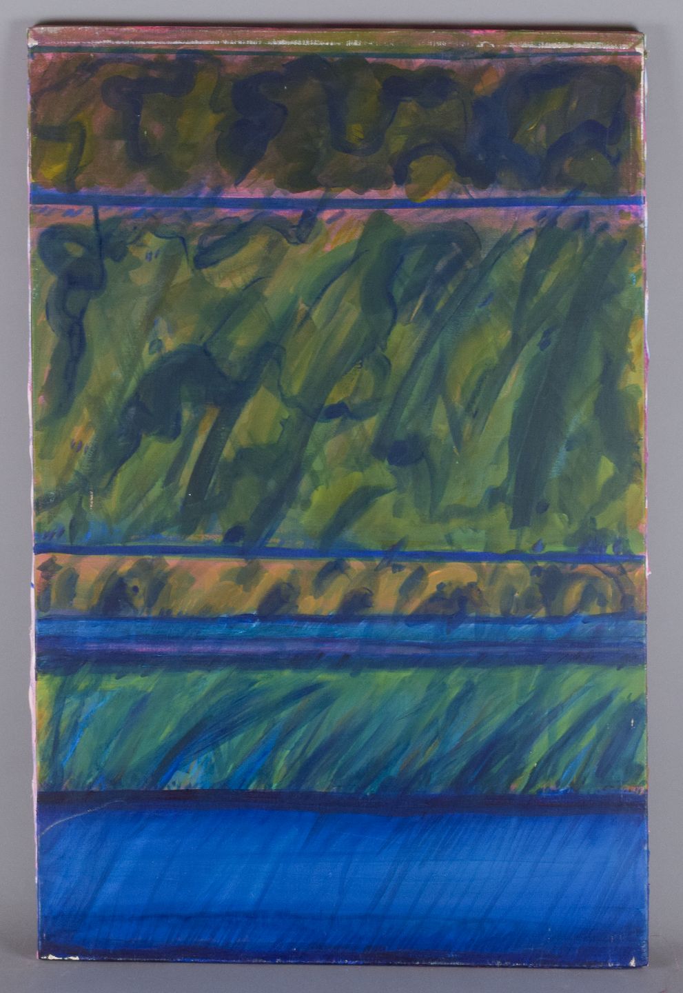Olie på lærred. Abstrakt komposition. Koloristisk palette.