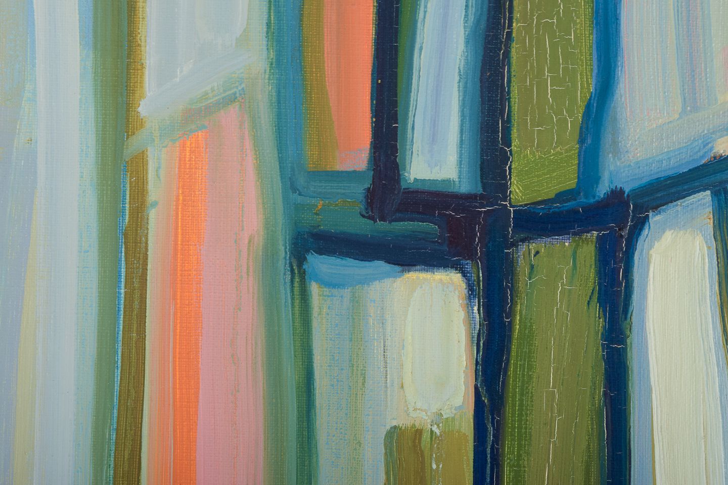Olie på lærred. Abstrakt komposition. Koloristisk palette.