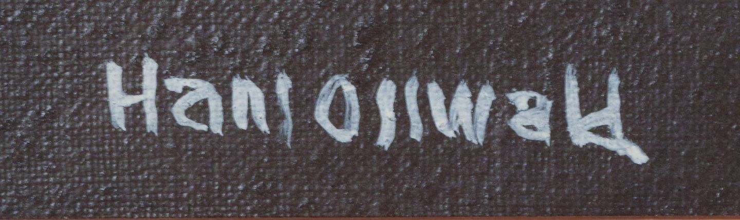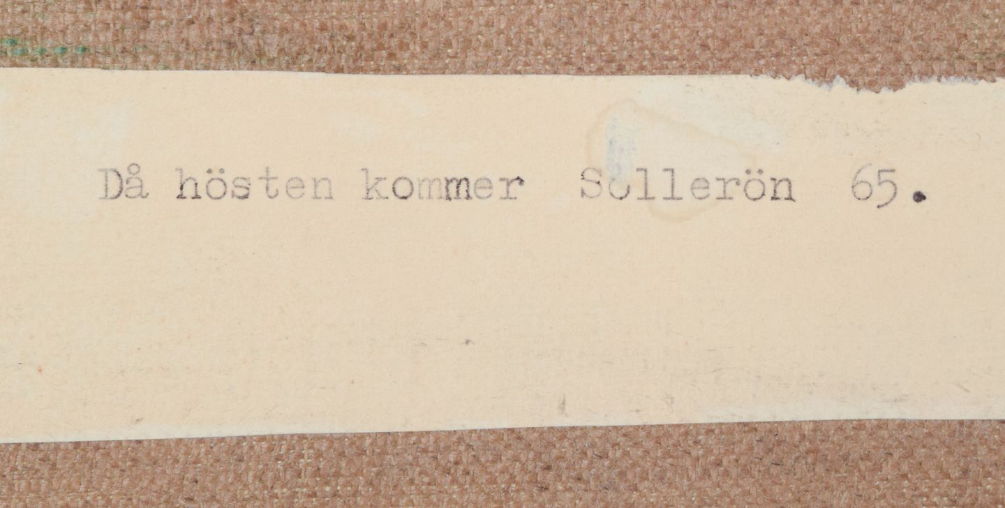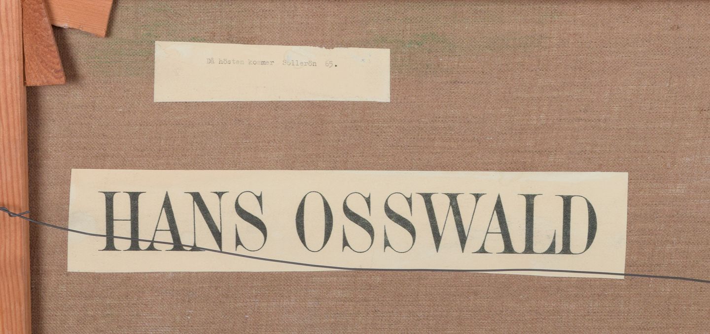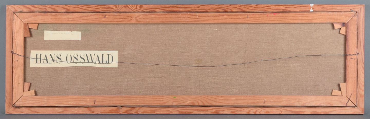 Hans Osswald, svensk kunstner, olie på lærred, abstrakt komposition. Titel ”Då Hösten kommer sollerön” 1965. Perfekt stand. Signeret. Mål: B 109,5 cm. x H 29,5 cm. Total: B 115,5 cm. x H 35,5 cm.