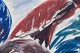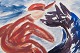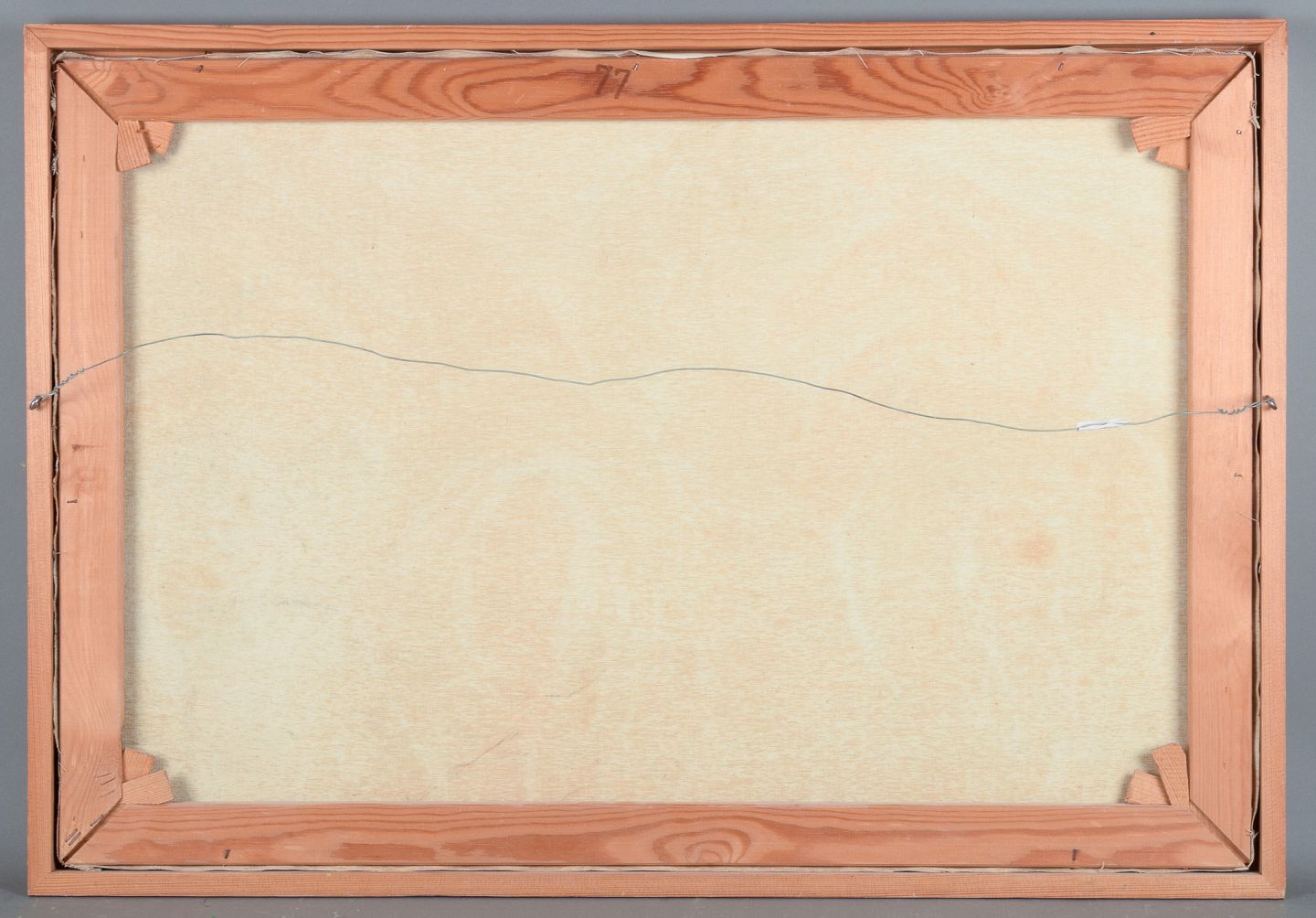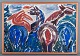 Gunney Wahlquist (1931-2019), svensk kunstner, olie på lærred. Modernistisk maleri, jockey og heste. Signeret. Perfekt stand. Mål: B 77,0 cm. x H 52,0 cm. Totalmål: B 82,0 cm. x H 57,0 cm.
