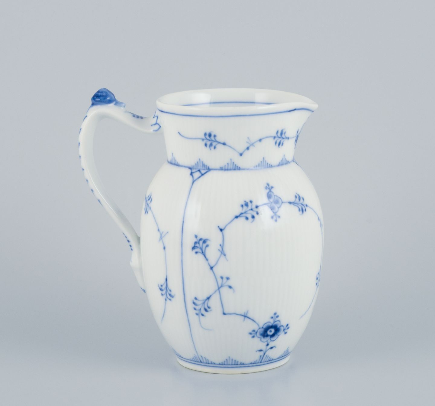 Royal Copenhagen, Musselmalet Riflet, kande. Hank med lille snegl. Ca. 1930. Model 1/450 Stemplet. Første sortering. Perfekt stand. Mål: H 15,0 cm. x B 13,5 cm. med hank