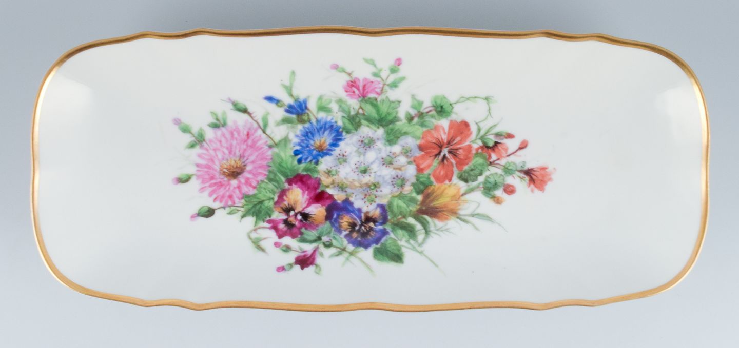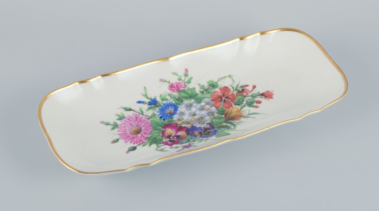Bing & Grondahl, large rectangular platter hand-painted with polychrome flower motifs and gold trim.