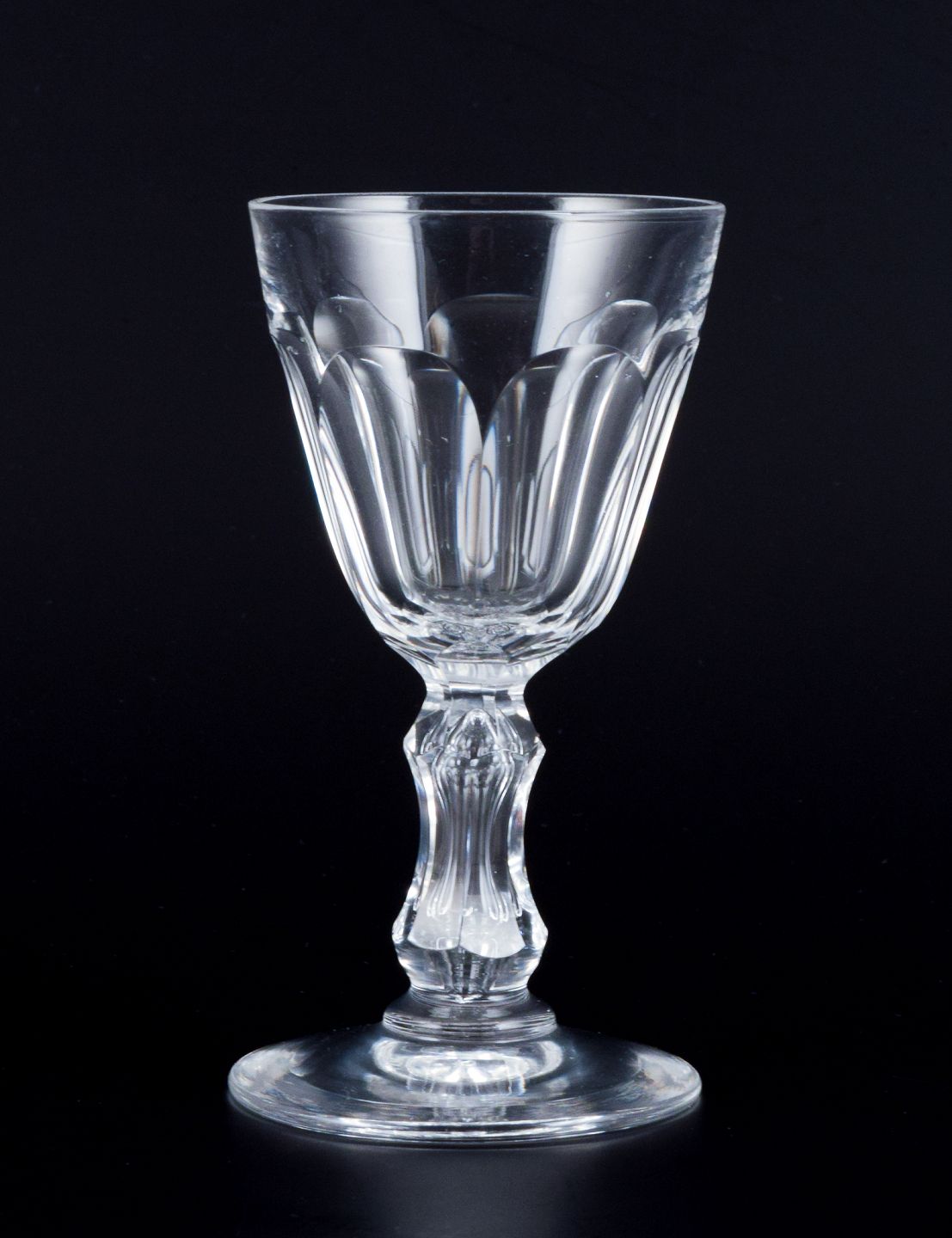 Holmegaard, Danmark, et sæt på seks facetslebet ”Paul” snapseglas. 1930/40’erne. Perfekt stand. Mål: H 9,4 cm. x D 4,9 cm.