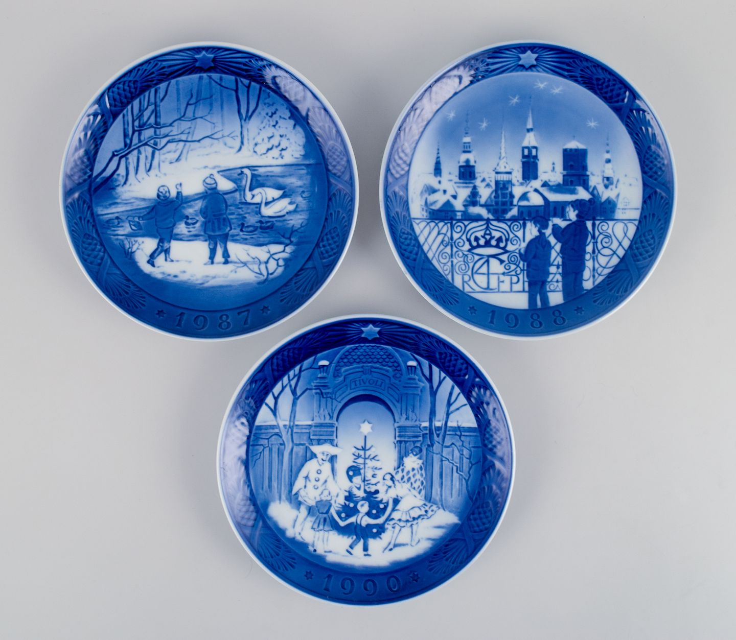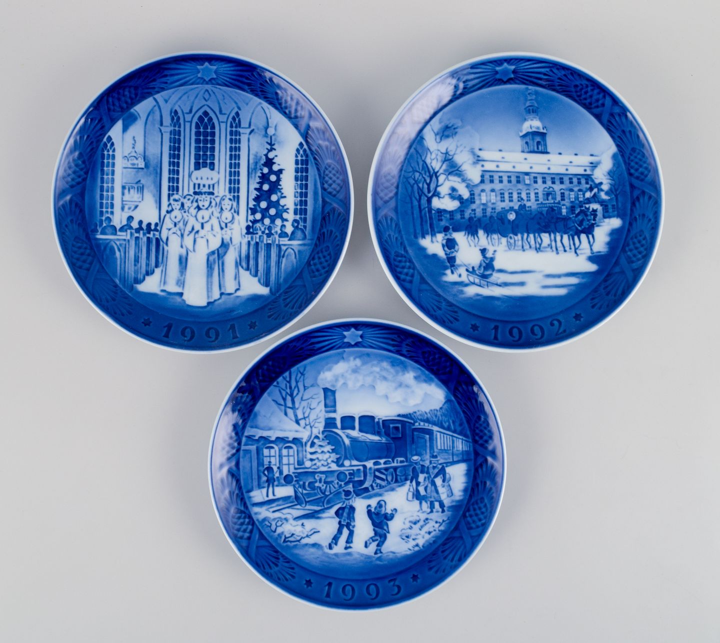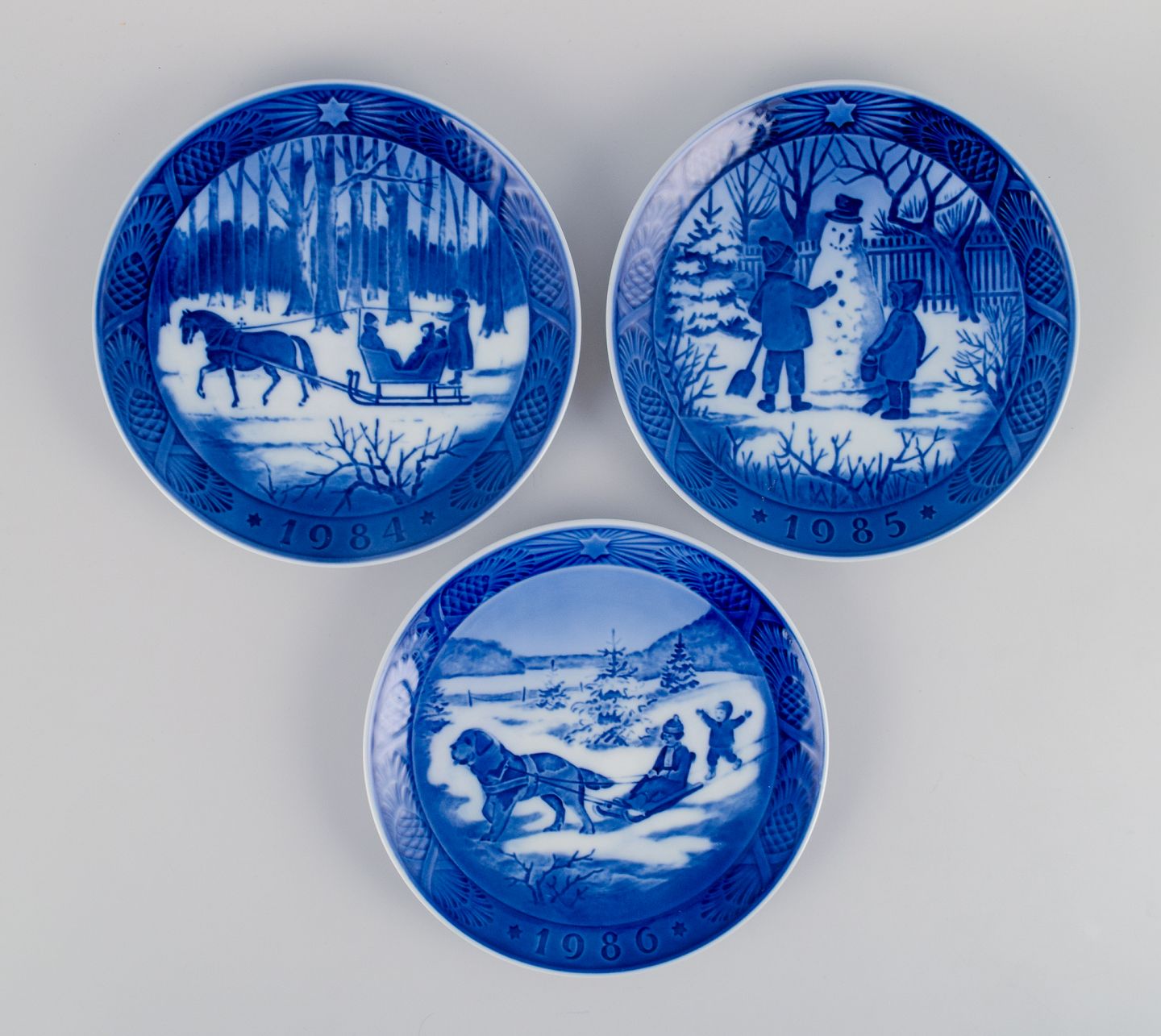 Royal Copenhagen, et sæt på ni juleplatter. Årgange: 1984, 1985, 1986, 1987, 1988, 1990, 1991, 1992 og 1993. Stemplet. I perfekt stand. Mål: D 18,5