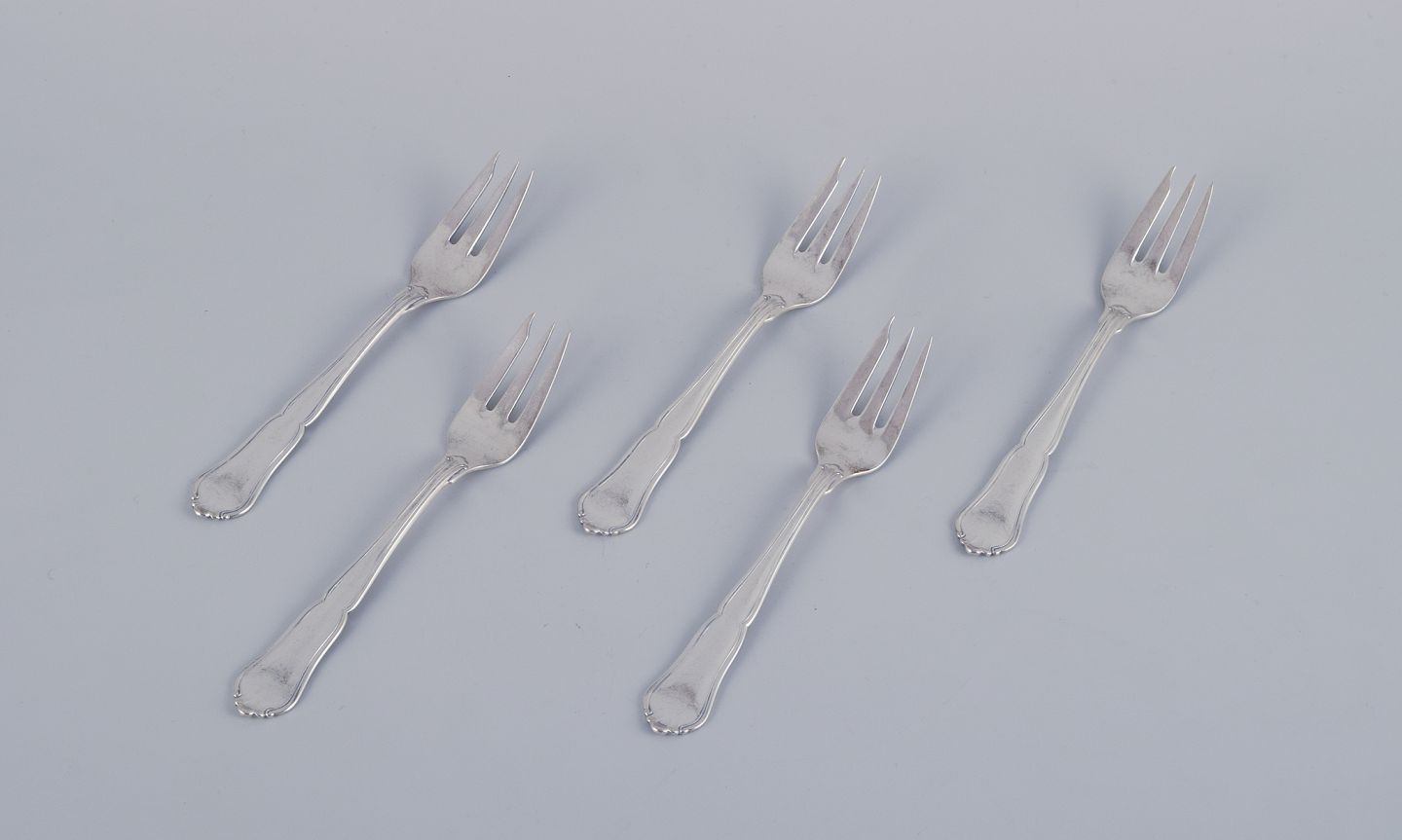 Horsens Sølv, et sæt på fem kagegafler i tretårnet sølv.