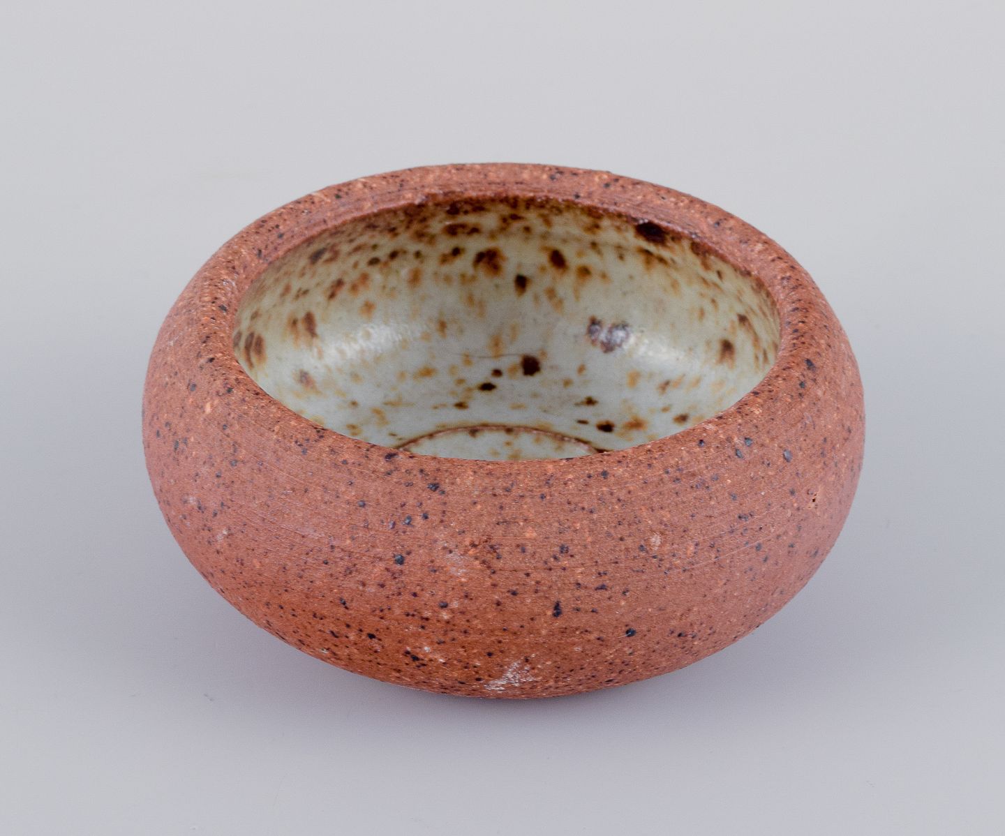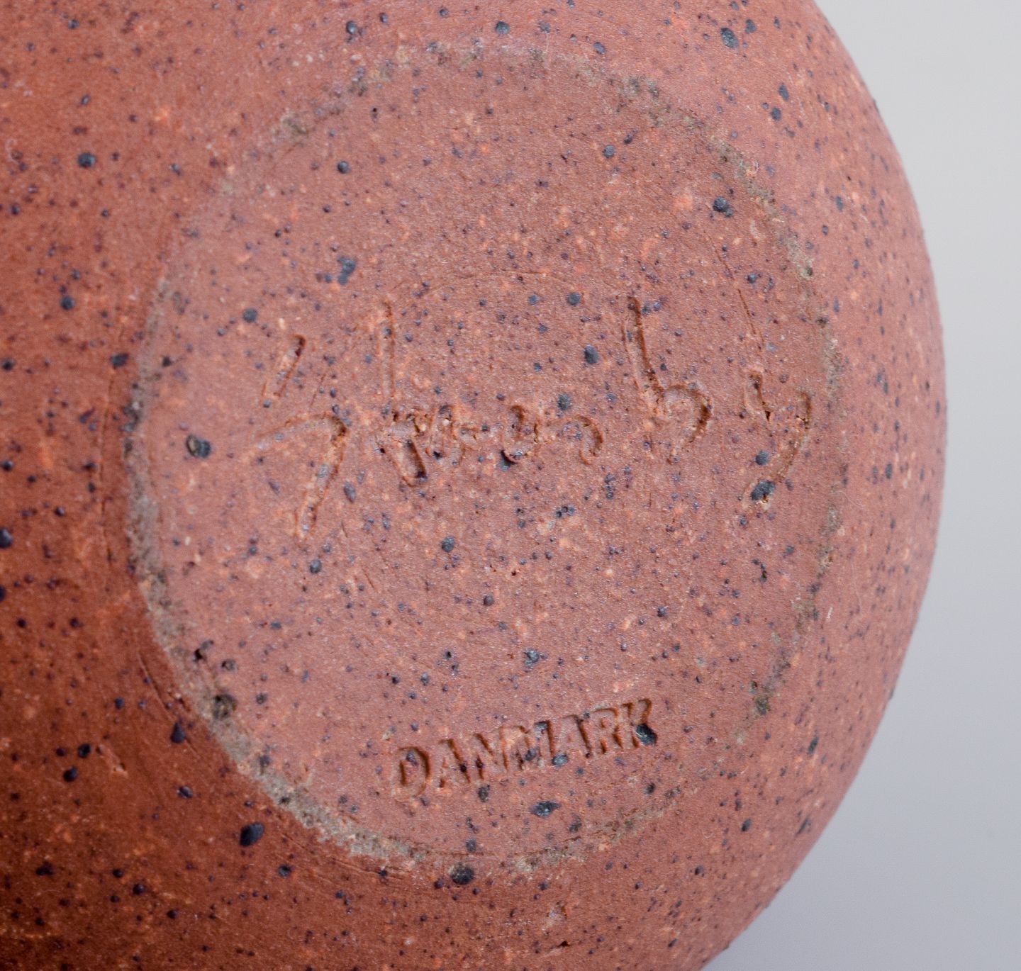 Mogens Nielsen, Nysted / Stouby Keramik og andre. Fire dele håndlavet keramik i brune nuancer. 1960/70’erne. Perfekt stand. Delvist signeret. Største: H 4,5 cm. x D 10,0 cm.