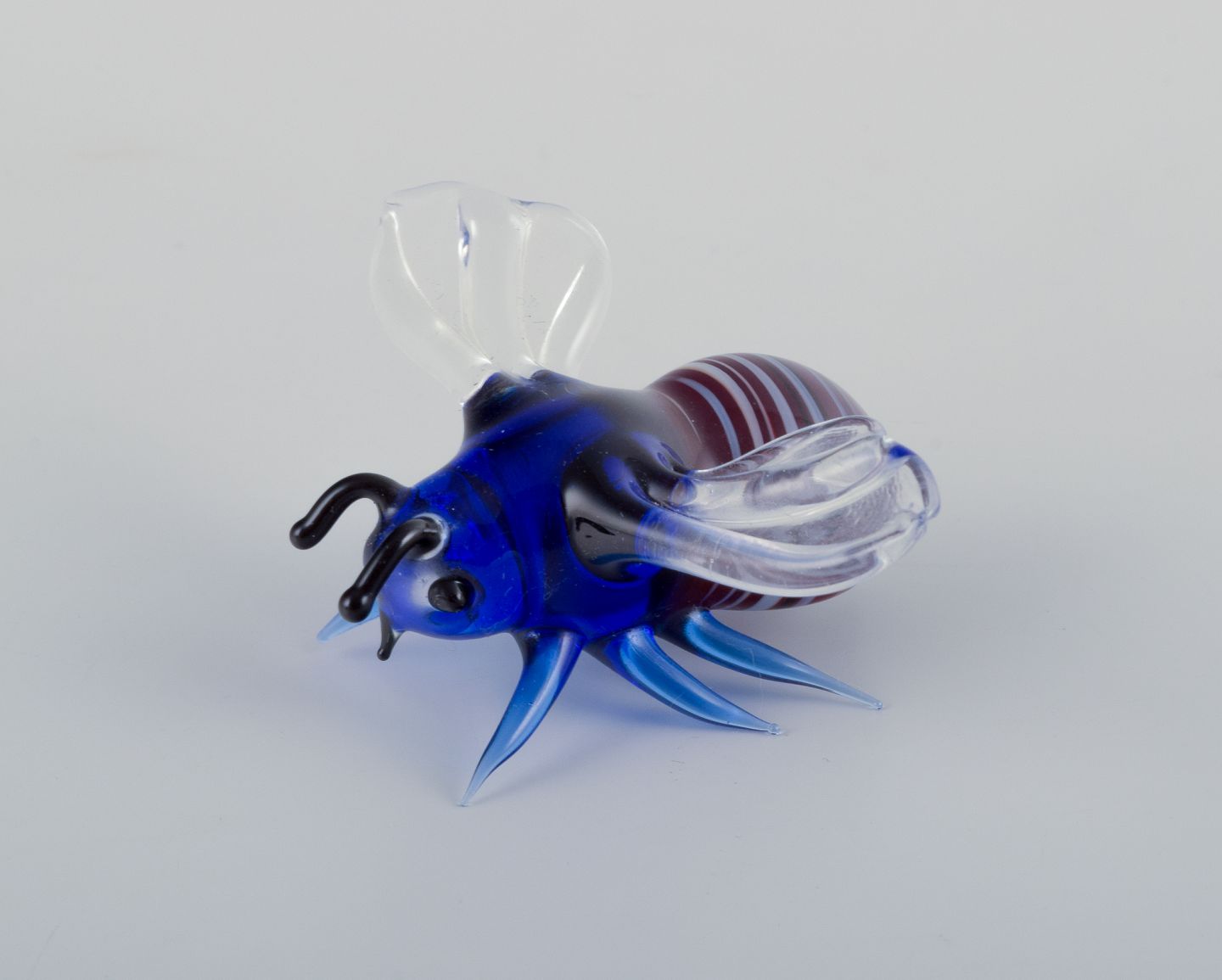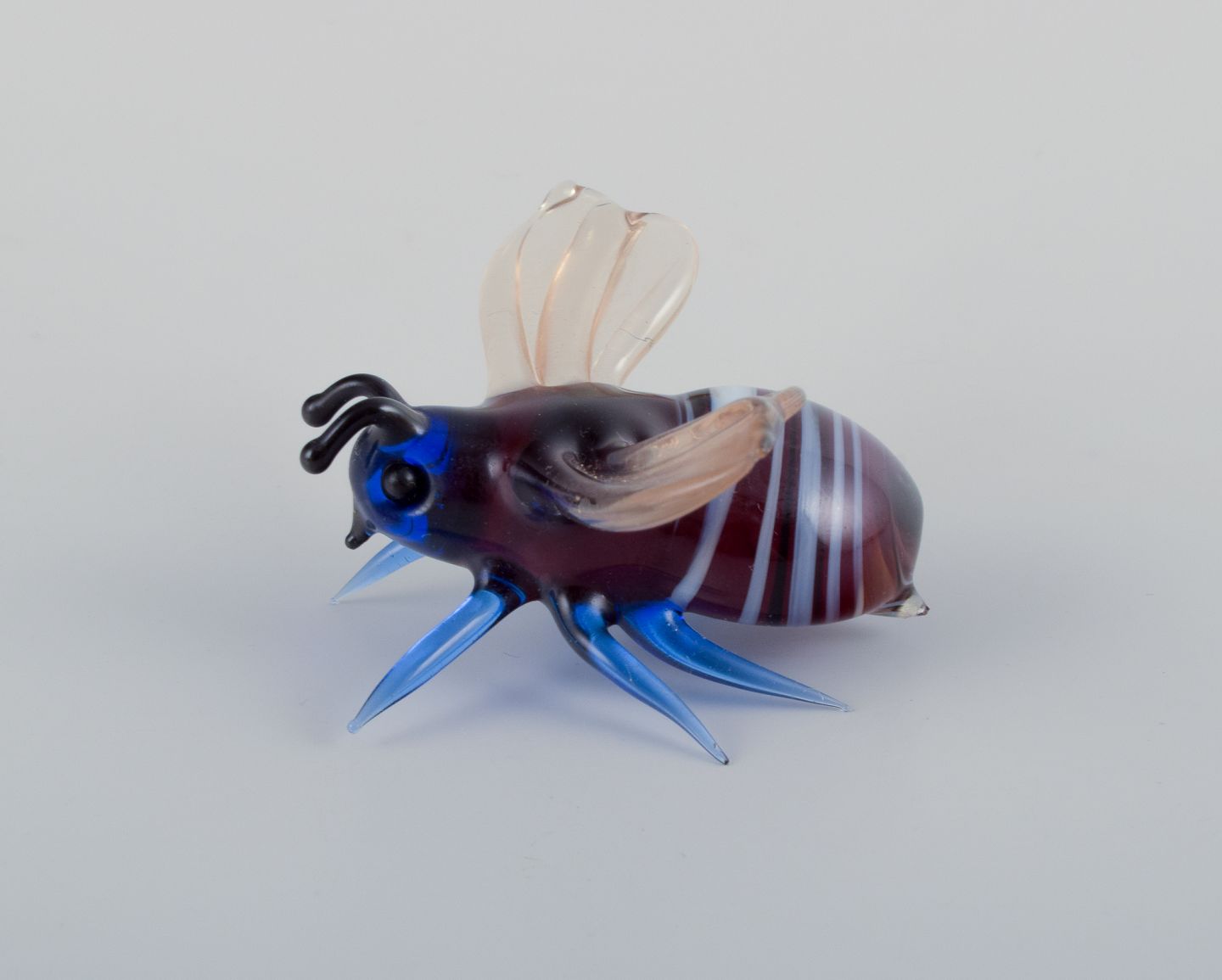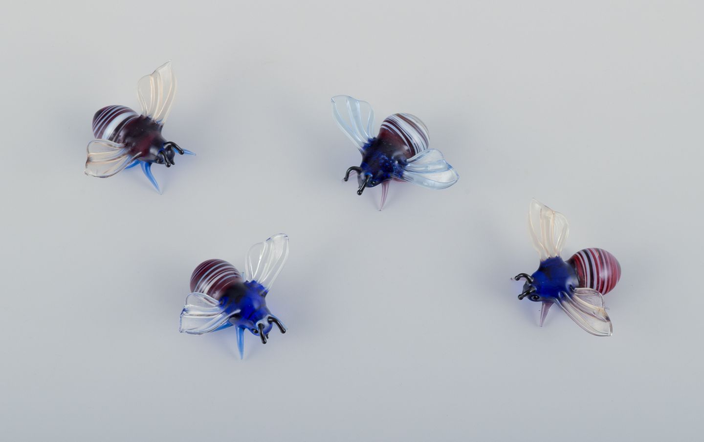 Murano, Italien. En samling på fire miniature glasfigurer af bier i farvet kunstglas. 1960/70erne. Største måler: L 6,0 cm. x B 7,0 cm. x H 3,0 cm. I perfekt stand.