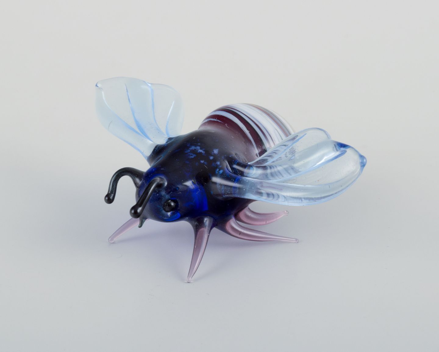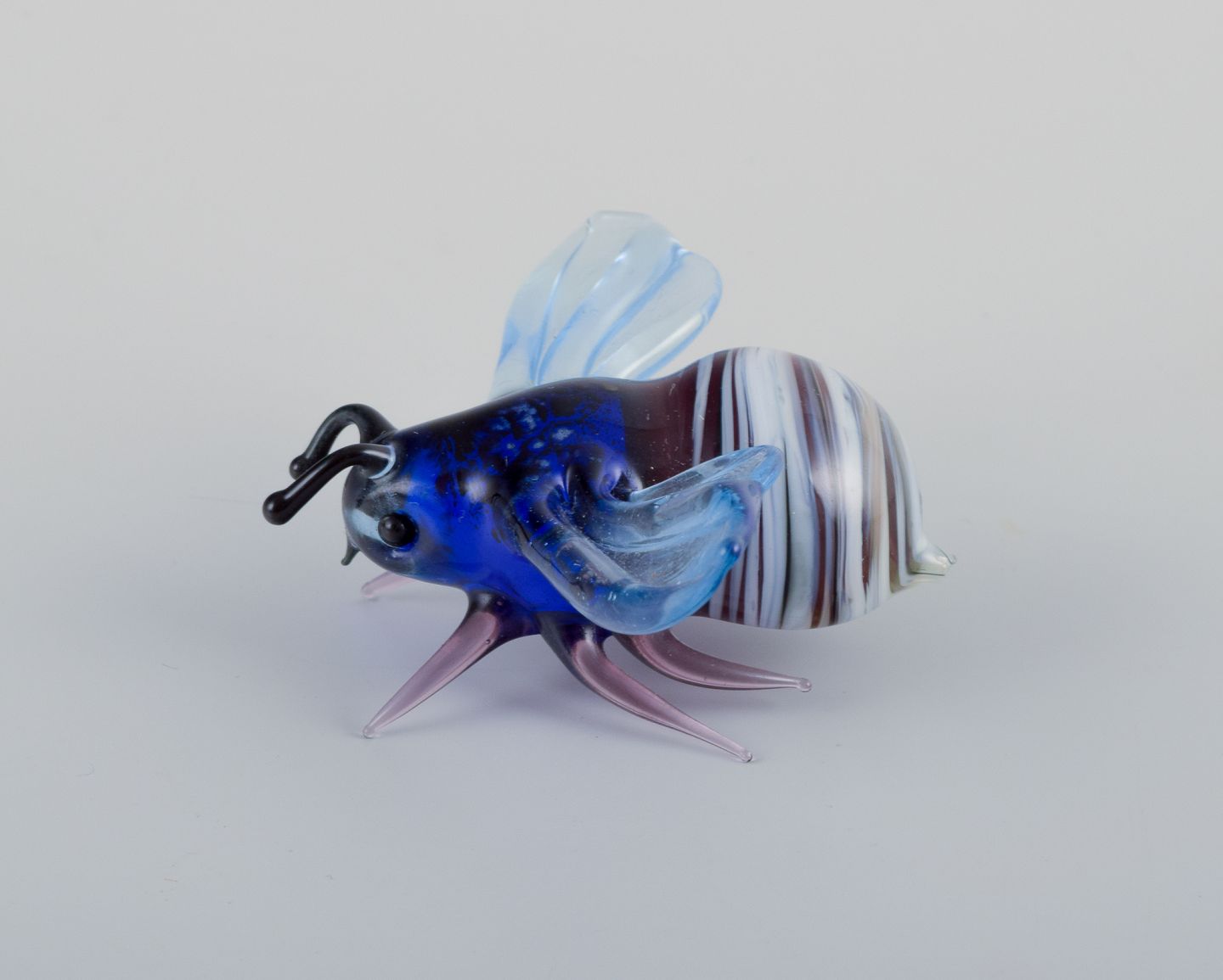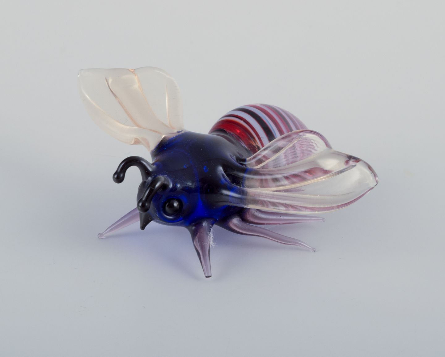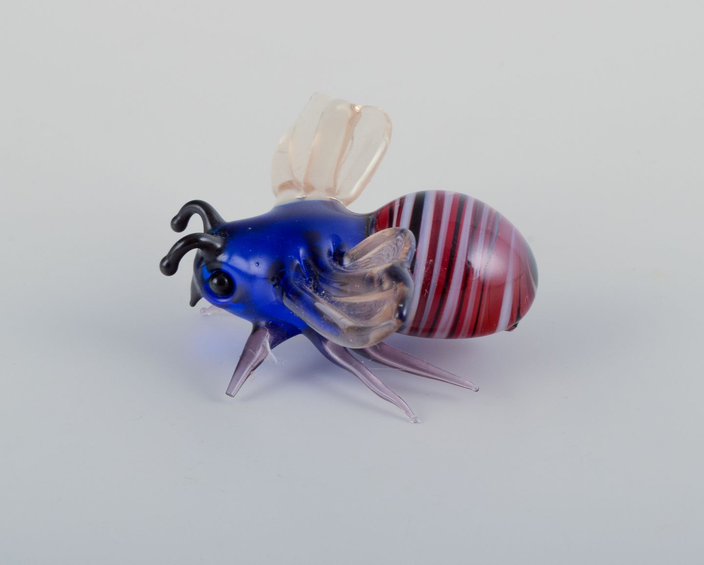Murano, Italien. En samling på fire miniature glasfigurer af bier i farvet kunstglas. 1960/70erne. Største måler: L 6,0 cm. x B 7,0 cm. x H 3,0 cm. I perfekt stand.
