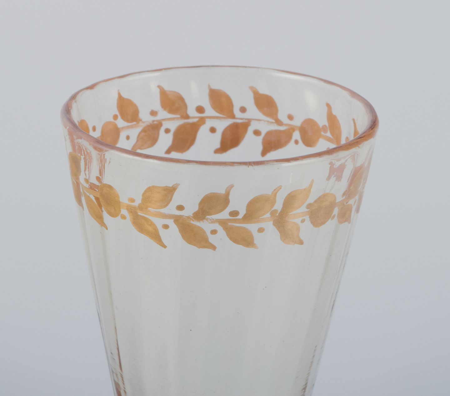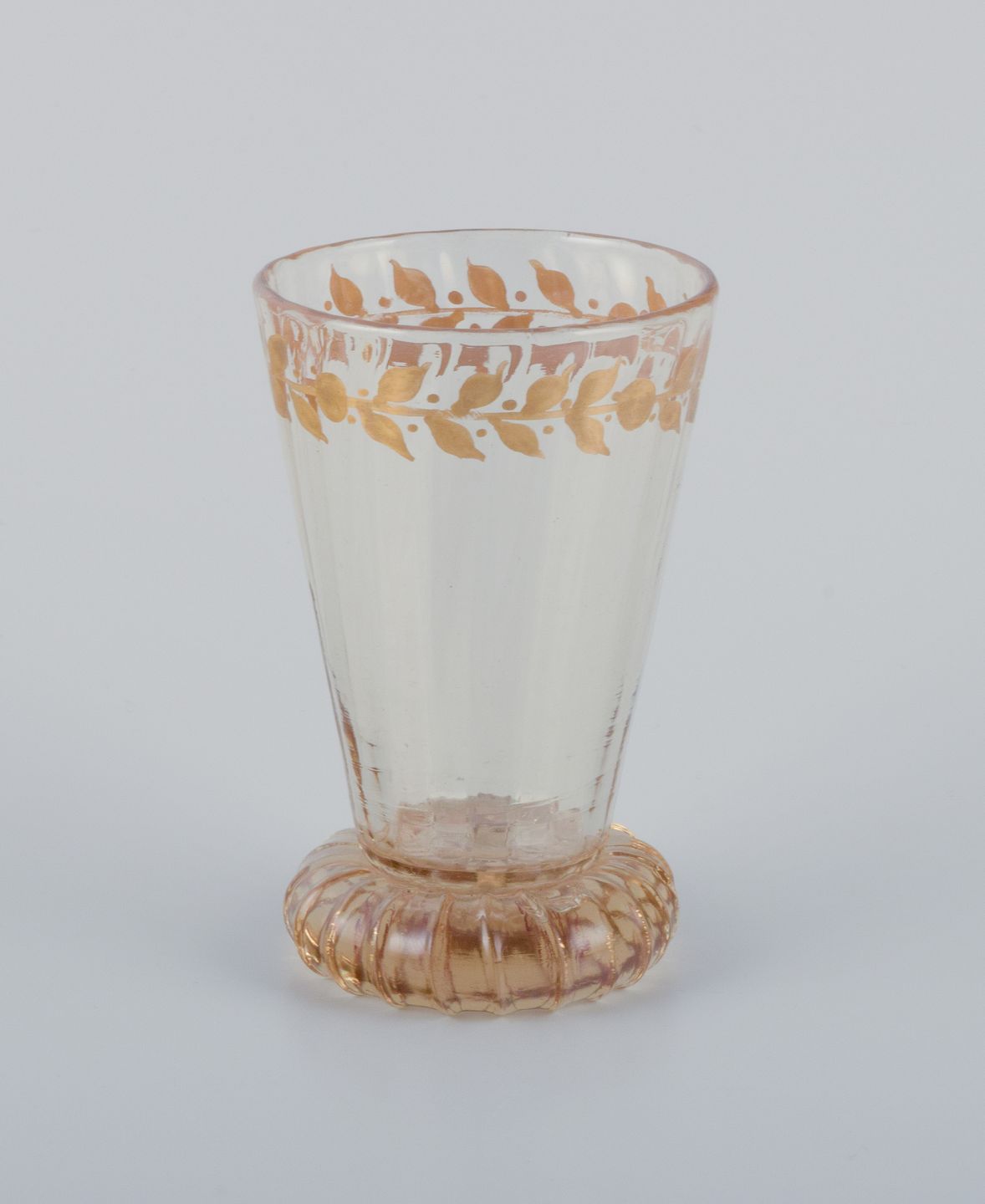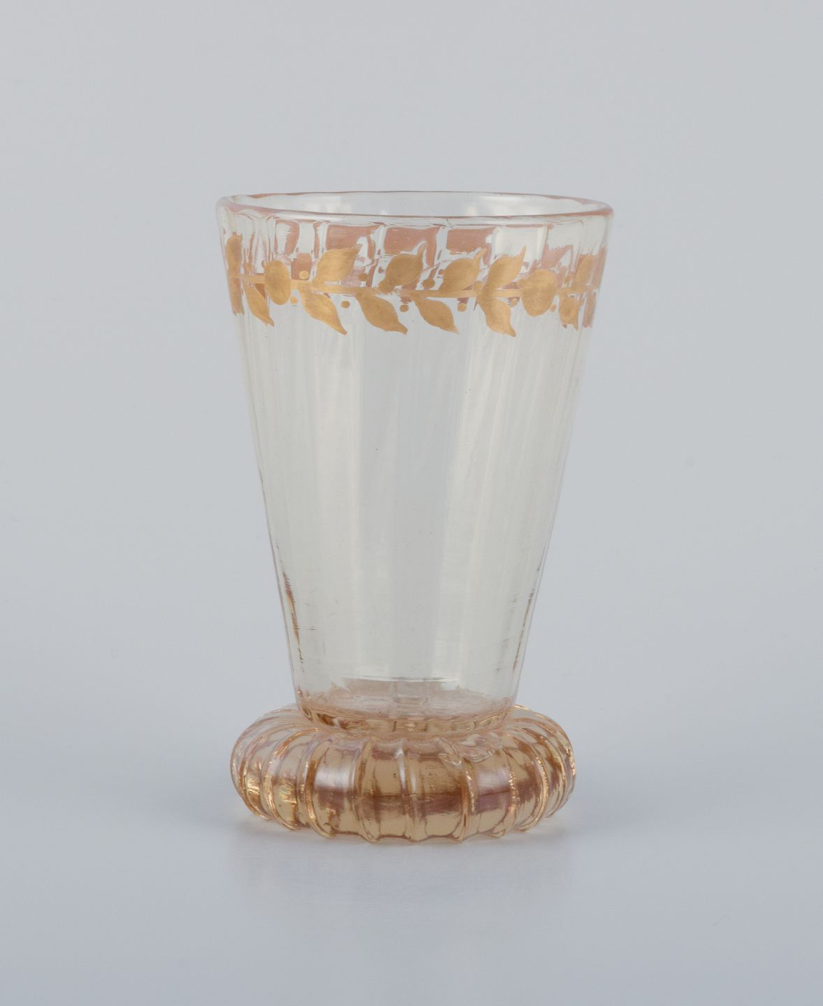 Emile Gallé (1846-1904), fransk kunstner og designer. Fem små krystalglas hånddekoreret med blade i guld. 1870/80’erne Signeret: "Cristalleries d'Emile Gallé, Nancy" Perfekt stand. Mål: H 7,9 cm. x 4,9 cm.