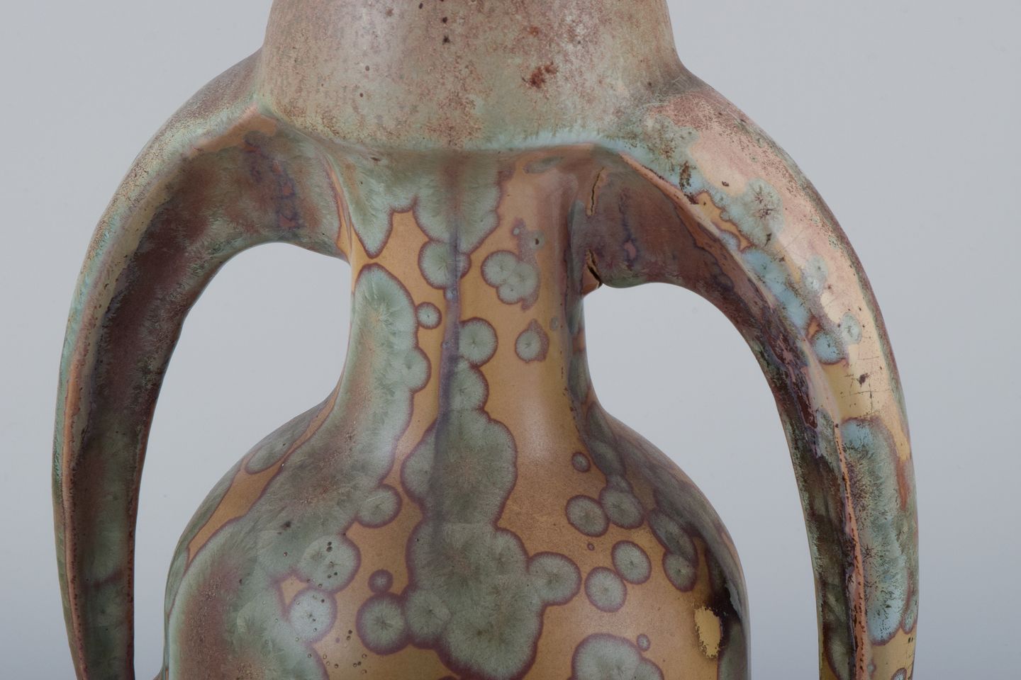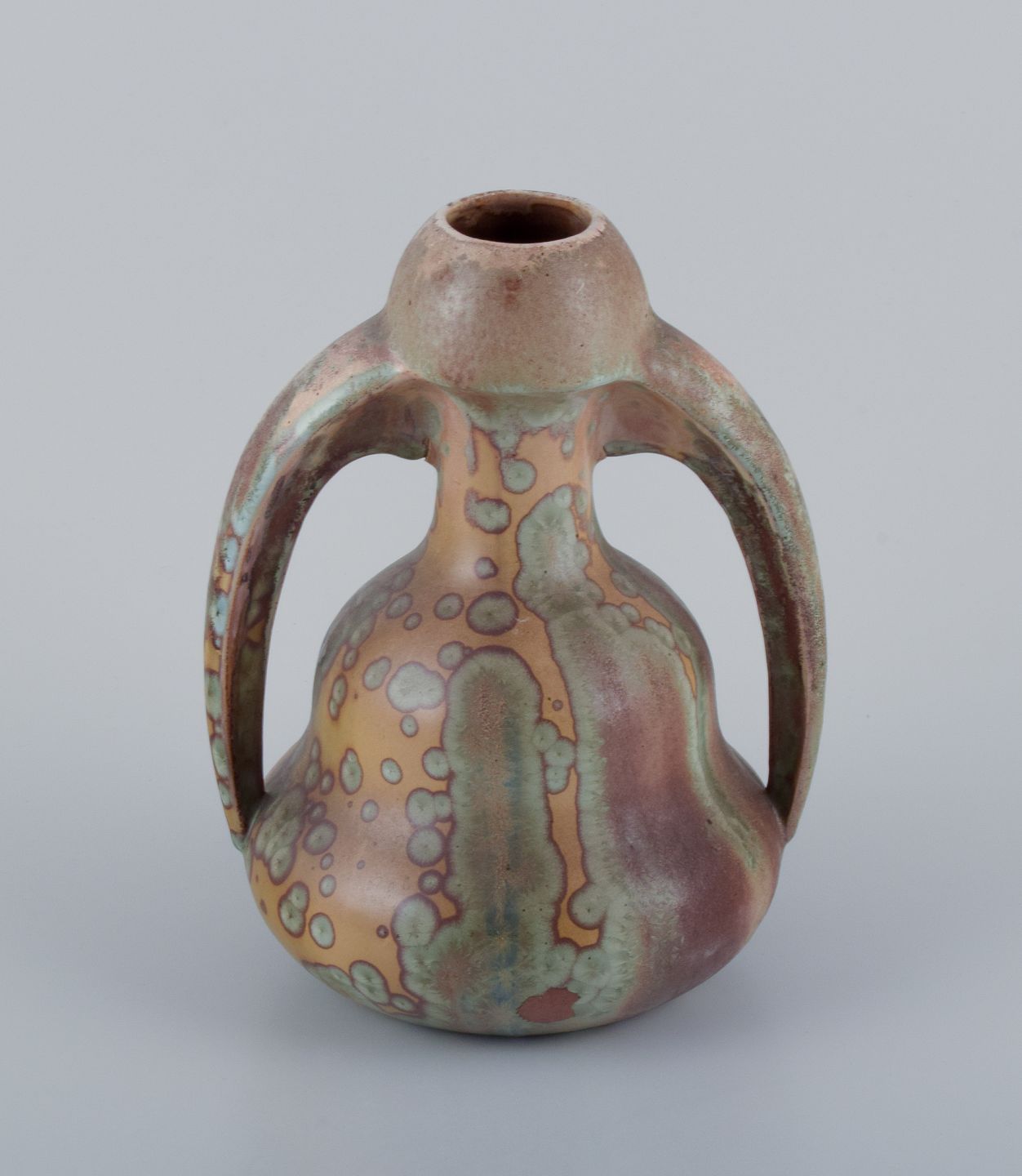 Desvres Fourmaintraux Delassus, Frankrig. Keramikvase med hanke i Krystalglasur. Art Nouveau.