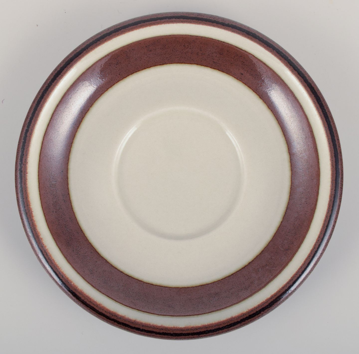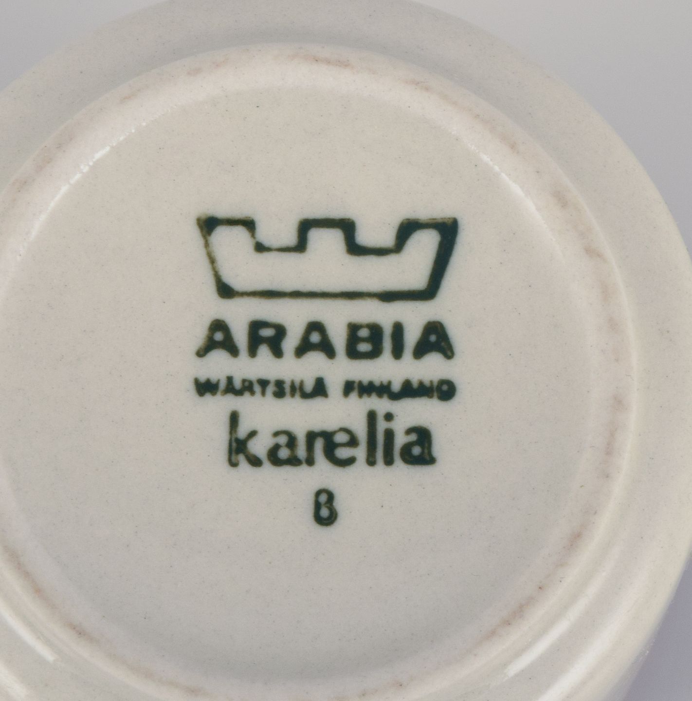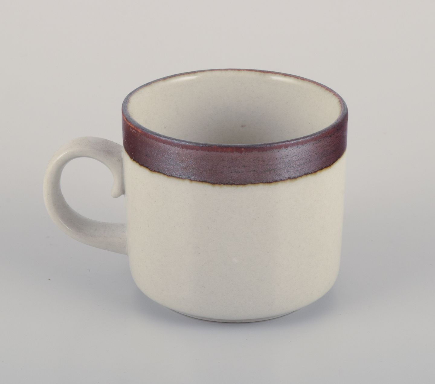 Arabia, Finland. Karelia. Fire sæt små kaffekopper og tilhørende underkopper i stentøj. 1970’erne. Stemplet. Perfekt stand. Kop: H 5,8 cm. x D 6,6 cm. uden hank. Underkop: 13,8 cm.