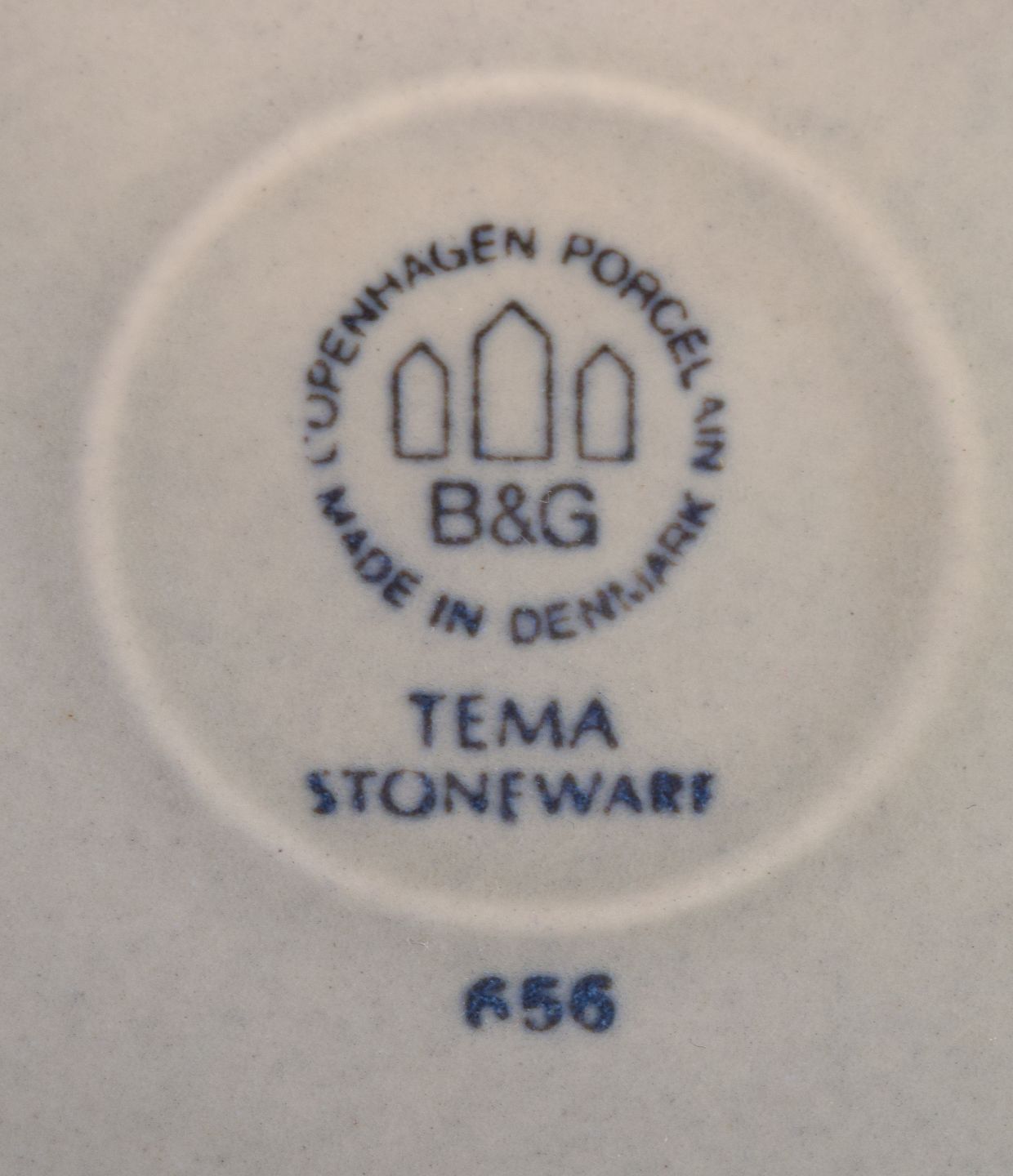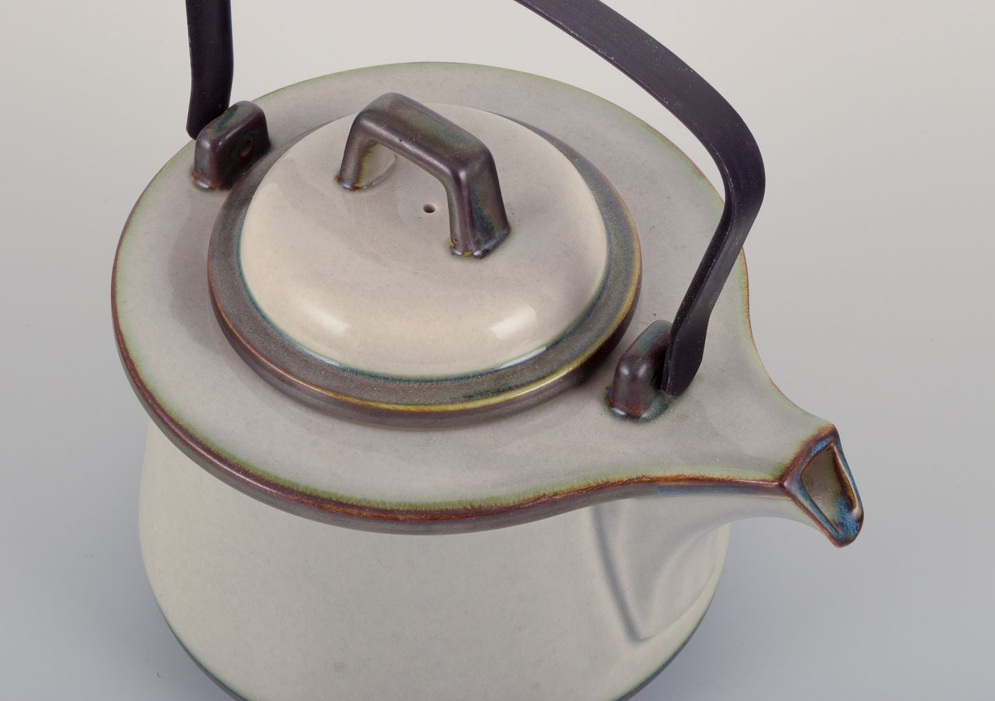 Bing & Grøndahl, Tema. Tekande i stentøj. Hank i støbejern. 1970’erne. Model: 656. Stemplet. Perfekt stand. Første sortering. Mål: H 21,5 cm. med hank x D 21,0 cm. med tud.