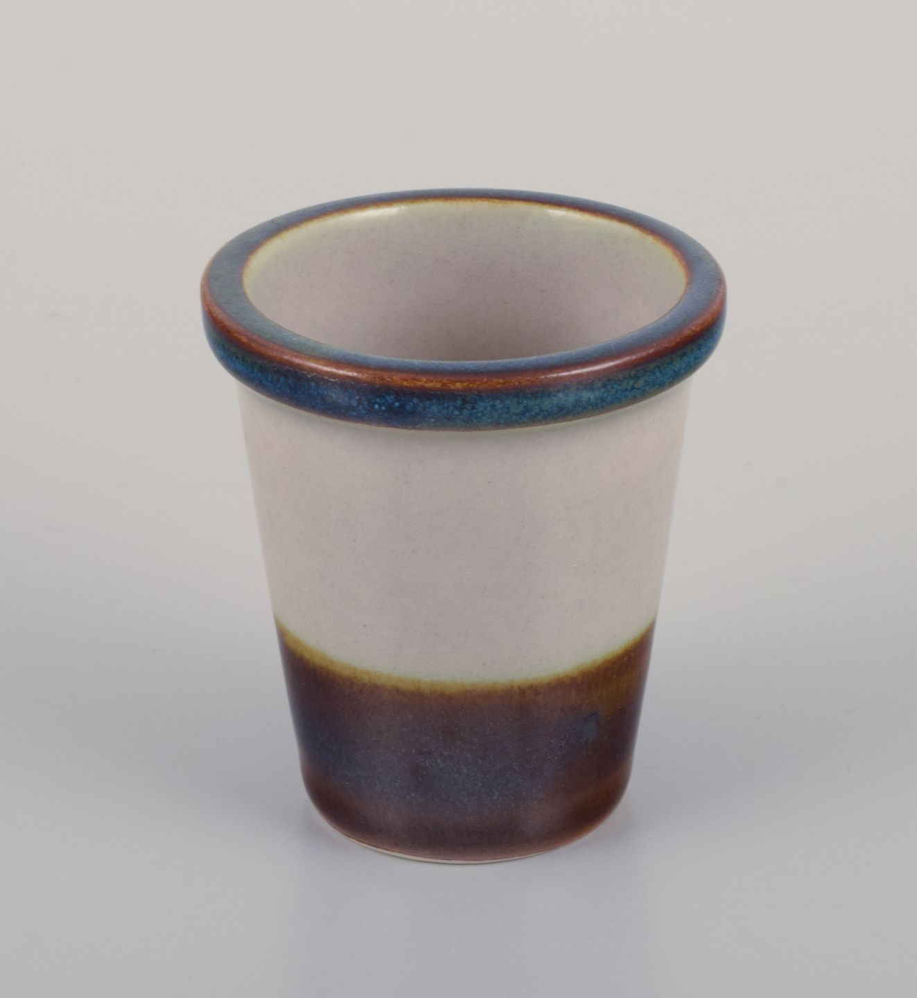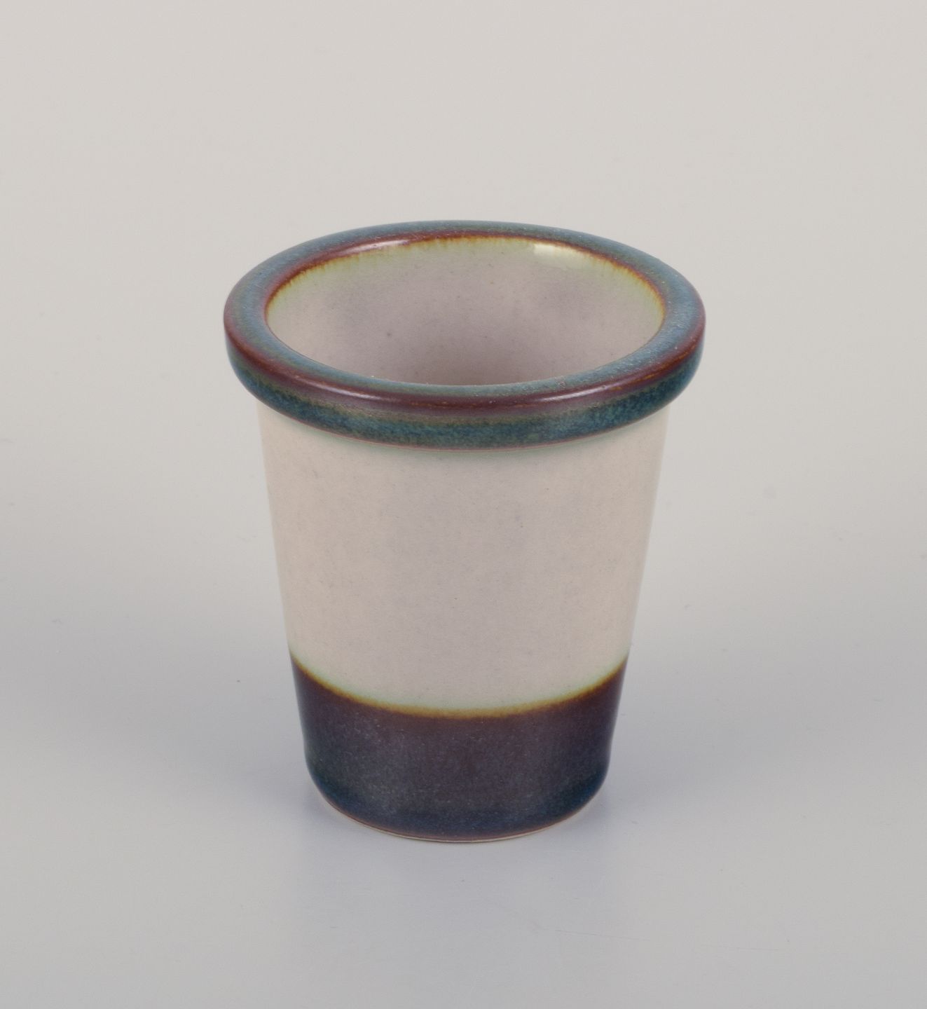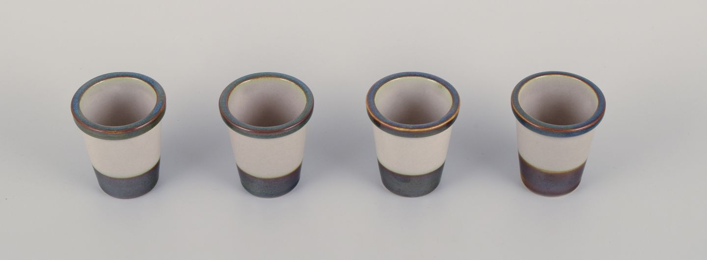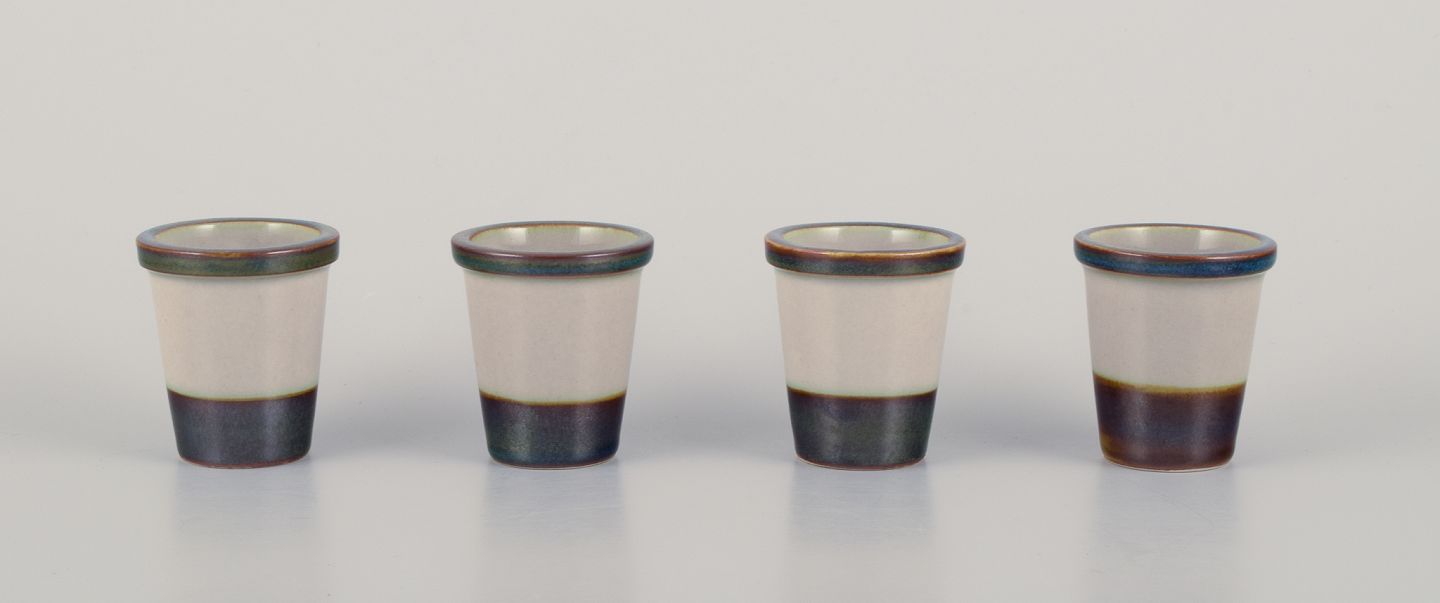 Bing & Grøndahl, Tema. Fire æggebægre i stentøj. 1970’erne. Model: 696. Stemplet. Perfekt stand. Første sortering. Mål: H 6,2 cm. x D 5,4 cm.