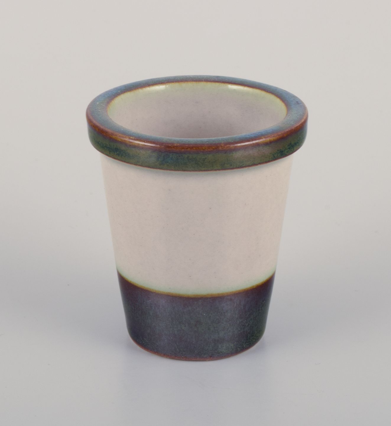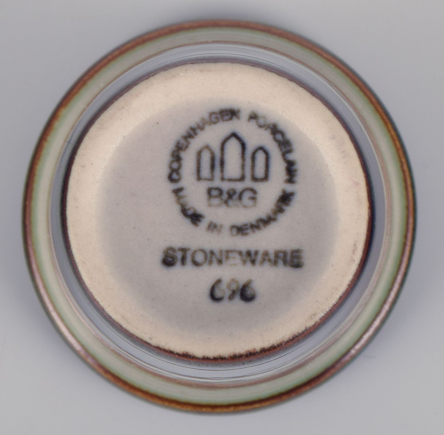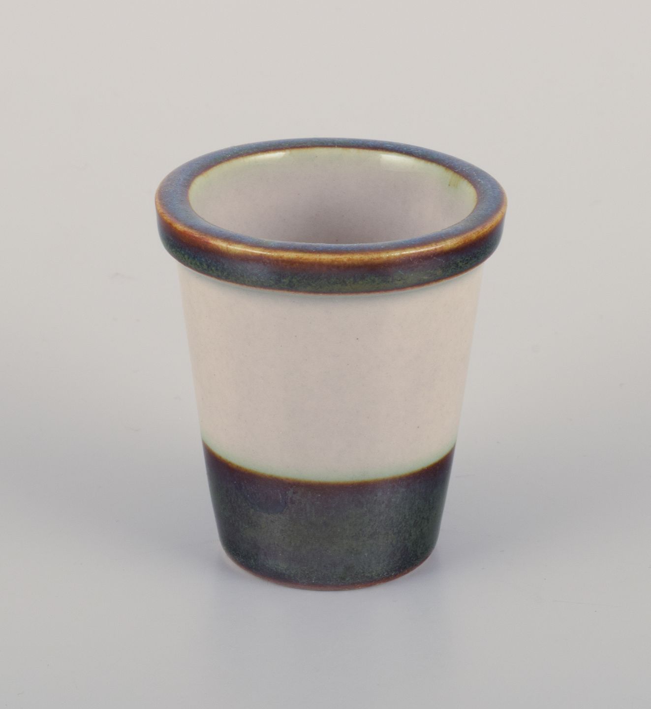 Bing & Grøndahl, Tema. Fire æggebægre i stentøj. 1970’erne. Model: 696. Stemplet. Perfekt stand. Første sortering. Mål: H 6,2 cm. x D 5,4 cm.