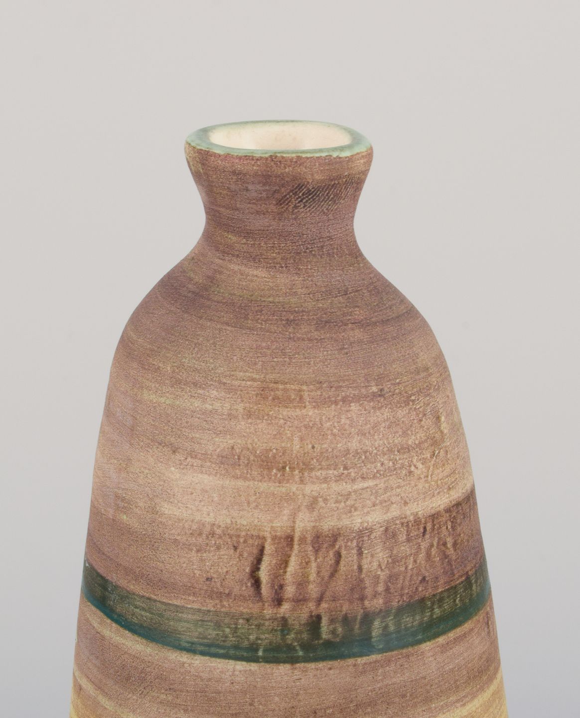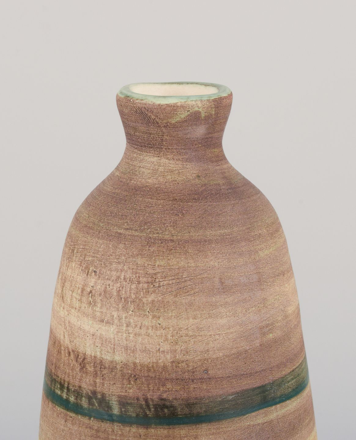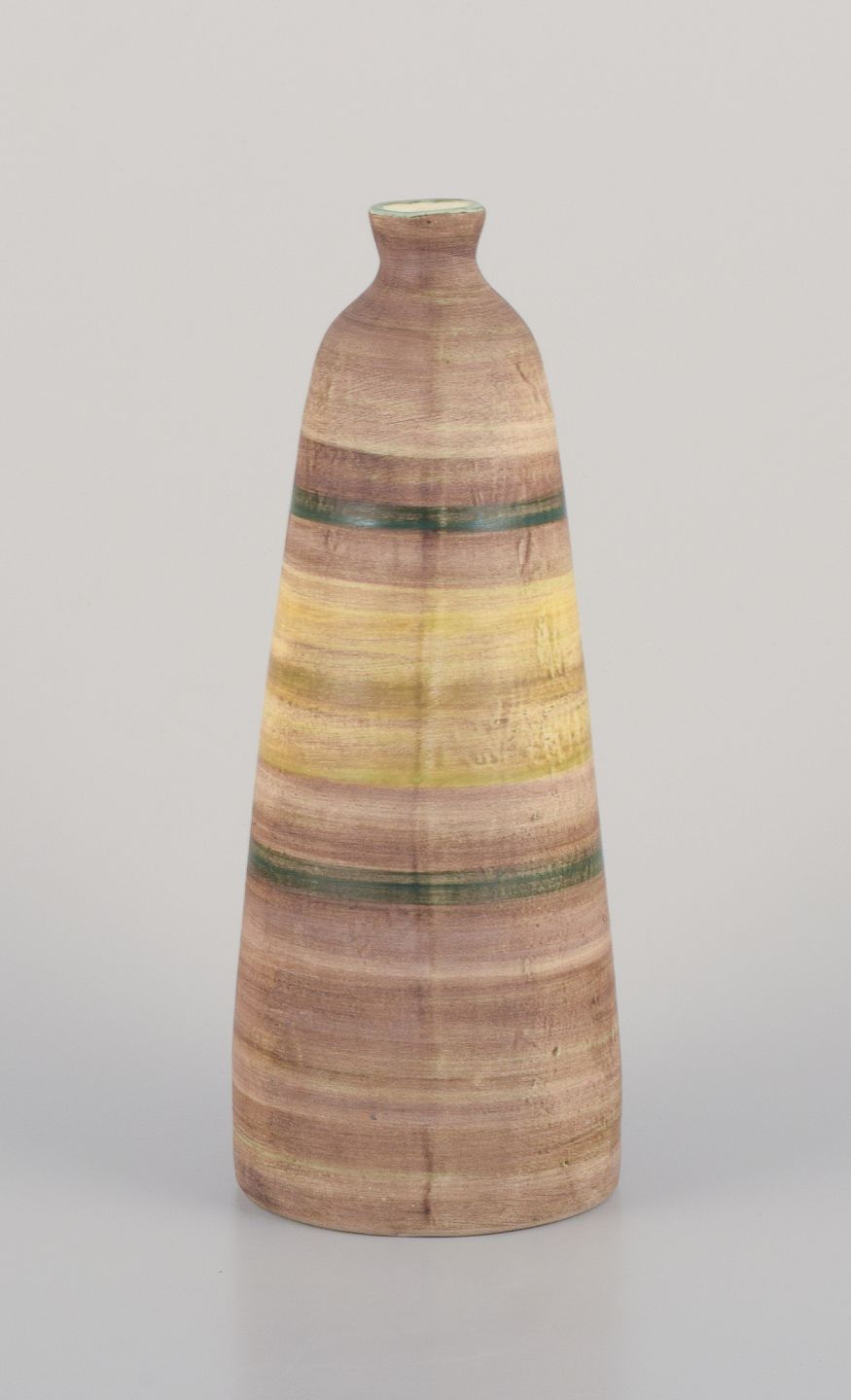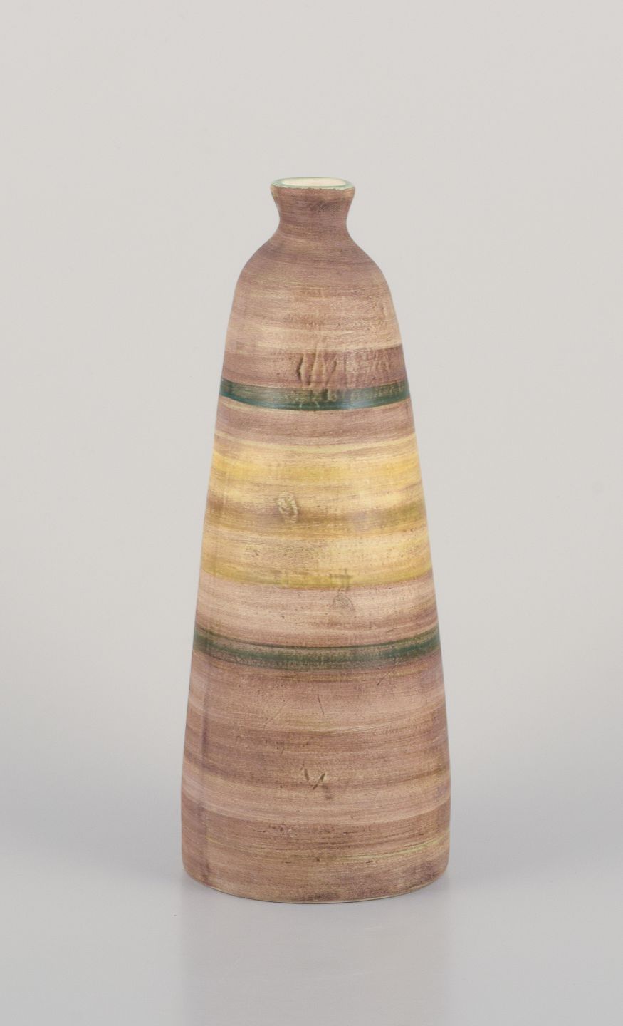 Atelier Le Belier, Vallauris, Frankrig. Unika keramikvase i polykrom glasur. Ca. 1970. Perfekt stand. Signeret. Mål: H 26,5 x D 10,0 cm.