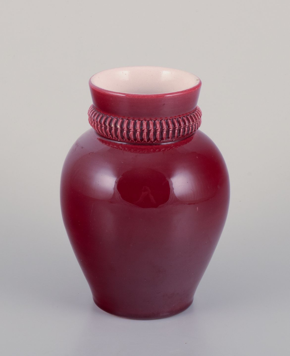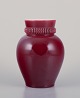 Pol Chambost (1906-1983), fransk keramiker. Hånddekoreret keramikvase med glasur i bordeaux toner. Ca. 1940’erne. I god stand med enkelte små ubetydelige nøk. Stemplet. Mål: H 16,5 cm. x D 10,5 cm.