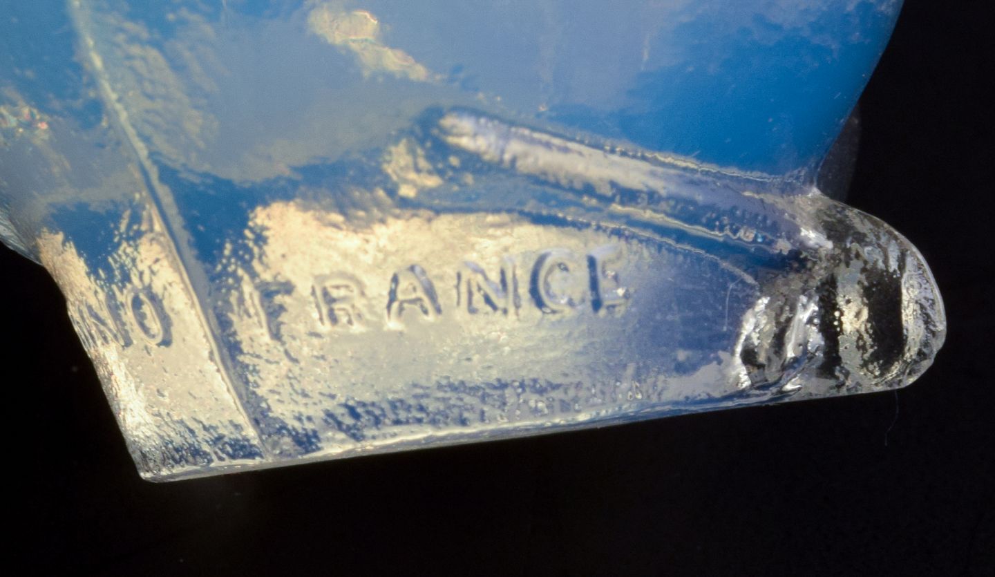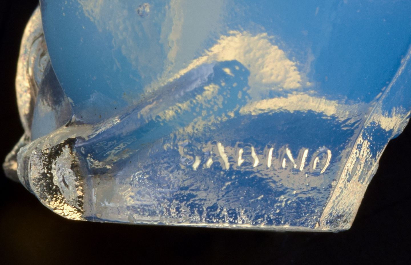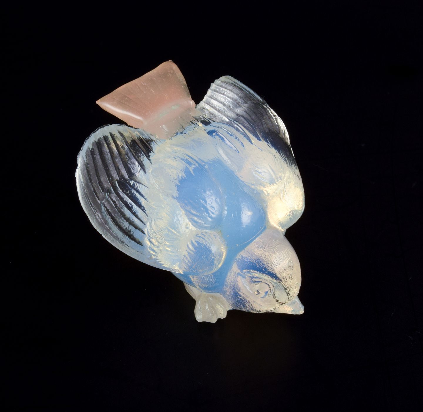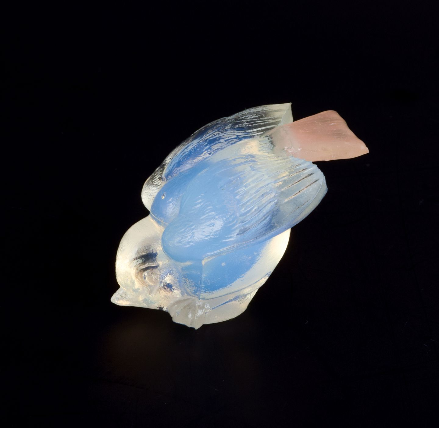 Sabino, Frankrig. To fugleunger i kunstglas, Art Deco opaline-glas med blåligt skær. Ca. 1930’erne. Perfekt stand. Stemplet: Sabino, France. Mål: L 6,5 cm. x H 4,5 cm.