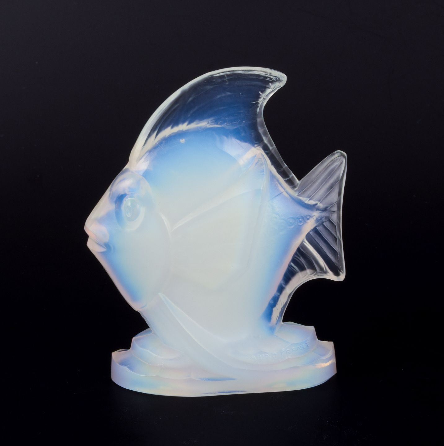 Sabino, Frankrig. Fisk i kunstglas. Art Deco opaline glas med blåligt skær. Ca. 1930’erne. I perfekt stand. Stemplet: Sabino, France. Mål: D 9,5 cm. x H 11,7 cm.