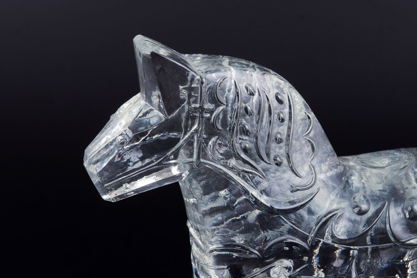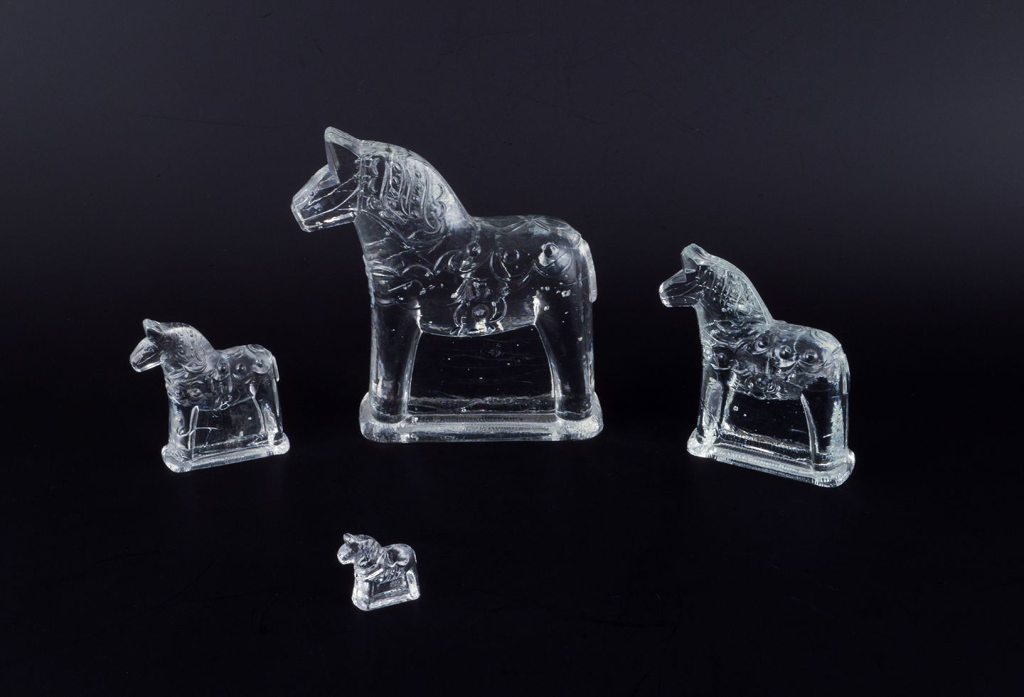 Svensk glaskunstner, fire dalarheste i klart mundblæst kunstglas.