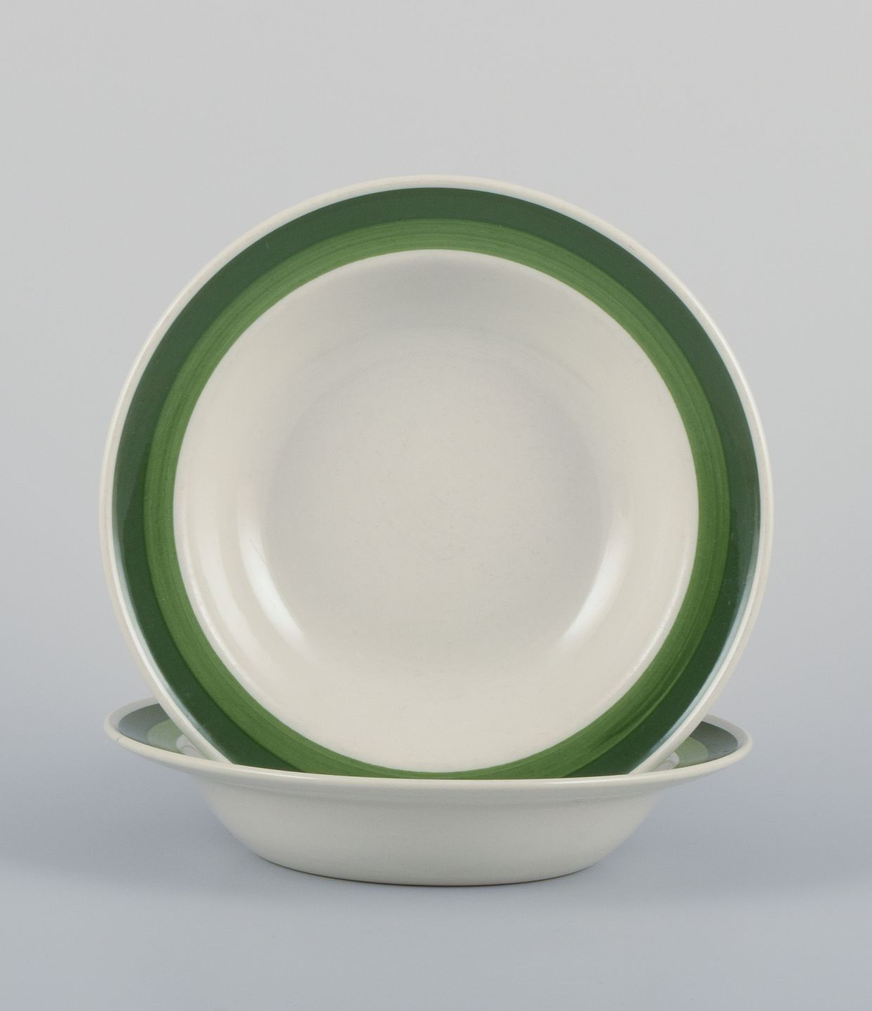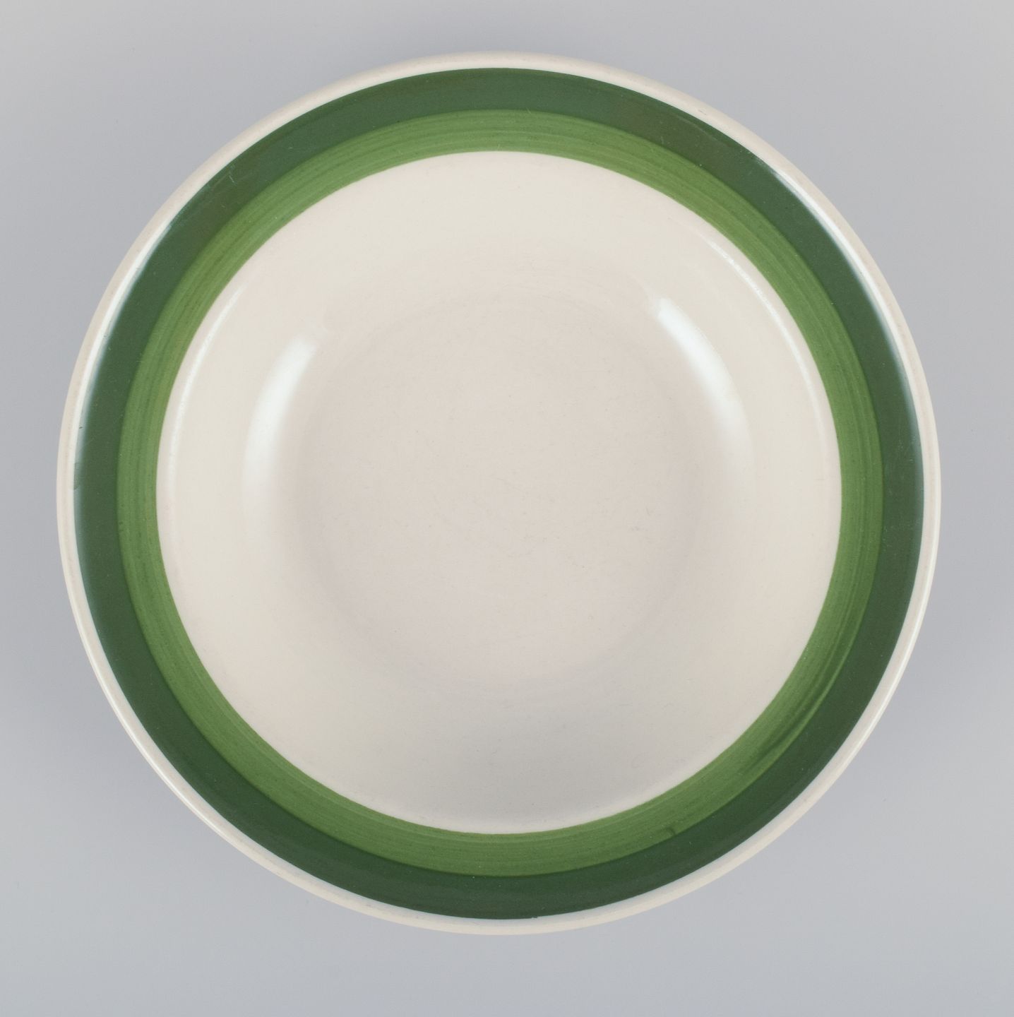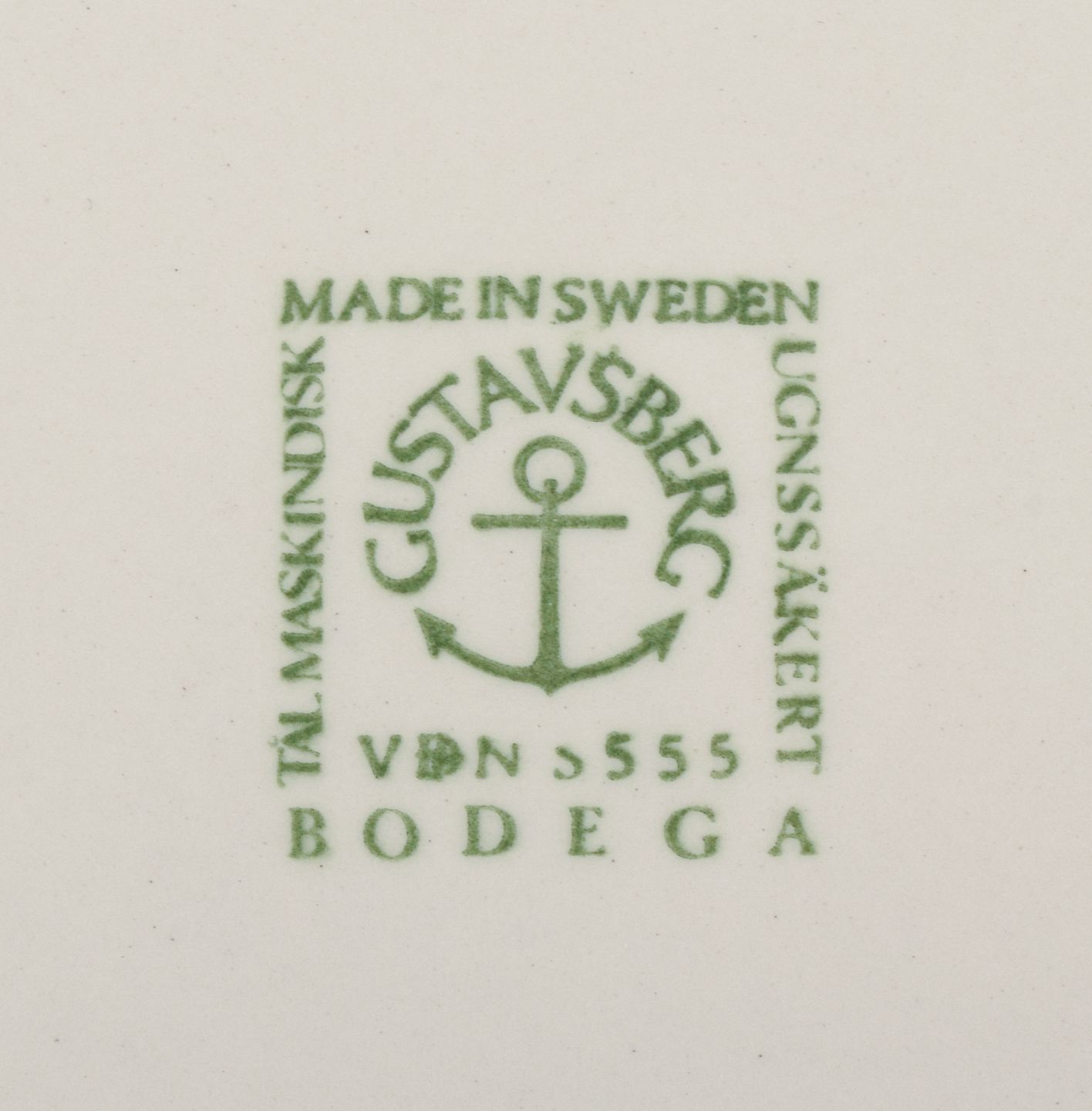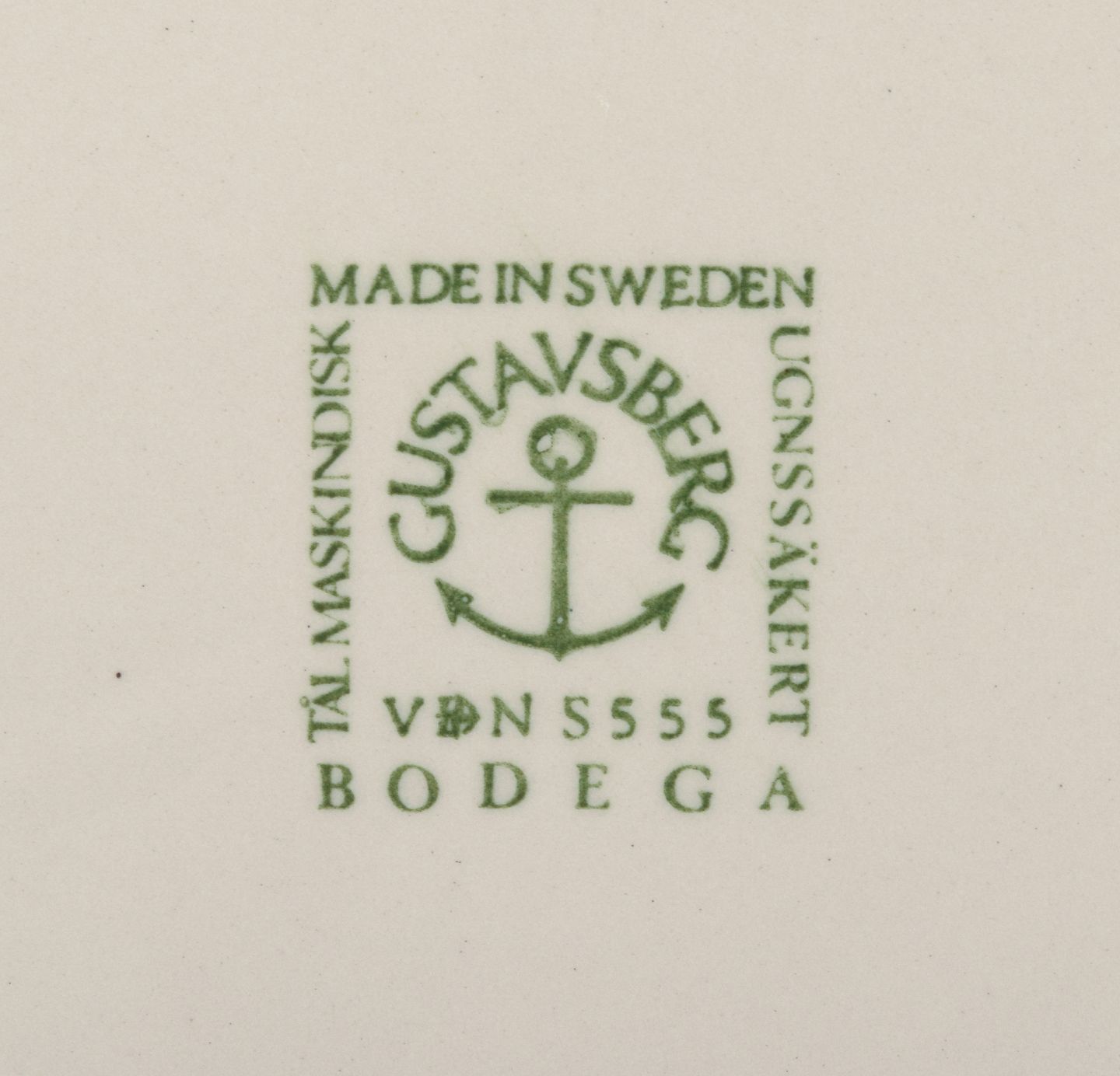Stig Lindberg for Gustavsberg, ”Bodega”. Fire tallerkner og to dybe tallerkner i stentøj. Stilrent skandinavisk design.