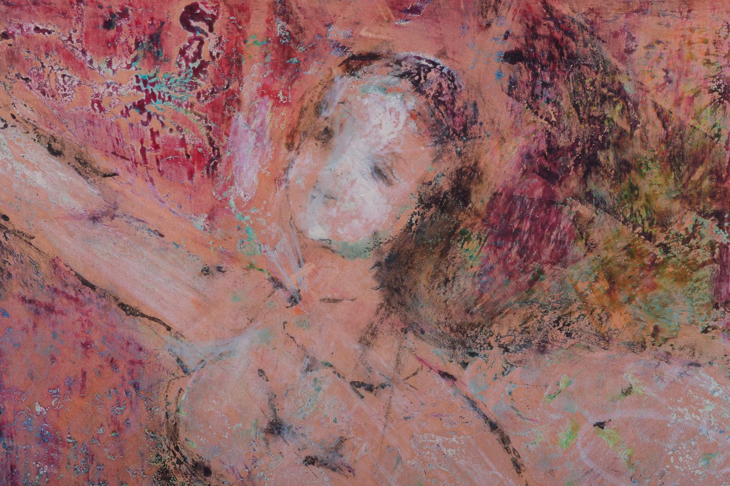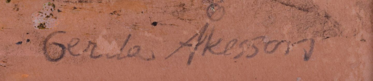 Gerda Åkesson (1909-1992), svensk kunstner, oliekridt på papir. Ballerina. Modernistisk stil. Ca. 1960. Signeret. Perfekt stand. Lysmål: 56,0 cm. x 48,5 cm. Totalmål: 65,5 cm. x 59,0 cm