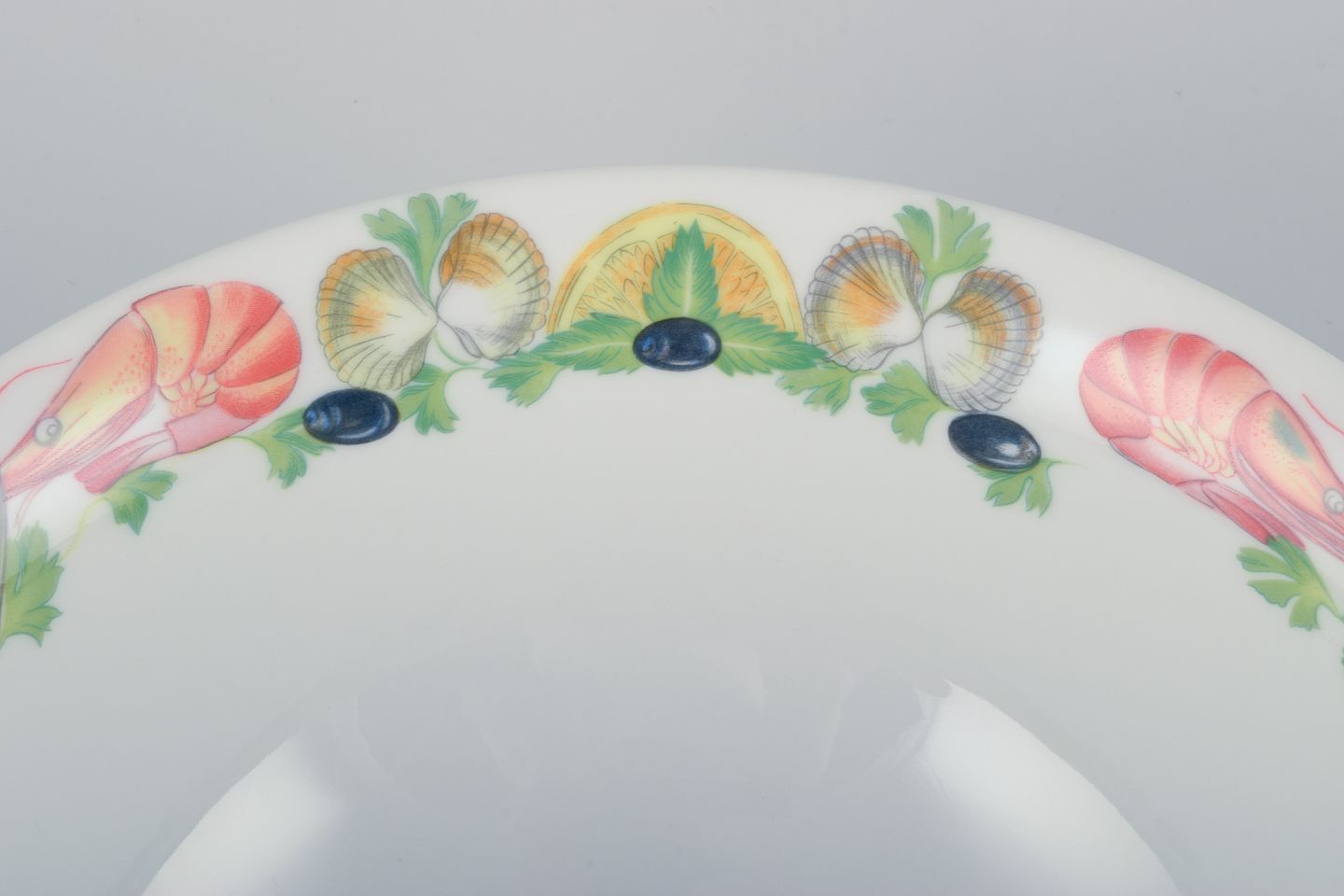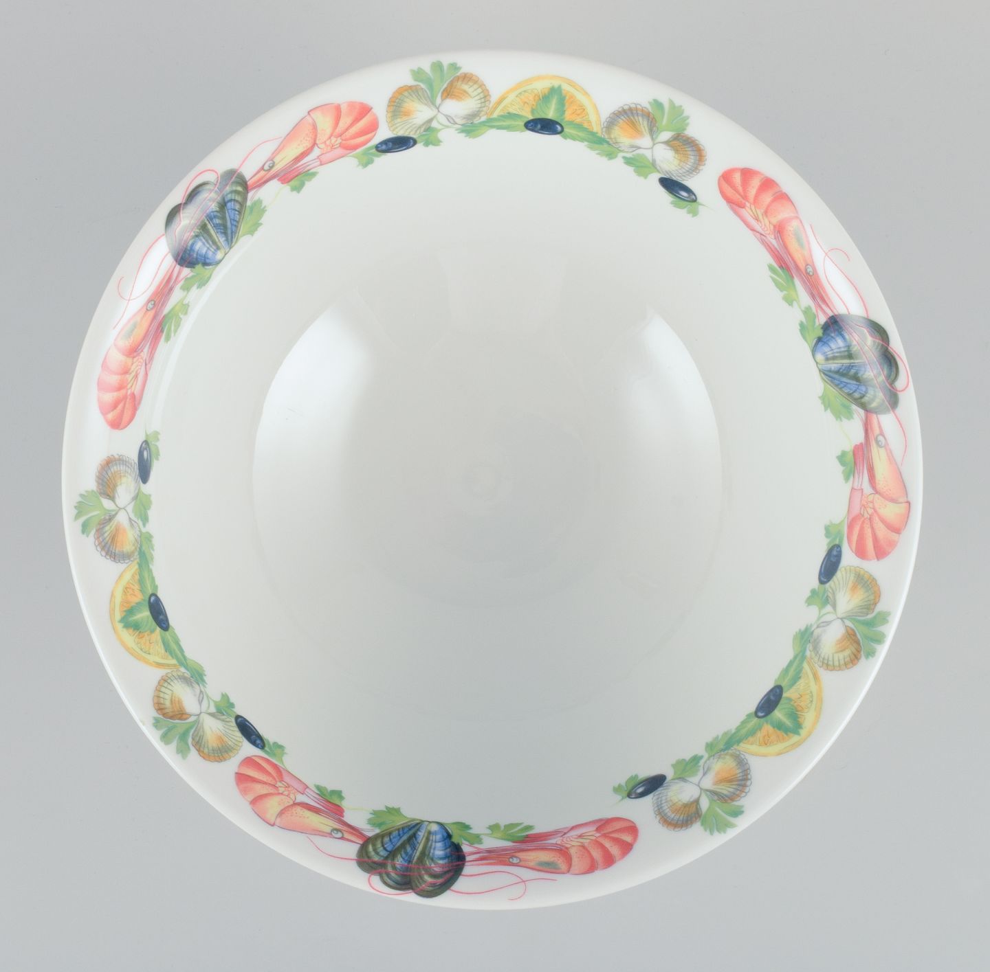 Pillivuyt, Frankrig. Stor porcelænsskål med motiv af skaldyr. Ca. 1970’erne. Stemplet. Perfekt stand. Mål: D 24,5 cm. x H 10,0 cm.