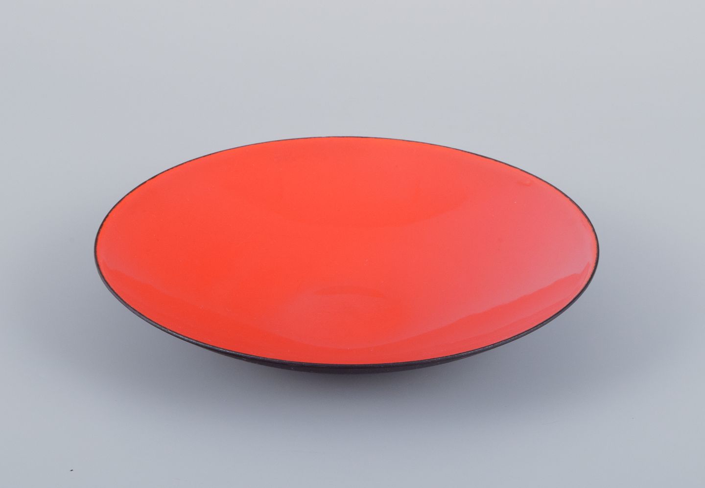 Hermann Krenchel, tre Krenit metalskåle med emalje i orange.