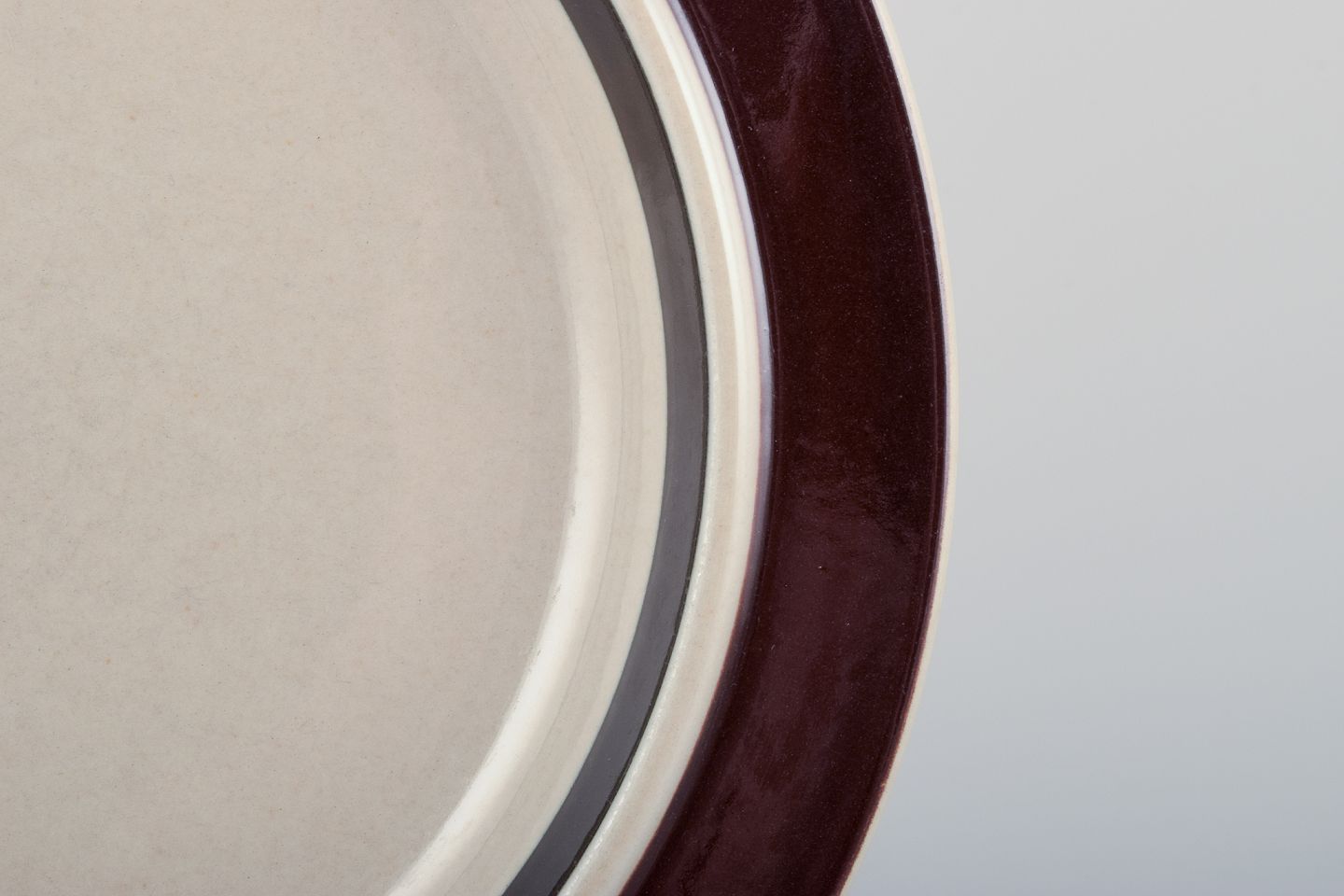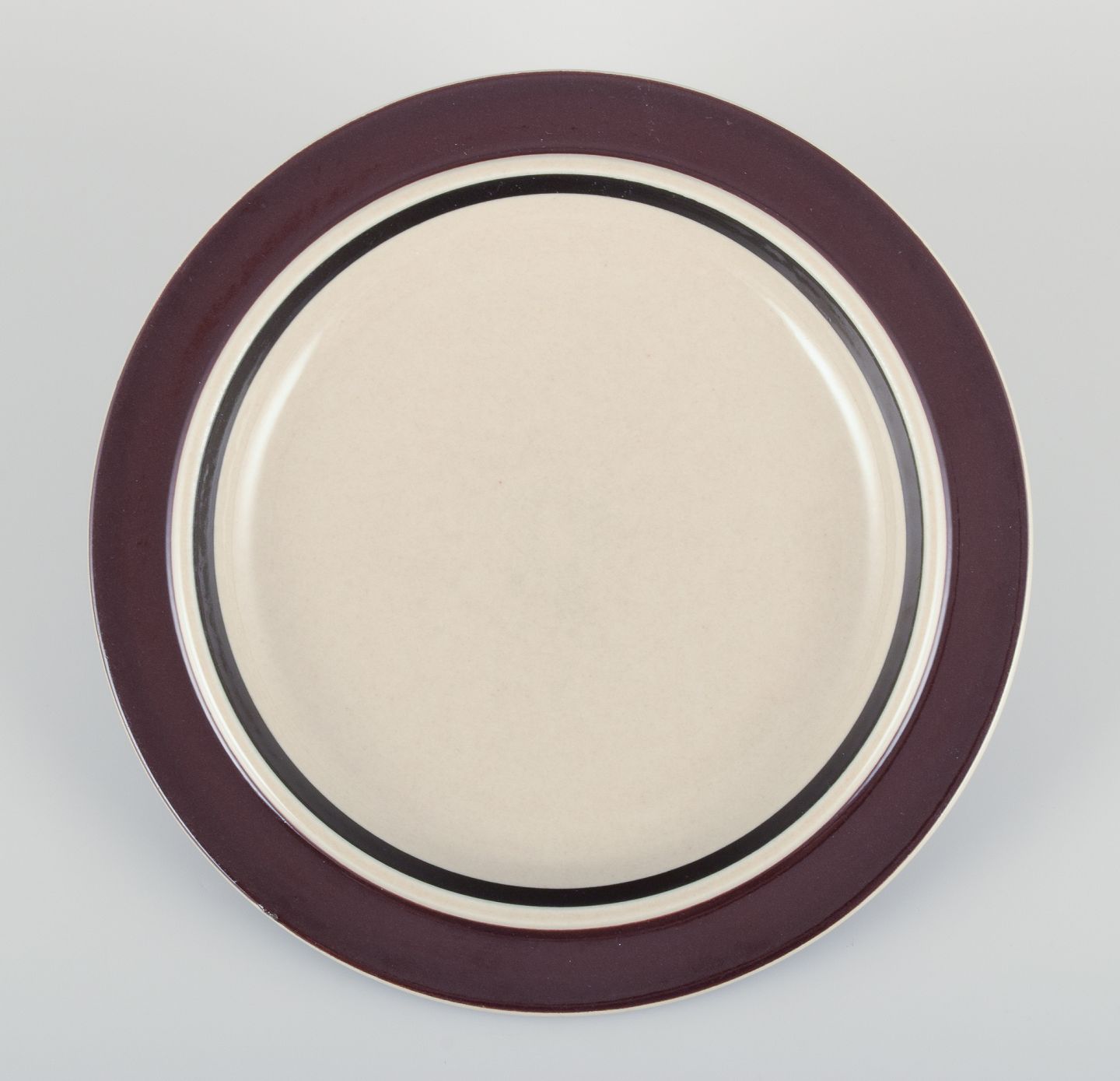 Raija Uosikkinen (1923–2004) og Ulla Procopé (1921–1968) for Arabia, Finland. Et sæt på fire Ruija middagstallerkner i stentøj med brun dekoration. 1960/70’erne. Stemplet. Perfekt stand. Mål: D 25,5 cm.