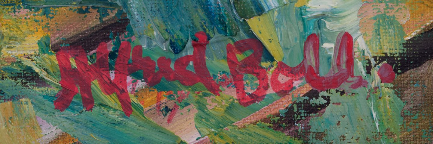 Alfred Boll, svensk kunstner, olie på lærred. Abstrakt komposition. Koloristisk palette. Pastose strøg.