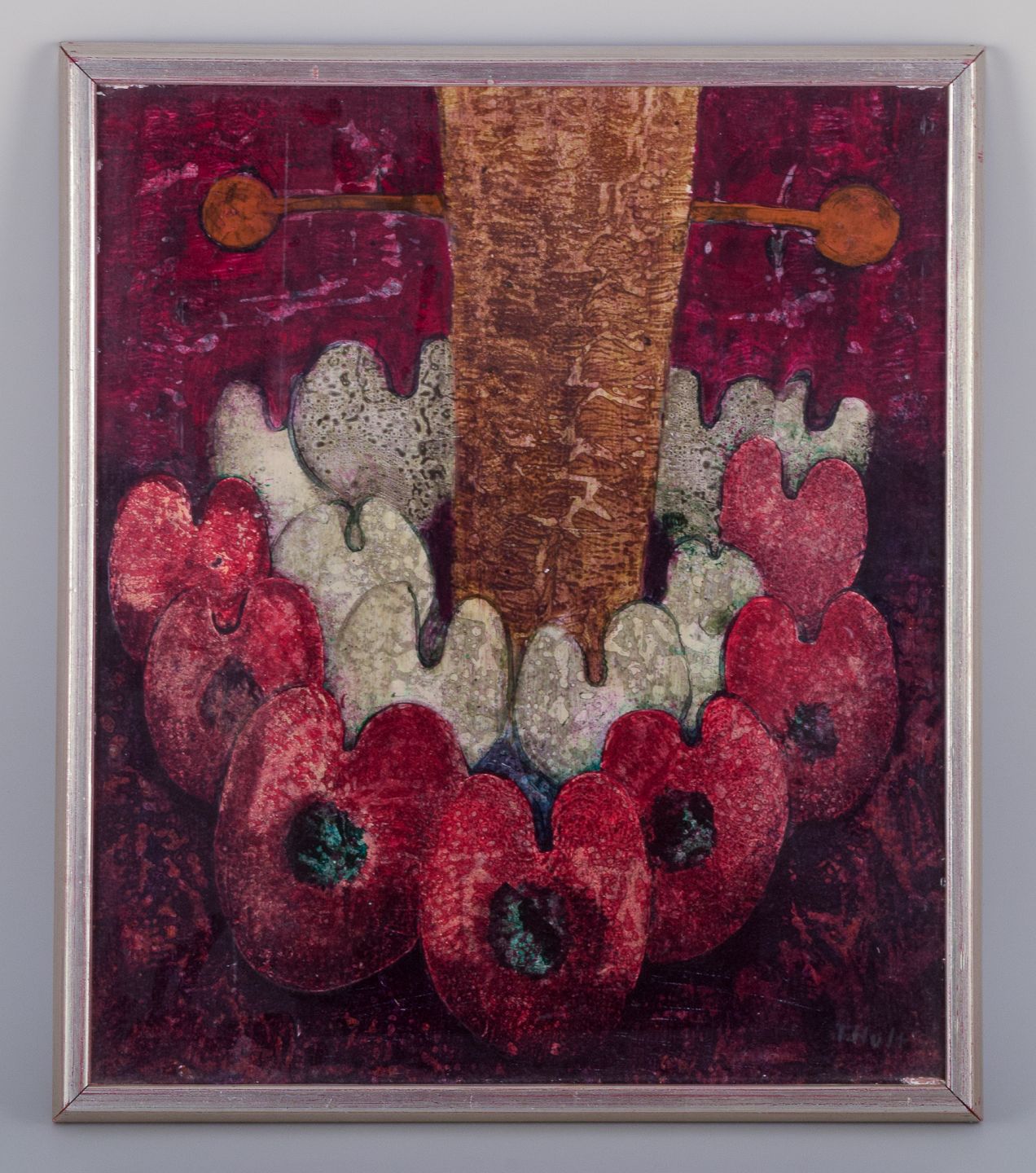 Torsten Hult, svensk kunstner, olie på plade. Maleri i abstrakt stil.