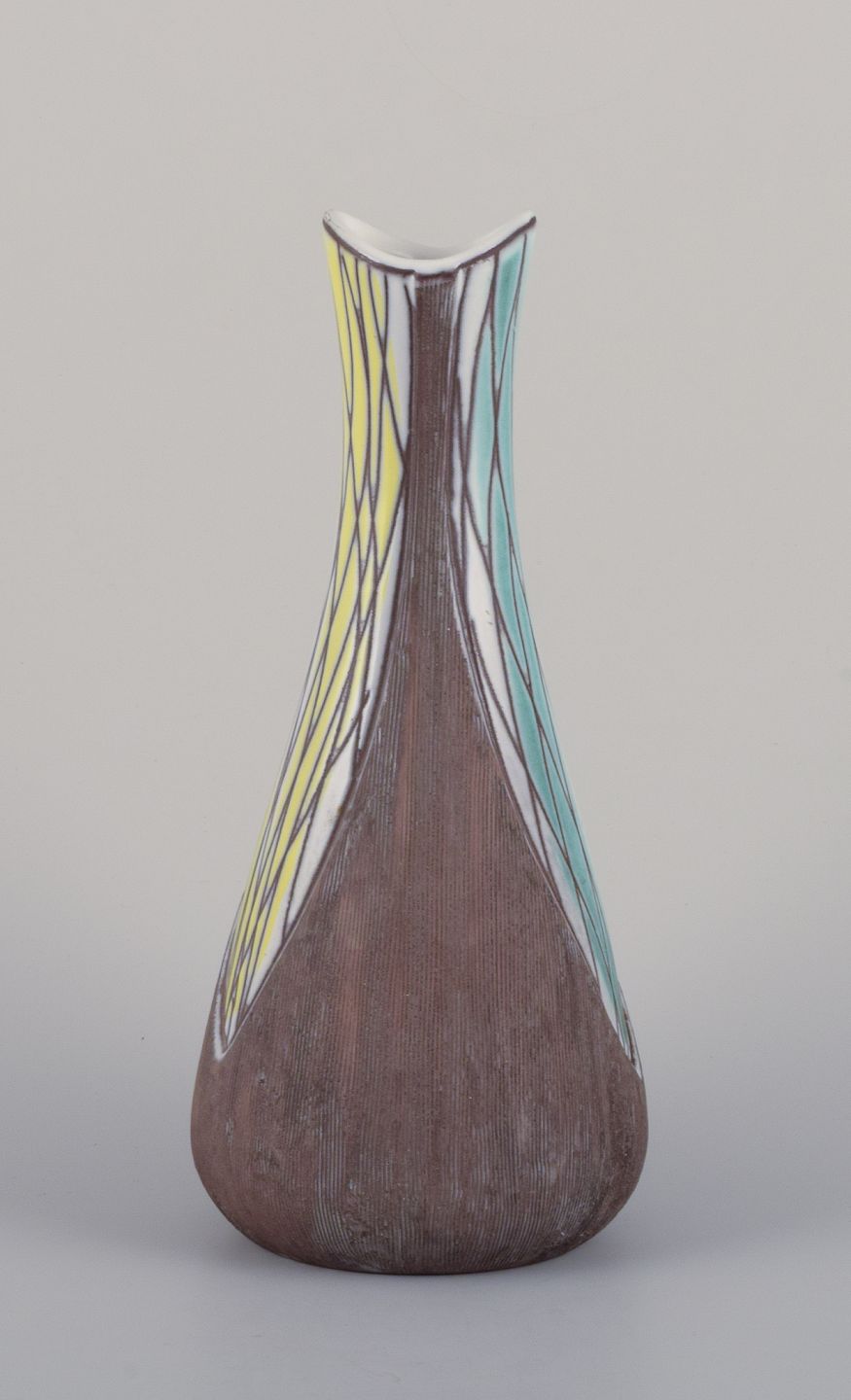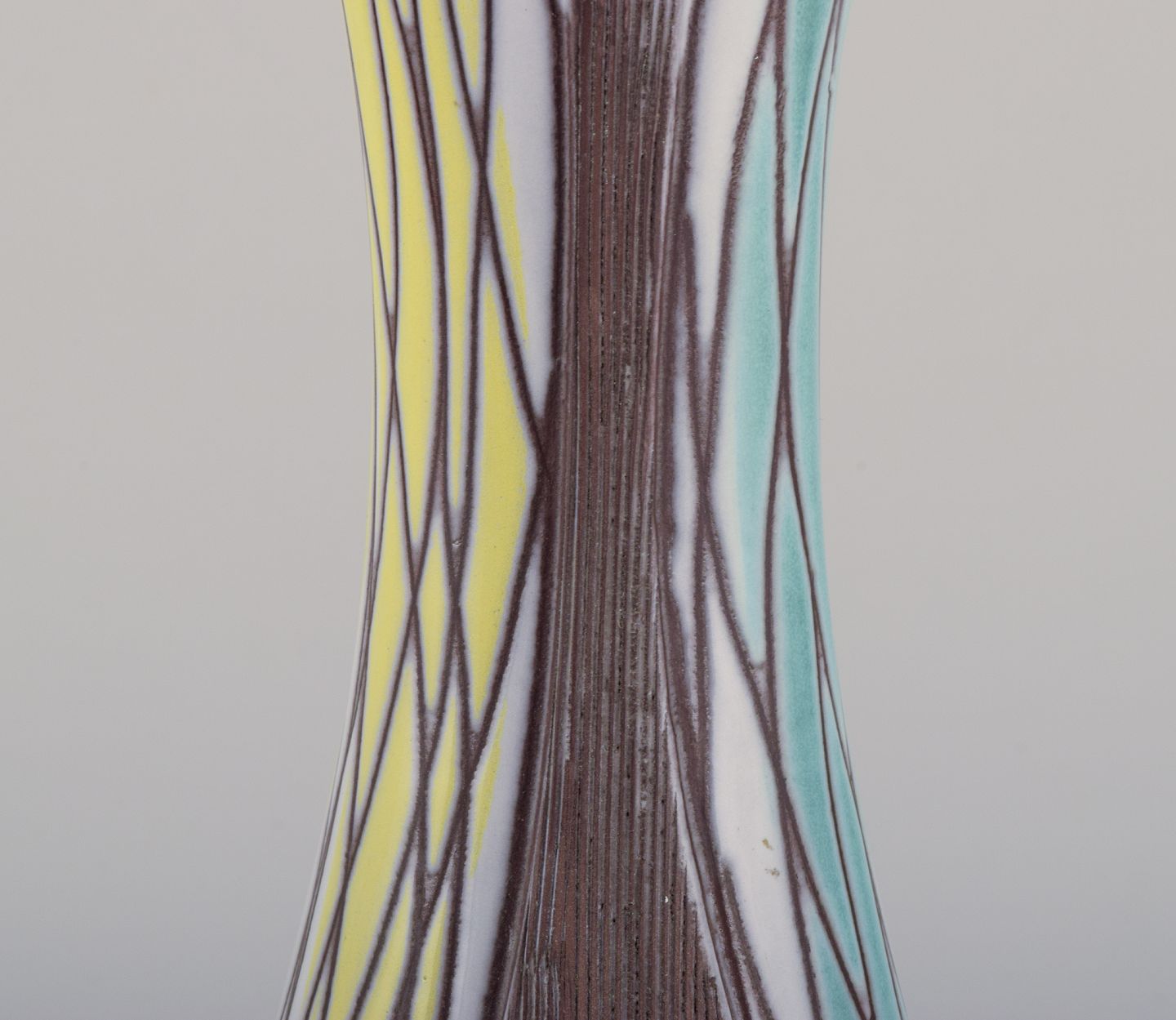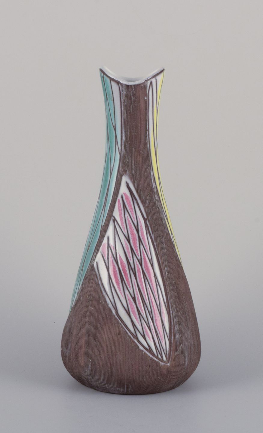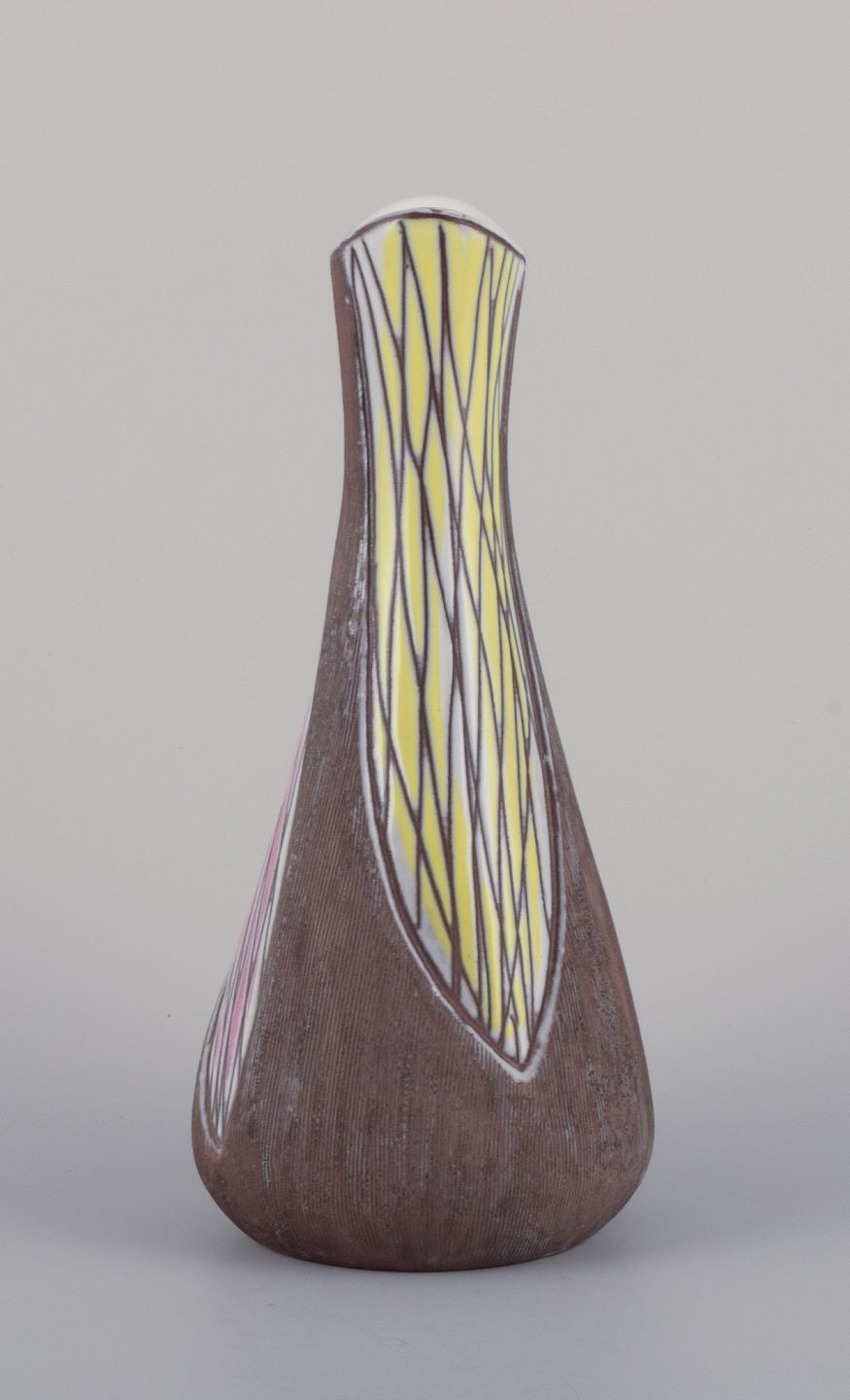 Mari Simmulson (1911-2000) for Upsala Ekeby, Sverige. Keramikvase med abstrakte motiver. Ca. 1960. Modelnummer 4717. Stemplet. Perfekt stand. Mål: H 24,0 cm. x D 10,5 cm.