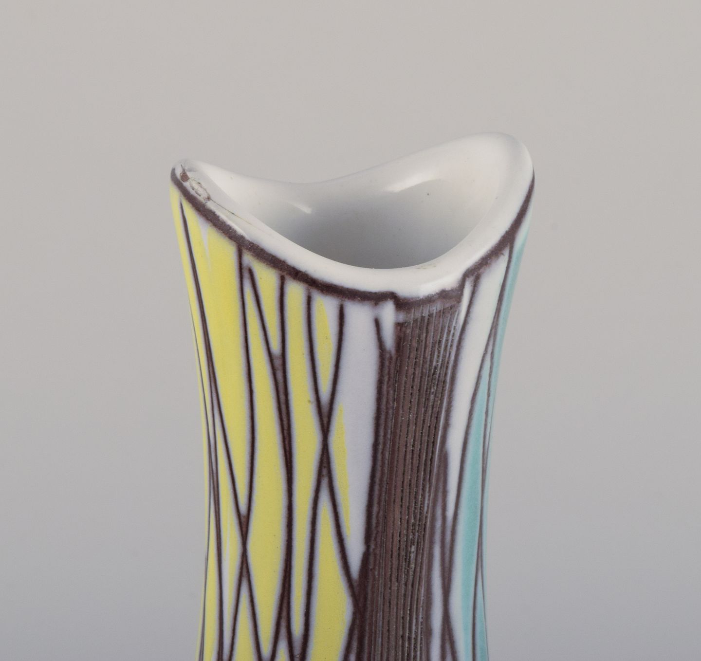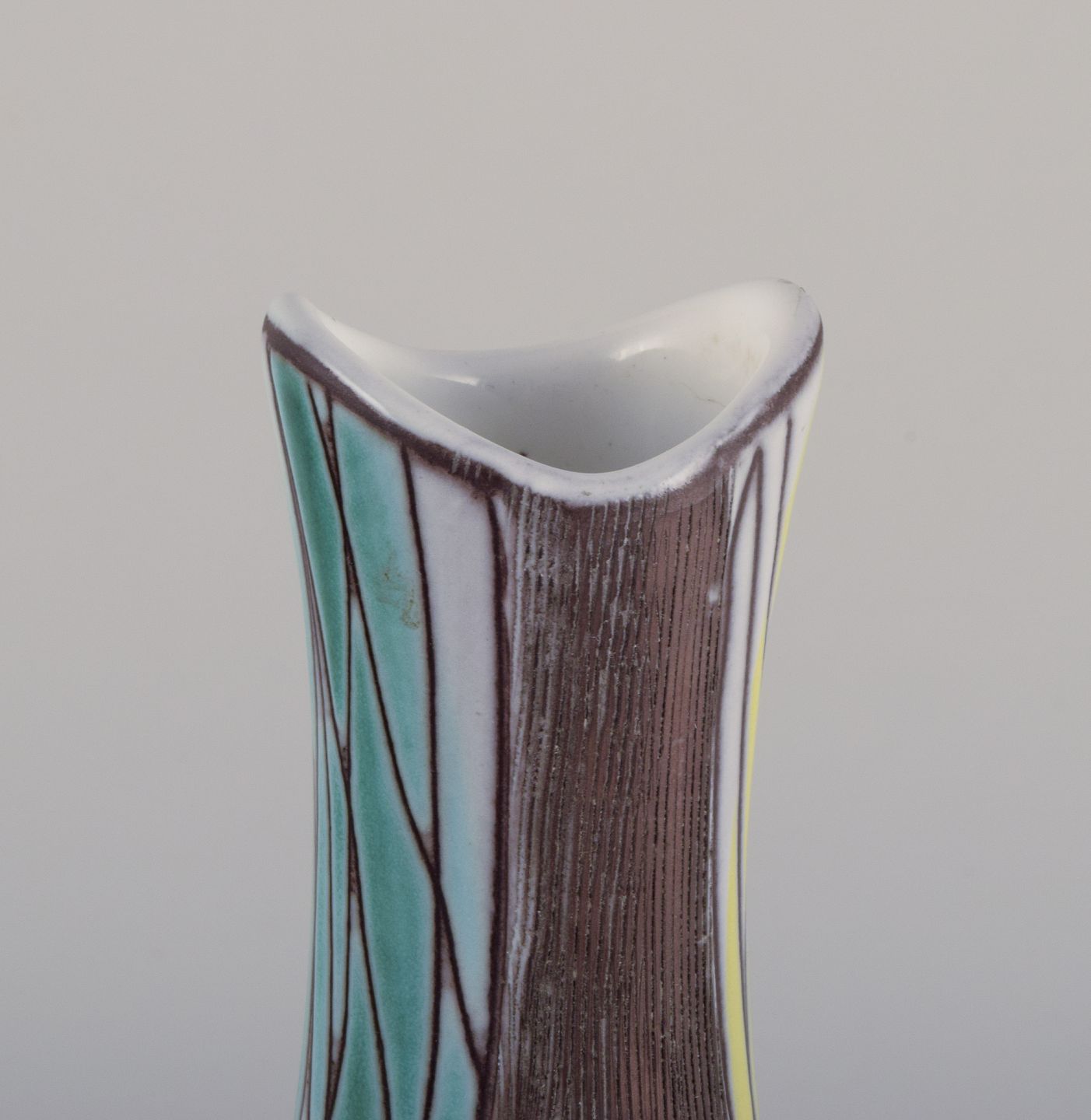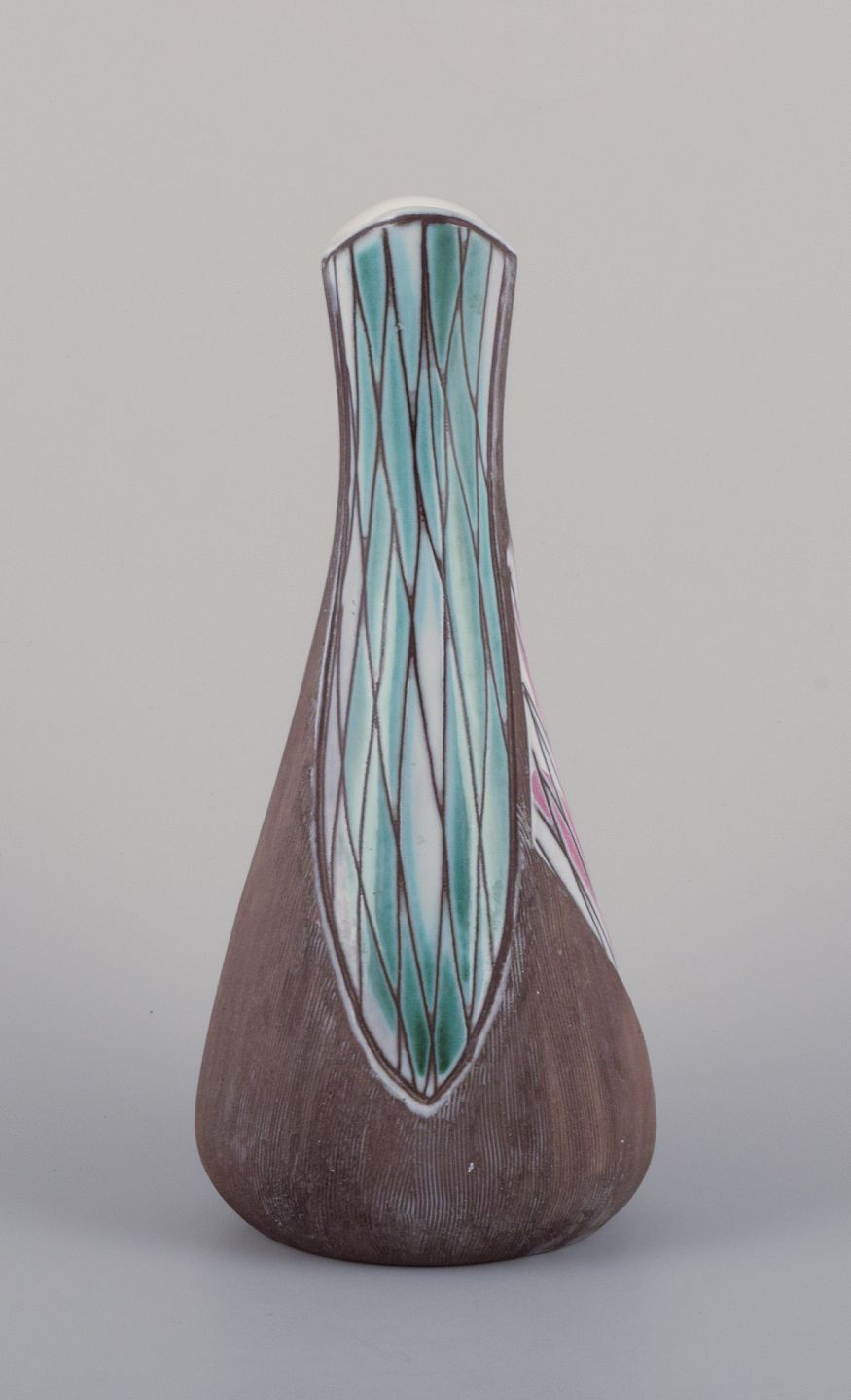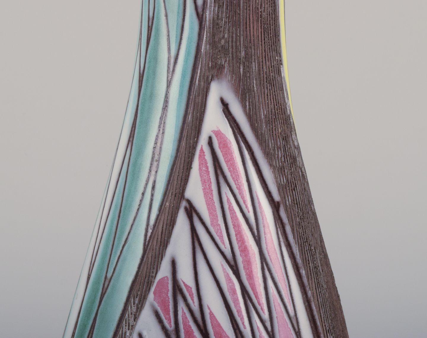 Mari Simmulson (1911-2000) for Upsala Ekeby, Sverige. Keramikvase med abstrakte motiver. Ca. 1960. Modelnummer 4717. Stemplet. Perfekt stand. Mål: H 24,0 cm. x D 10,5 cm.