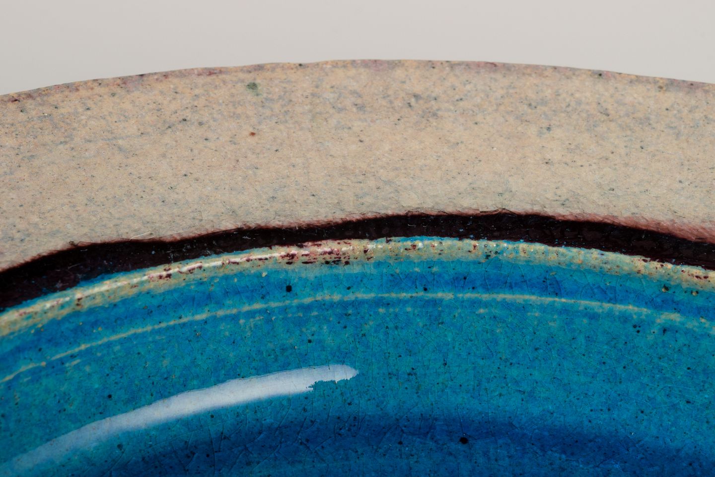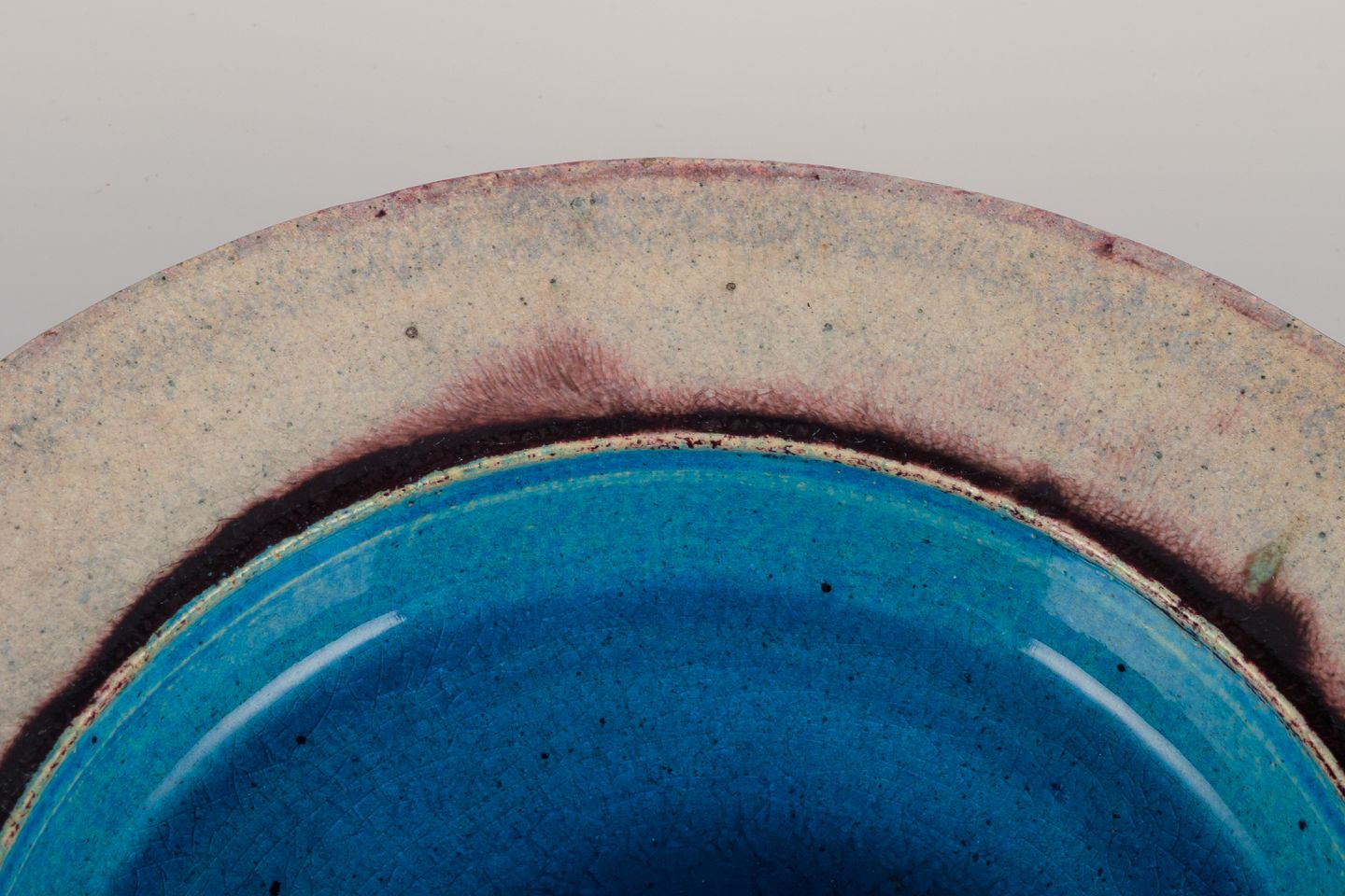 Nils Joakim Kähler (1906-1979) for Kähler, Danmark. Rund keramikskål i modernistisk stil. Turkis og cremefarvet glasur. Ca. 1960’erne. Stemplet. Perfekt stand. Mål: D 26,5 x H 4,7 cm.