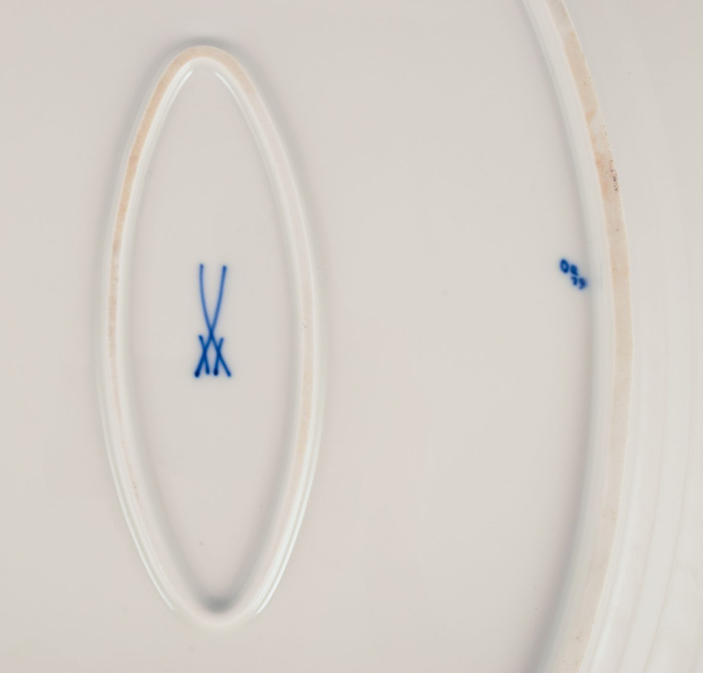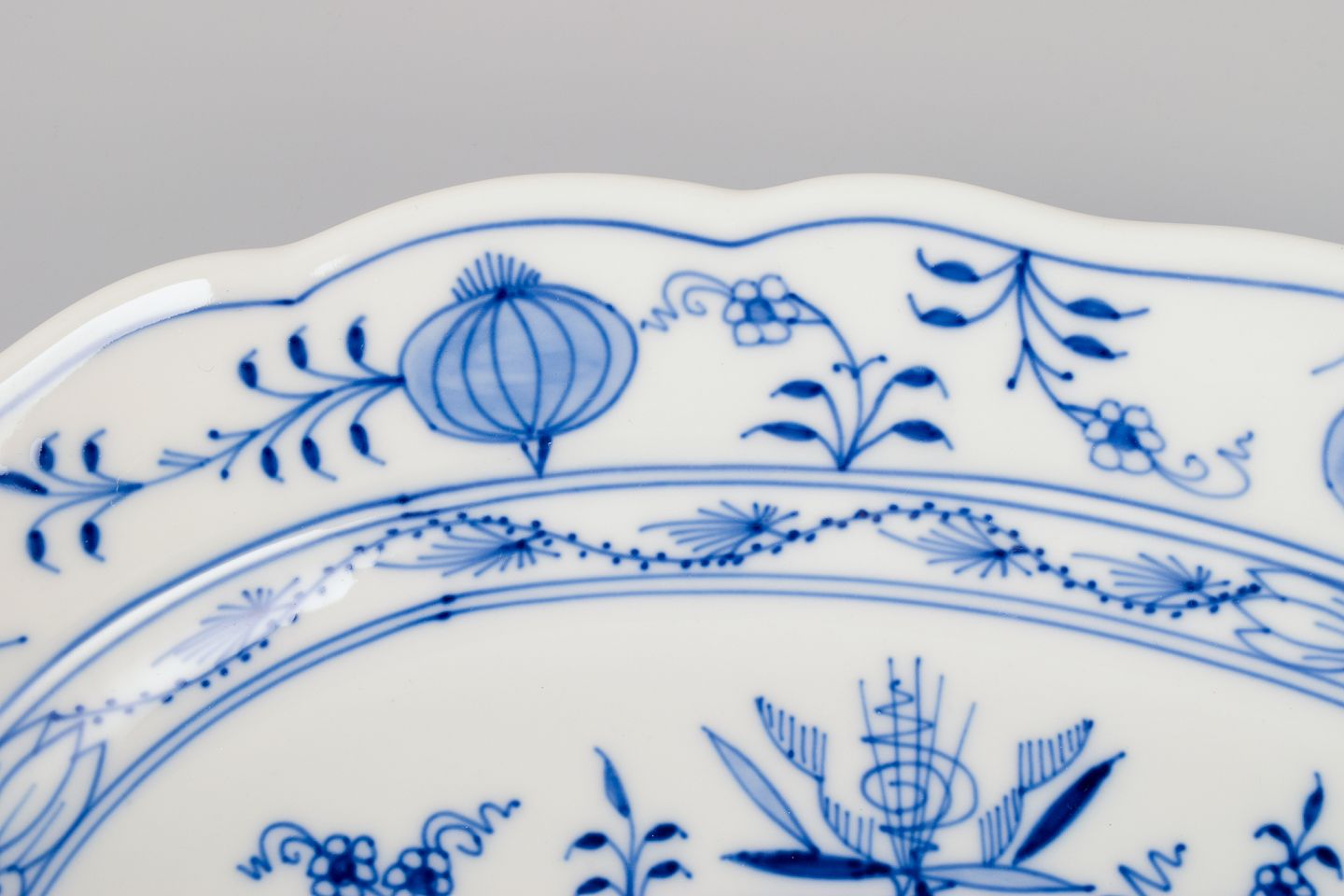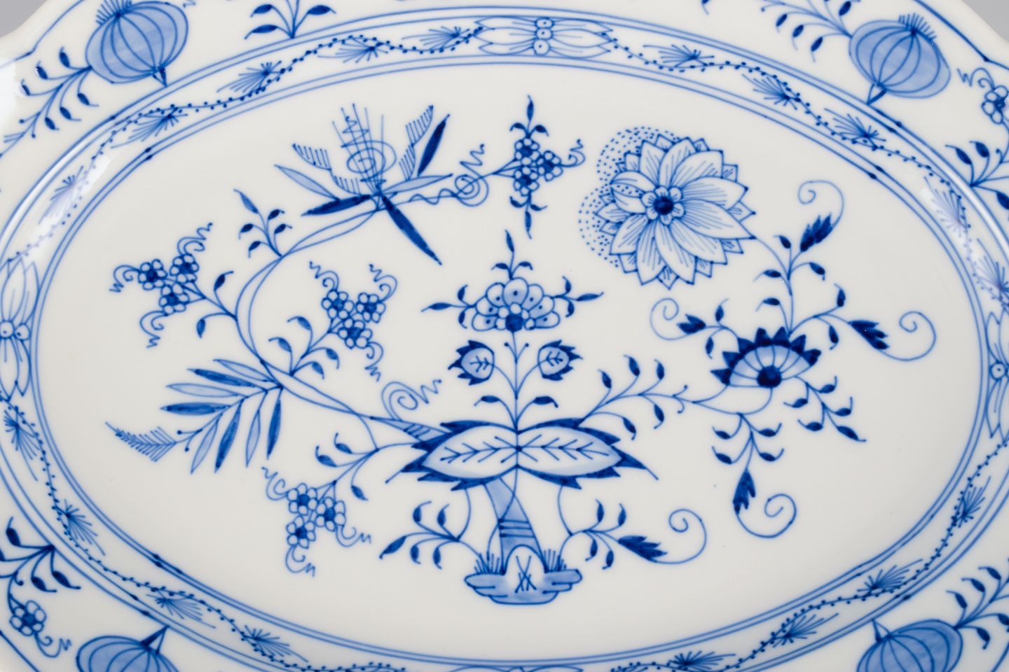 Meissen, Tyskland. Stor ovalt Løgmønstret serveringsfad. Håndmalet.