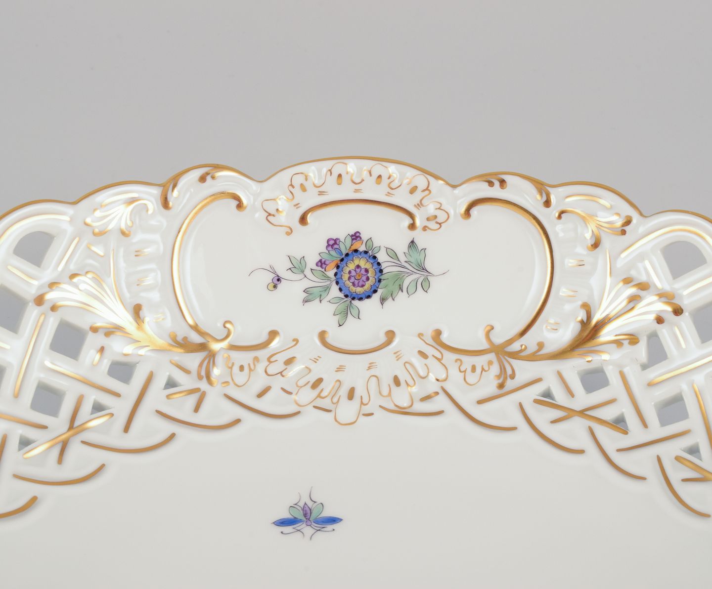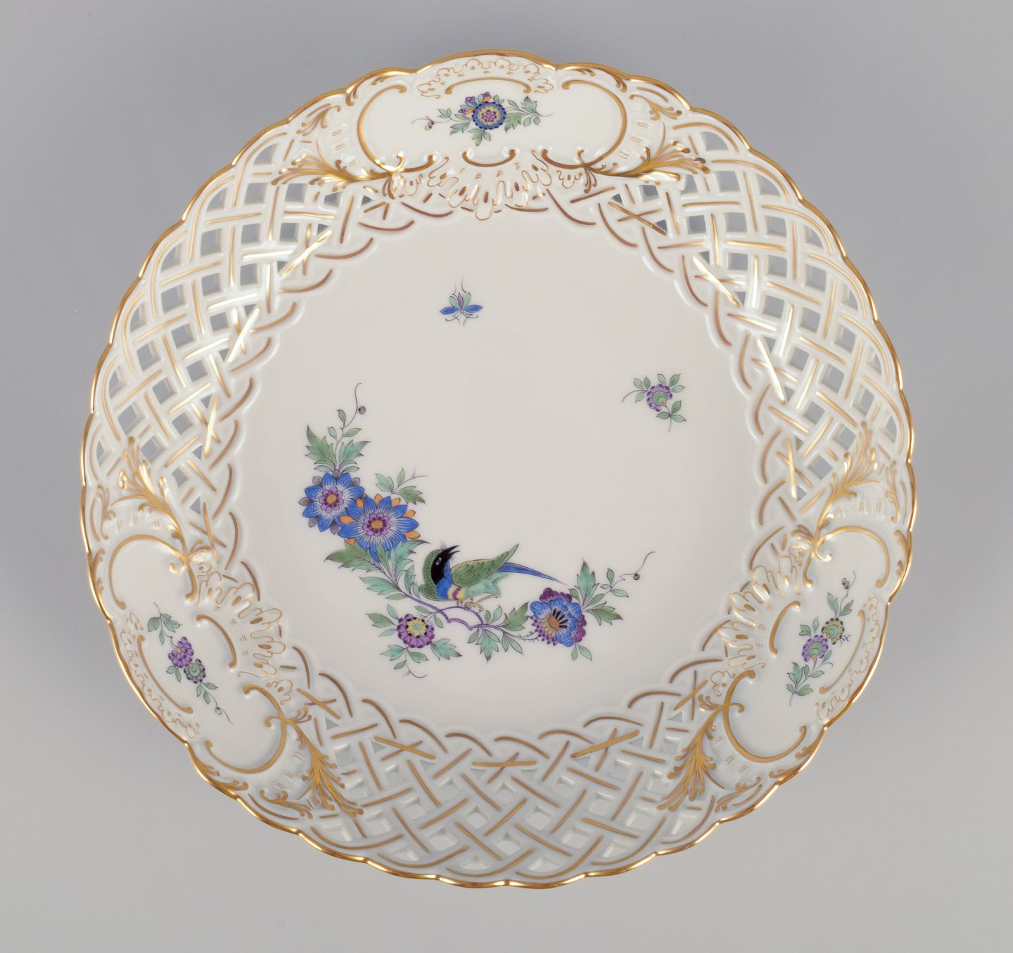 Meissen, Tyskland. Gennembrudt skål i porcelæn dekoreret i guld og med eksotisk fugl på blomstergren. Håndmalet. Midt 1900-tallet Stemplet. Første sortering. Perfekt stand. Mål: 21,5 cm. x H 4,5 cm.