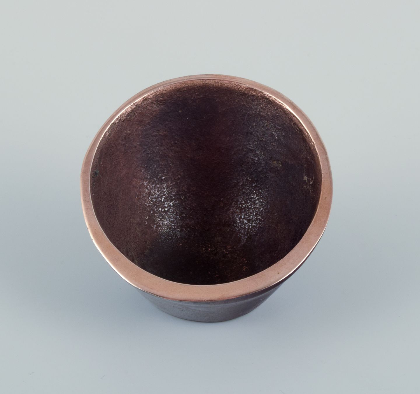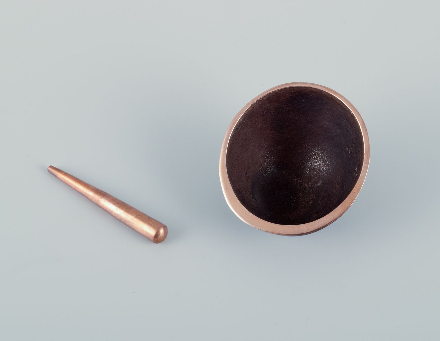 Jacques Lauterbach, French artist. Mortar and pestle in solid bronze. Modernist design. Late 20th century. Signed. In excellent condition with small scratch on the front. Dimensions: H 4.5 cm x D 6.6 cm.