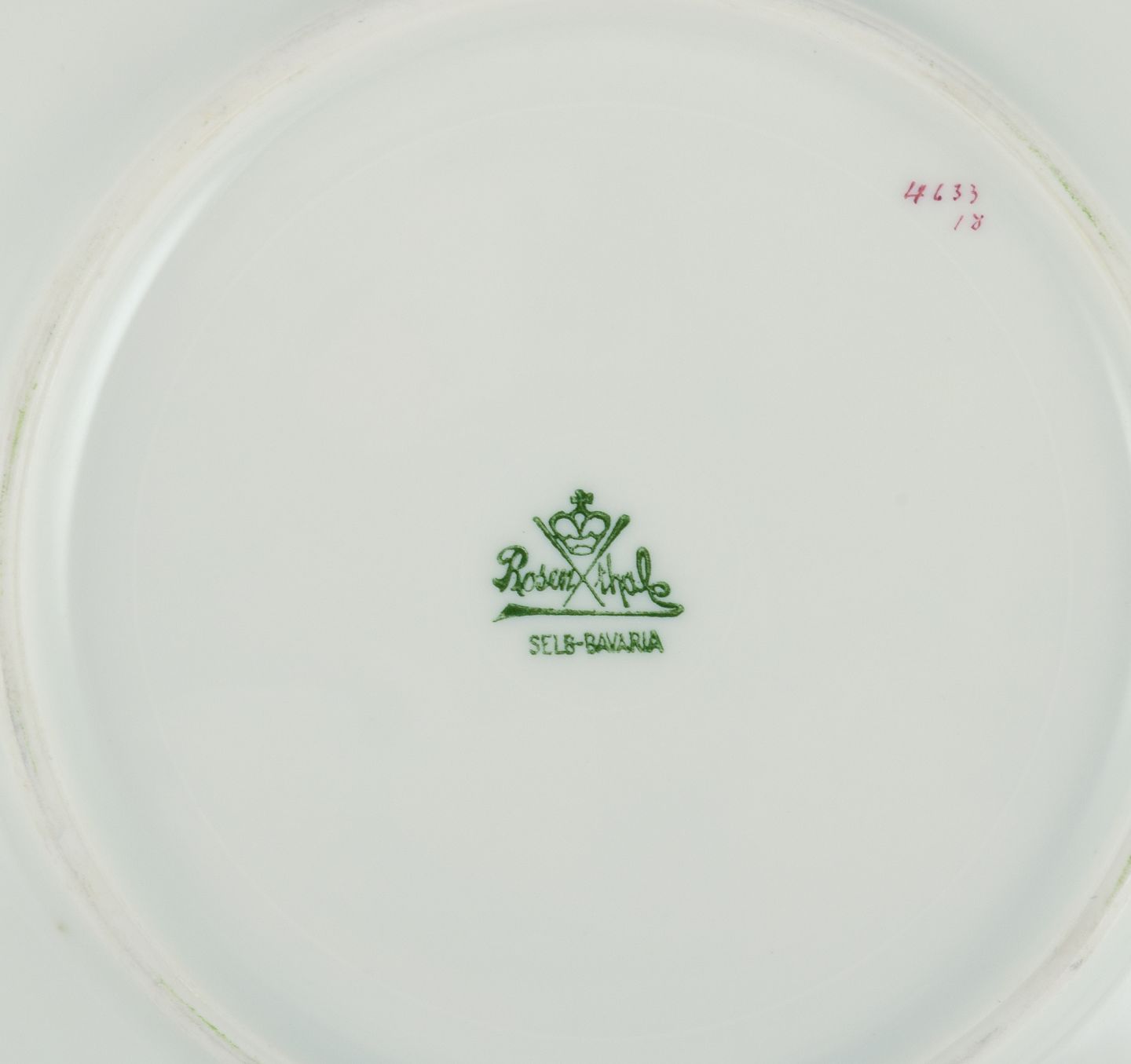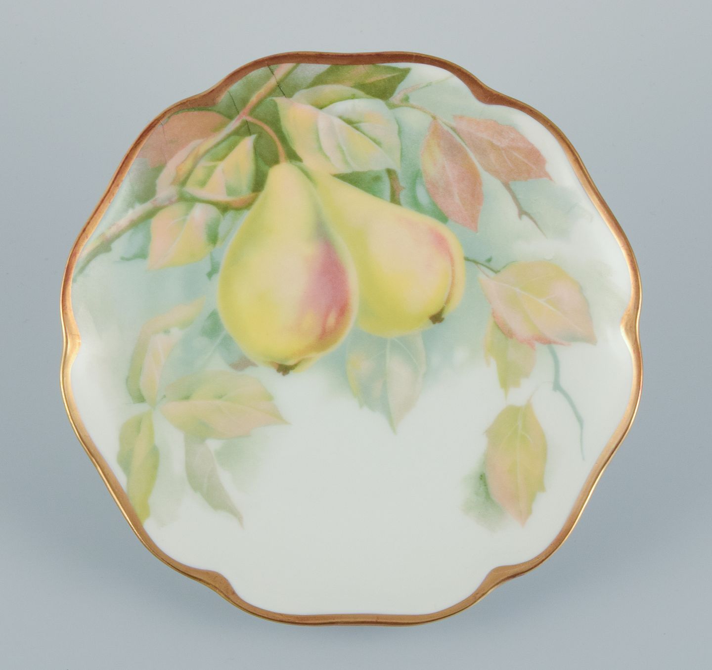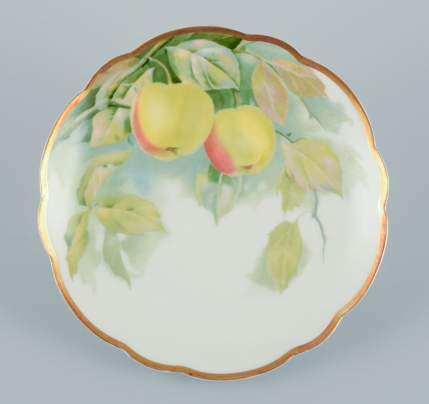 Rosenthal, Tyskland. Et sæt på seks porcelænstallerkner med forskellige frugtmotiver. Guldkant. Ca. 1930. Stemplet. Perfekt stand. Mål: D 17,3 cm.
