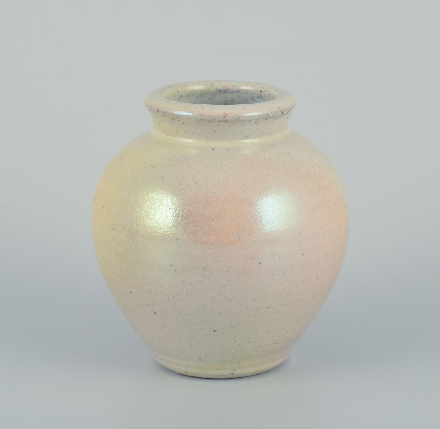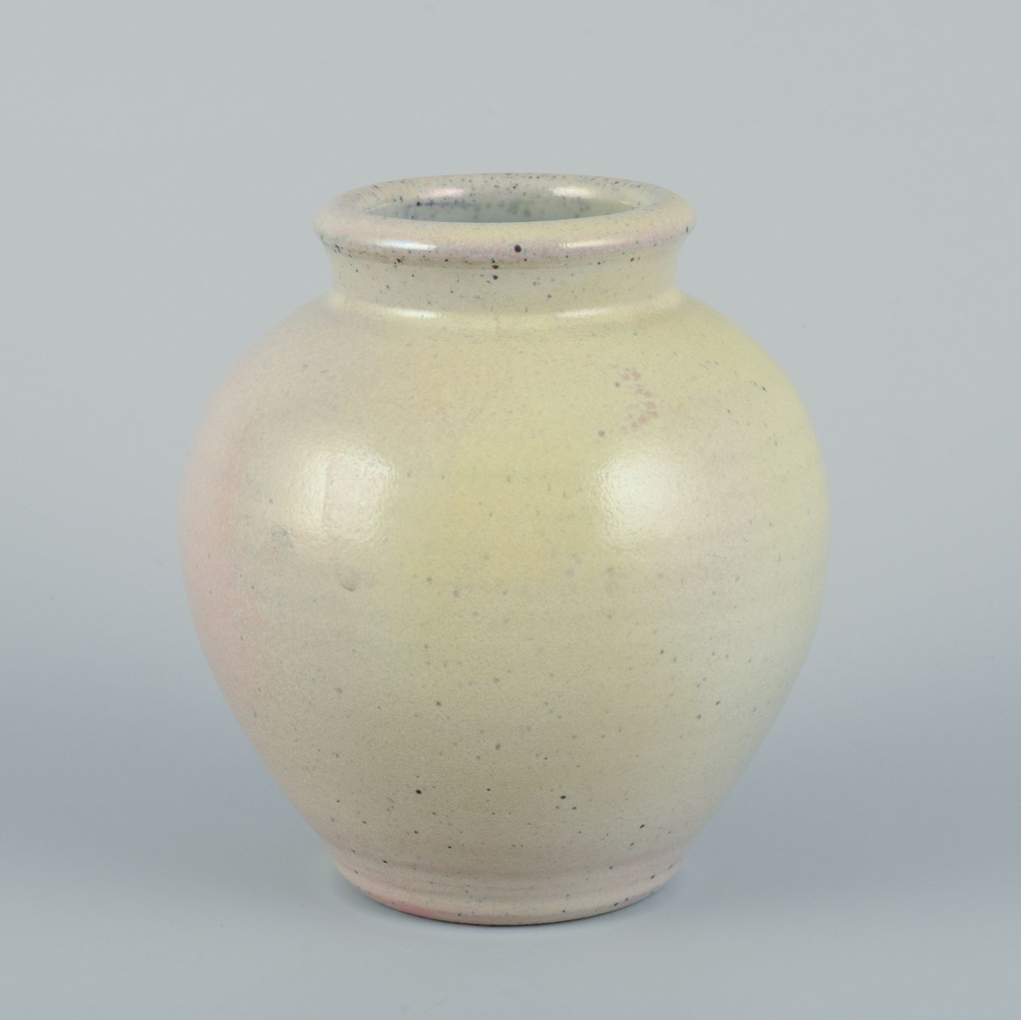 Den anden vase med glasur i gule og lyserøde toner.