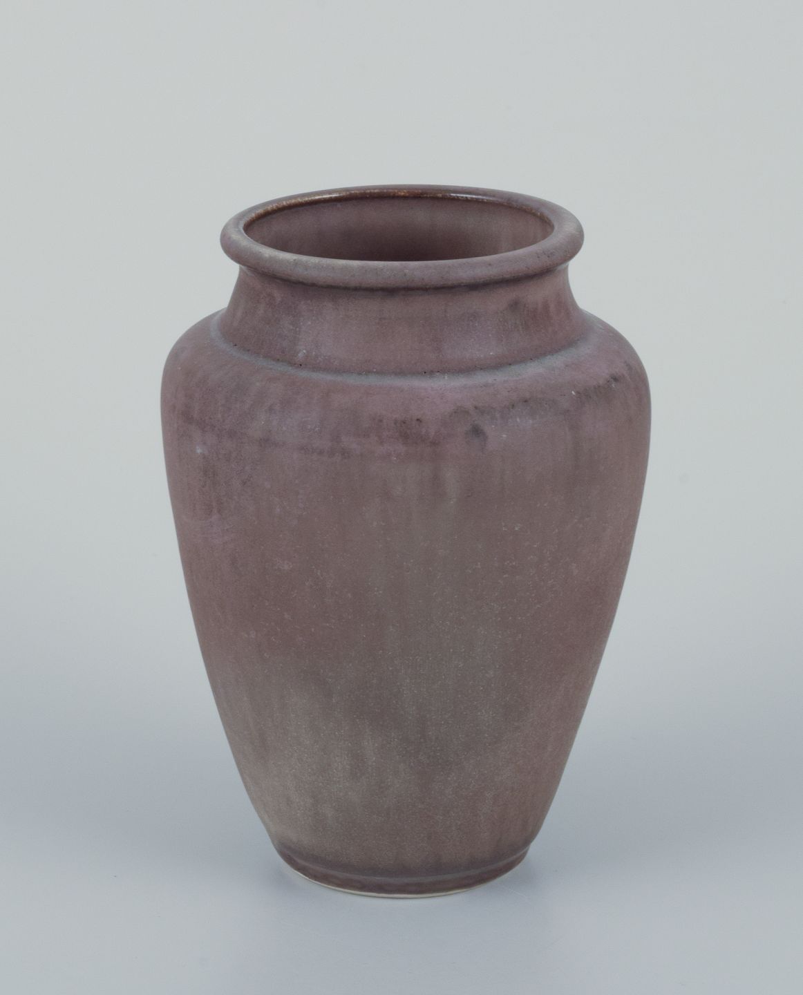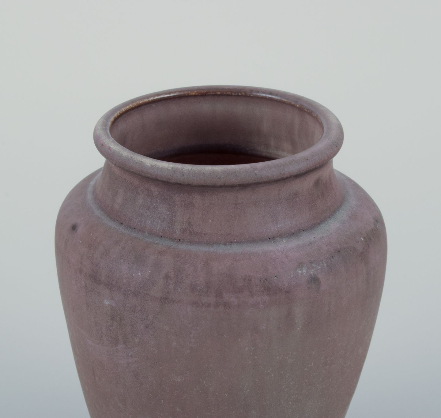 Den ene vase i mat glasur i brunlige toner.
