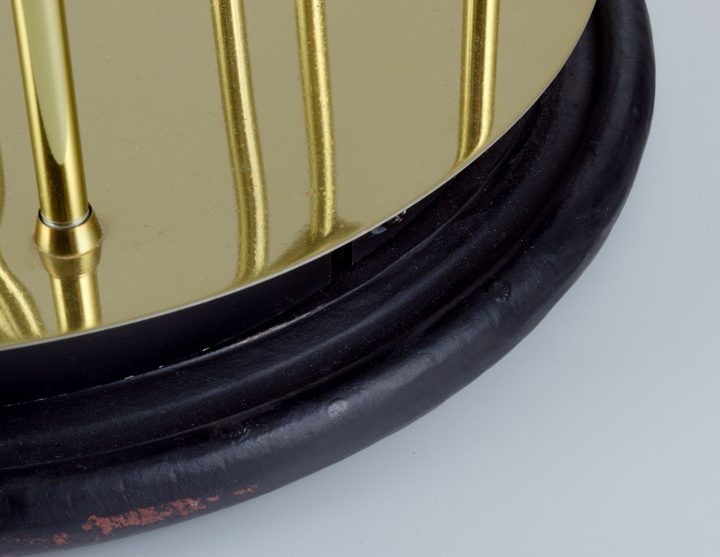 Messing på sort træbund.