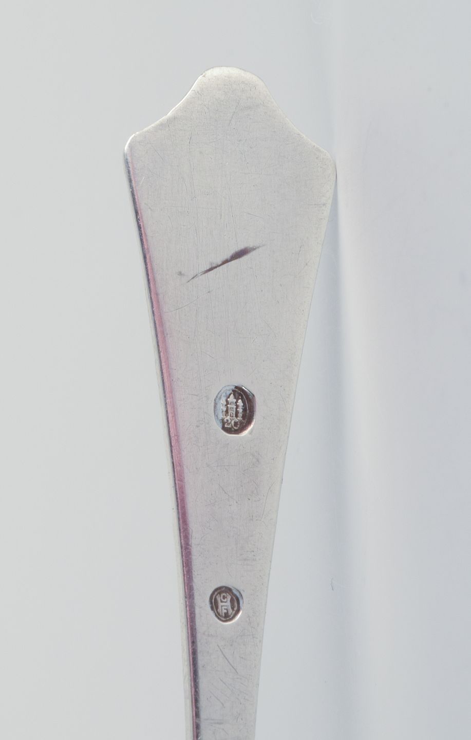 Danske sølvsmede, Cohr, Heimbürger med flere. Fire marmeladeskeer i tretårnet sølv i forskellige designs.